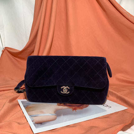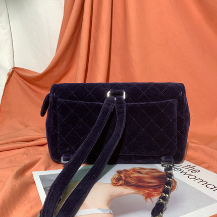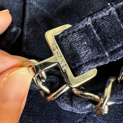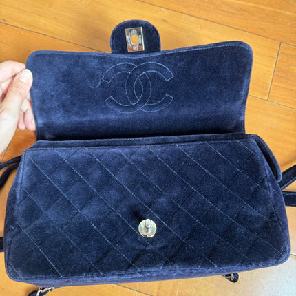Chanel Navy Velvet Shoulder Flap Backpack Vintage Silver HW, 1996
