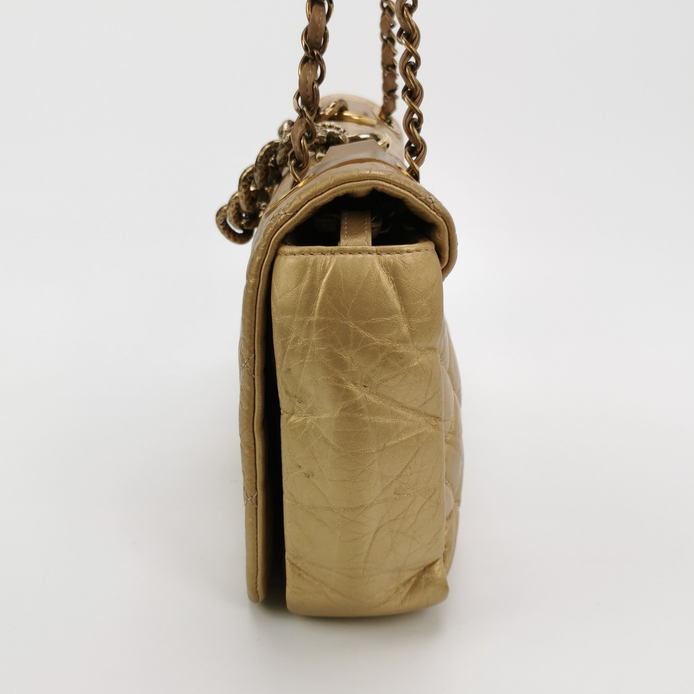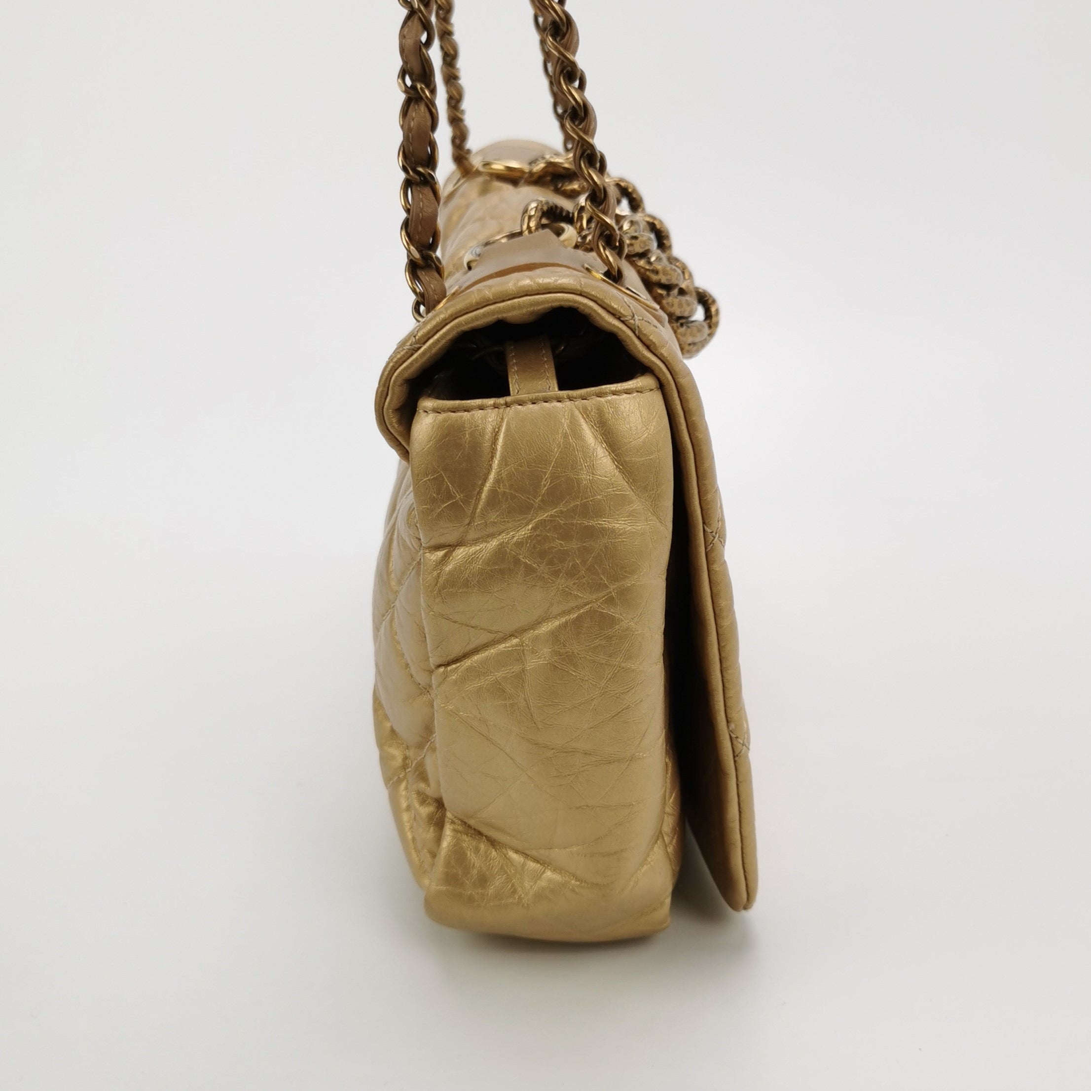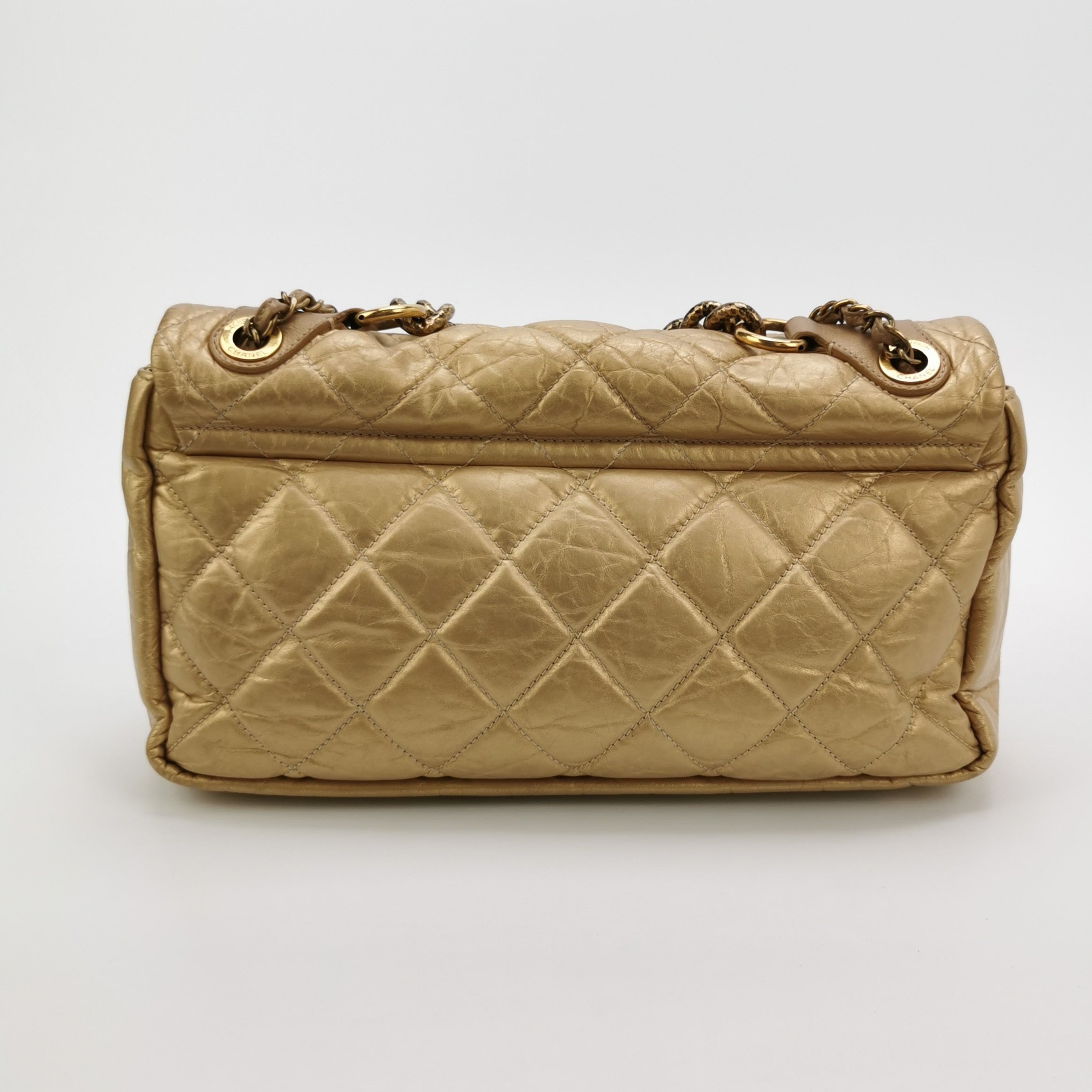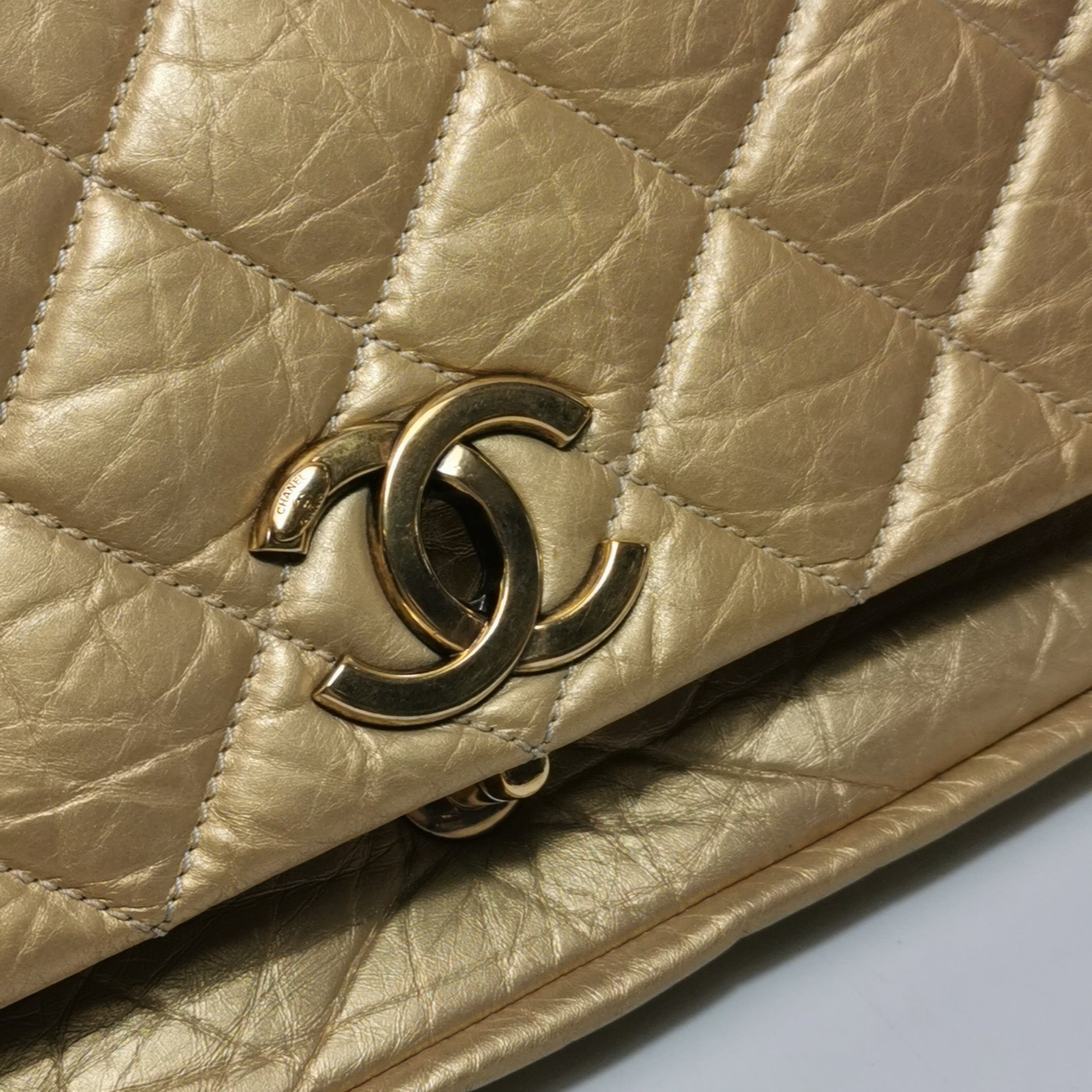 Chanel Paris Bombay Pondicherry Flap Bag Quilted Large Gold Shiny Calfskin Leather