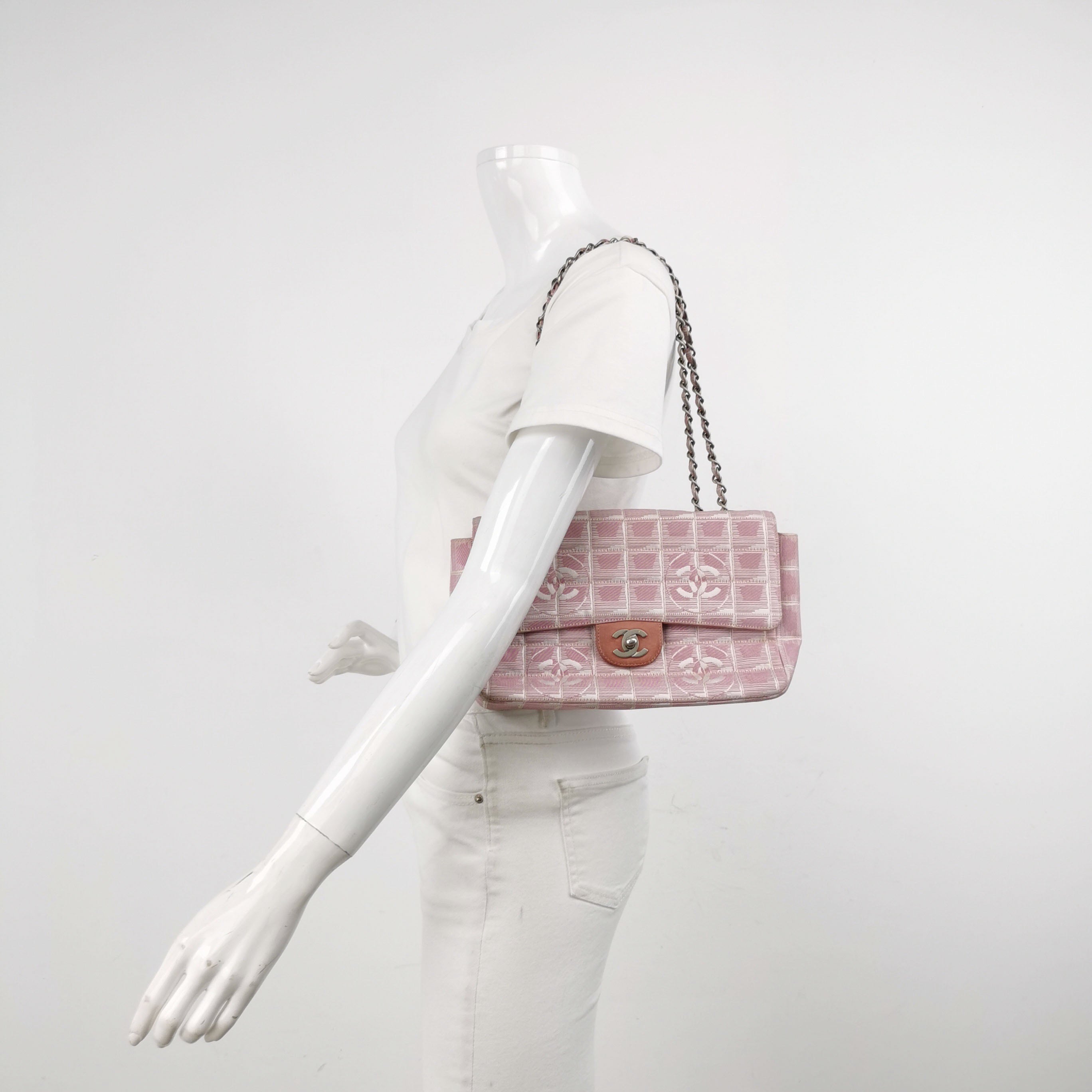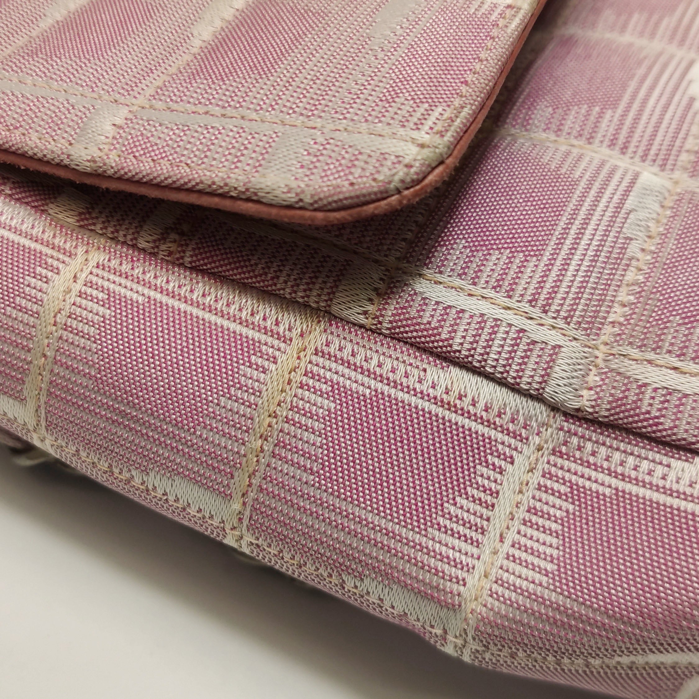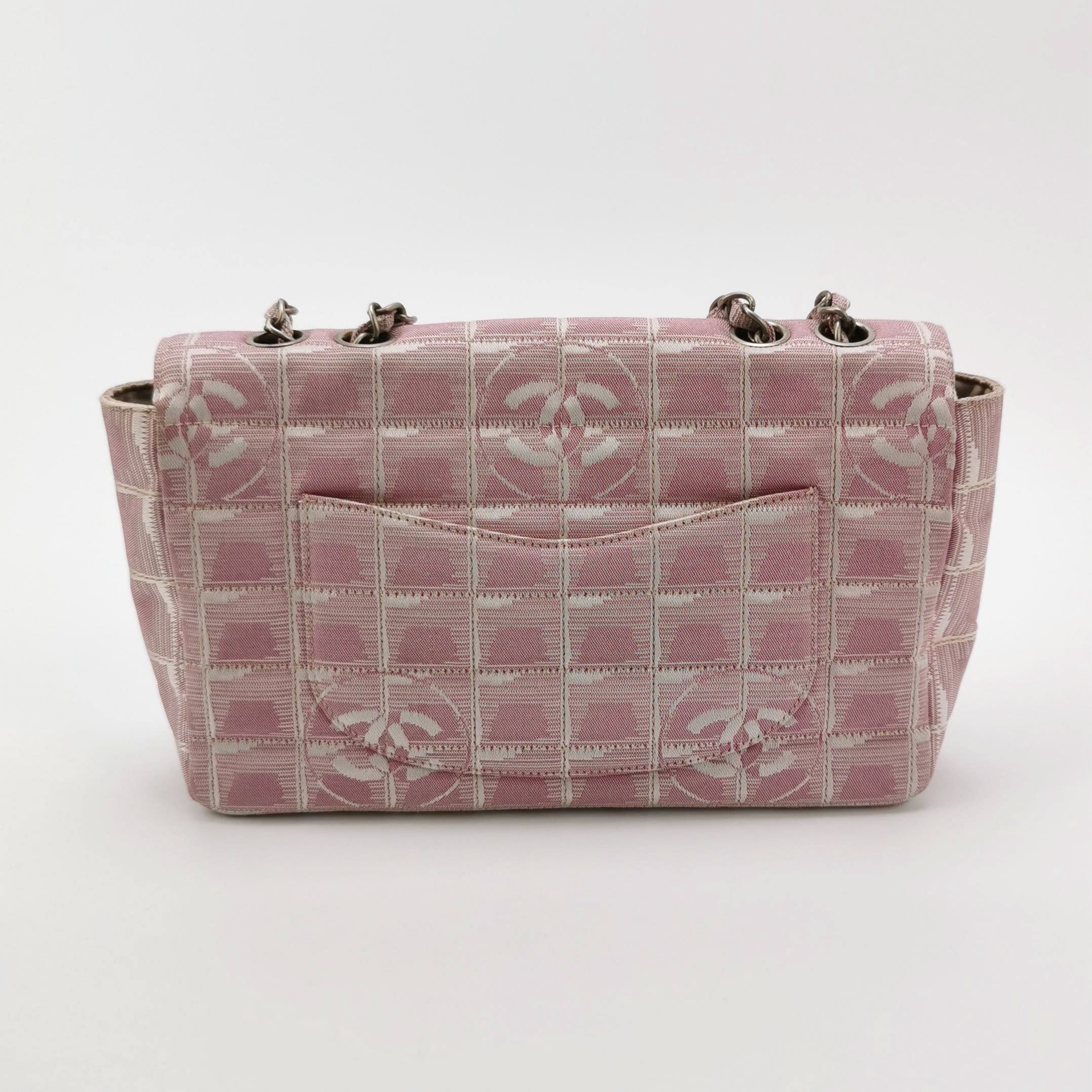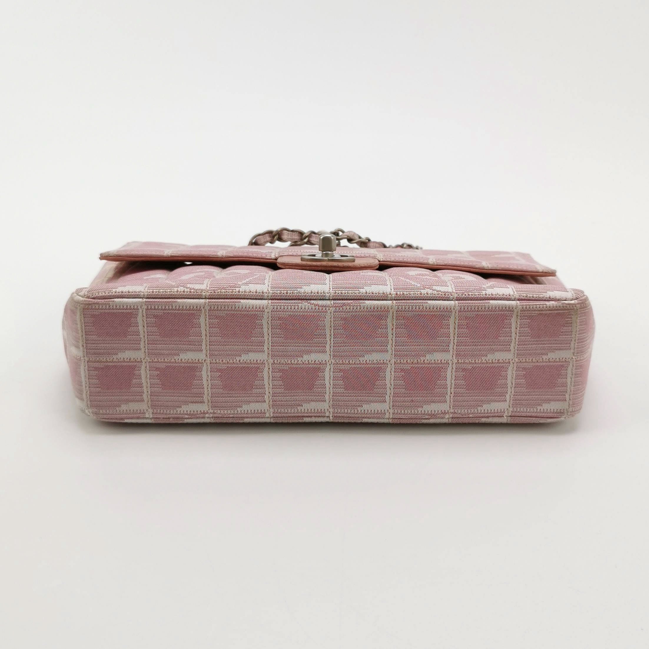 Chanel Pink Medium Canvas Ice Cube Classic Flap 2000-2002 Travel Line Shoulder Bag