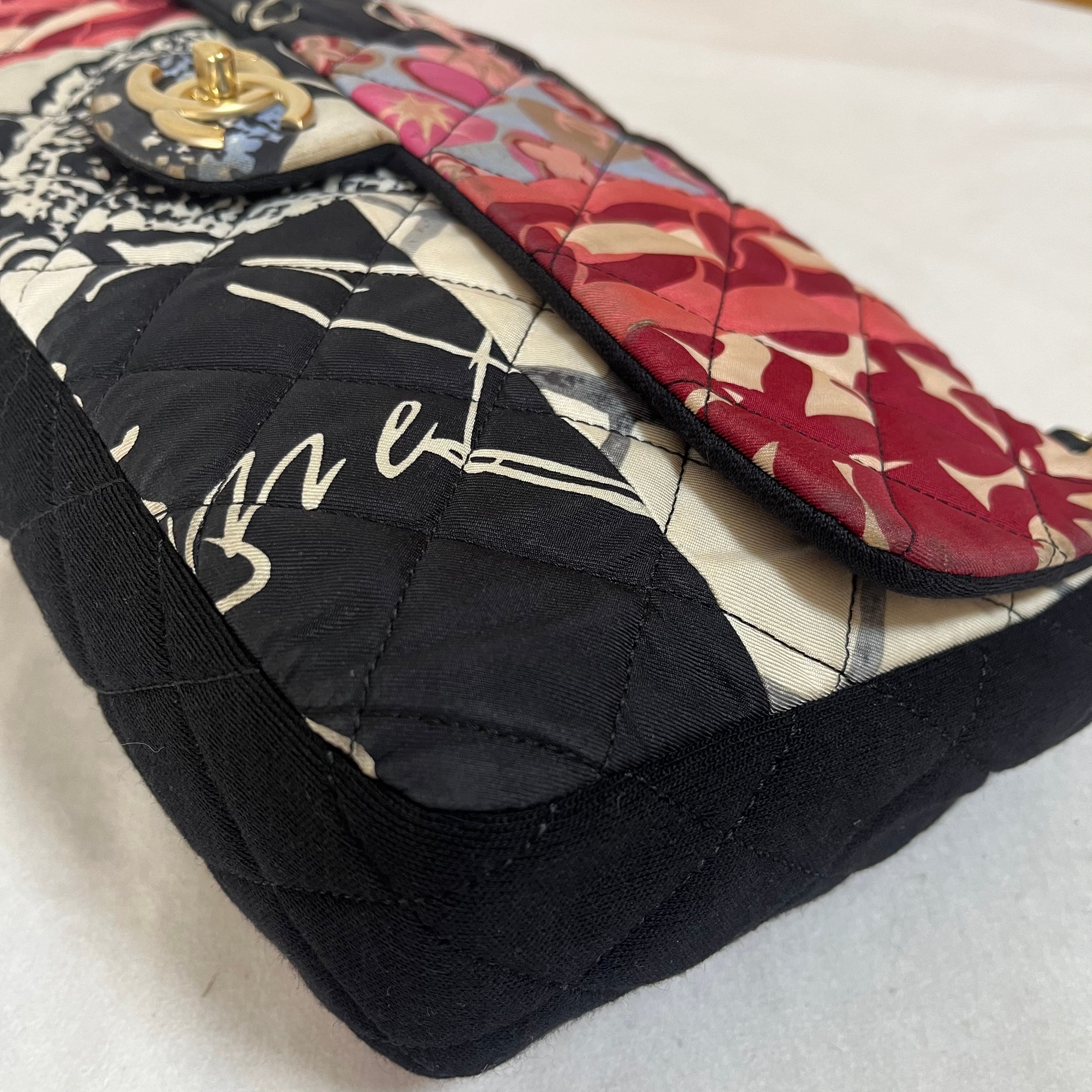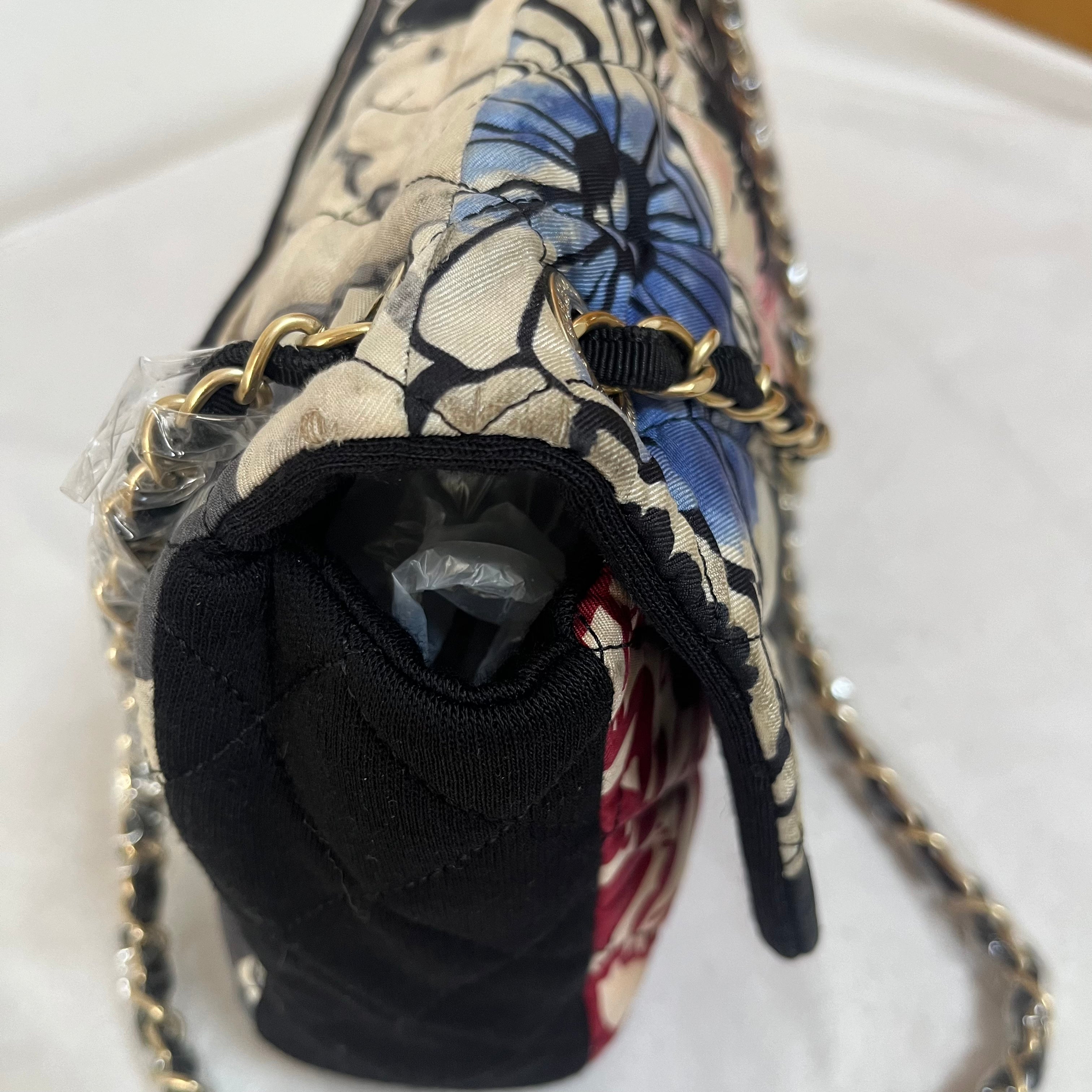 Chanel Jumbo Quilted Multicolor Patchwork Jersey Flap Bag