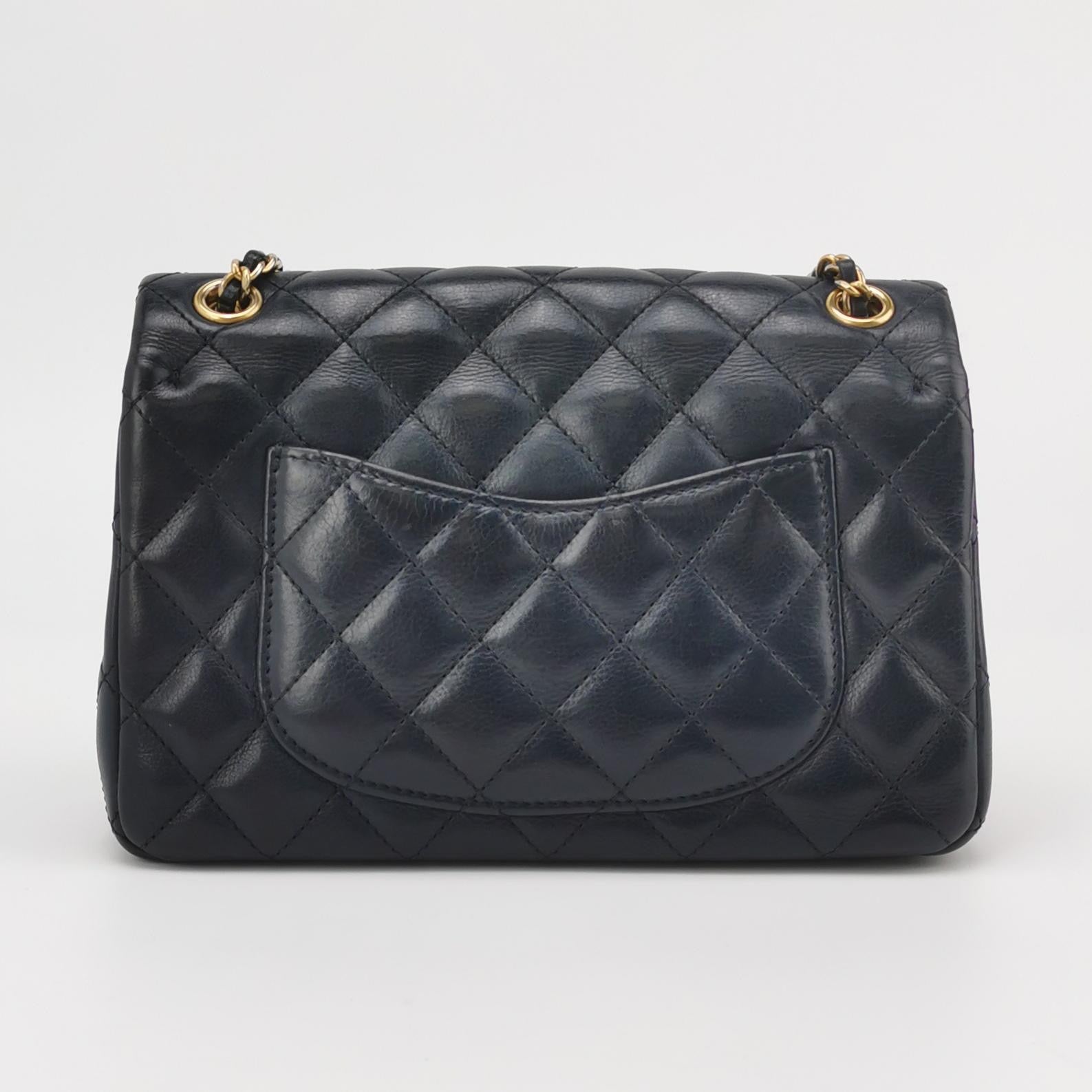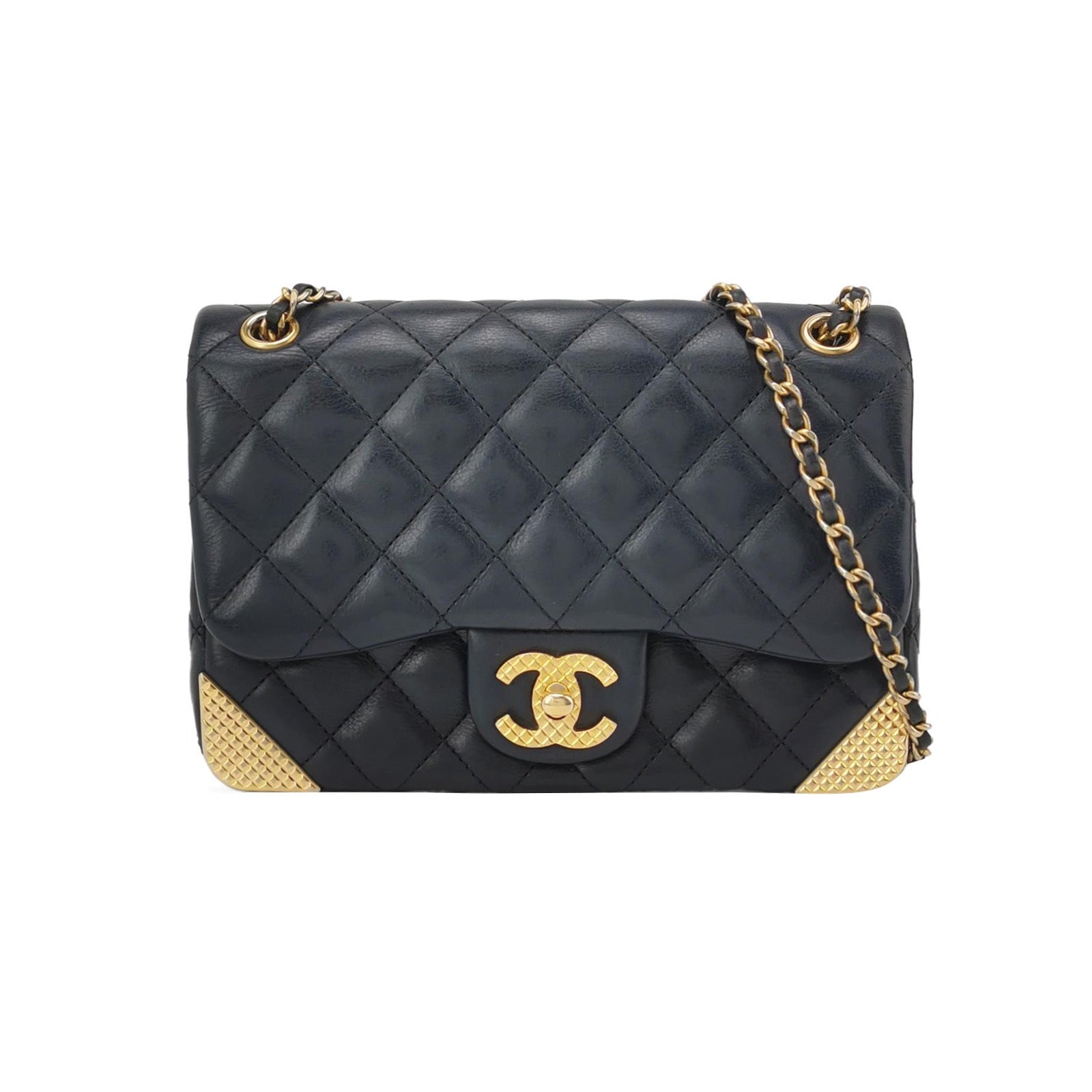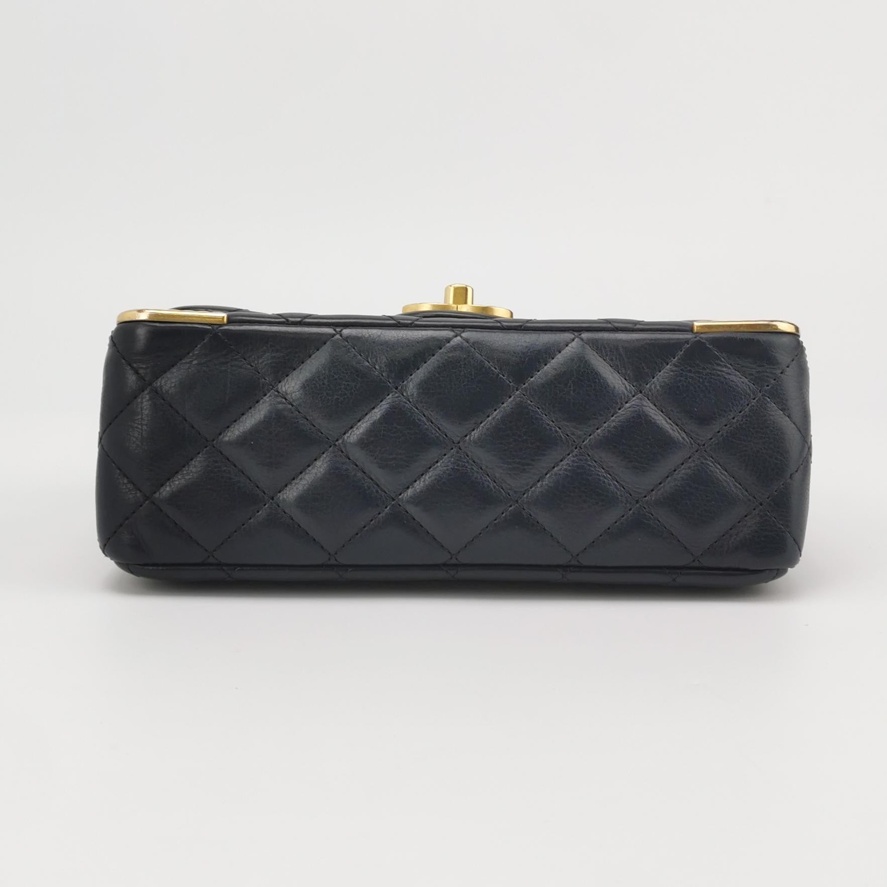 Chanel Rock The Corner Mini Flap Bag Navy Calfskin Leather Gold Hardware Corners 2017-18
