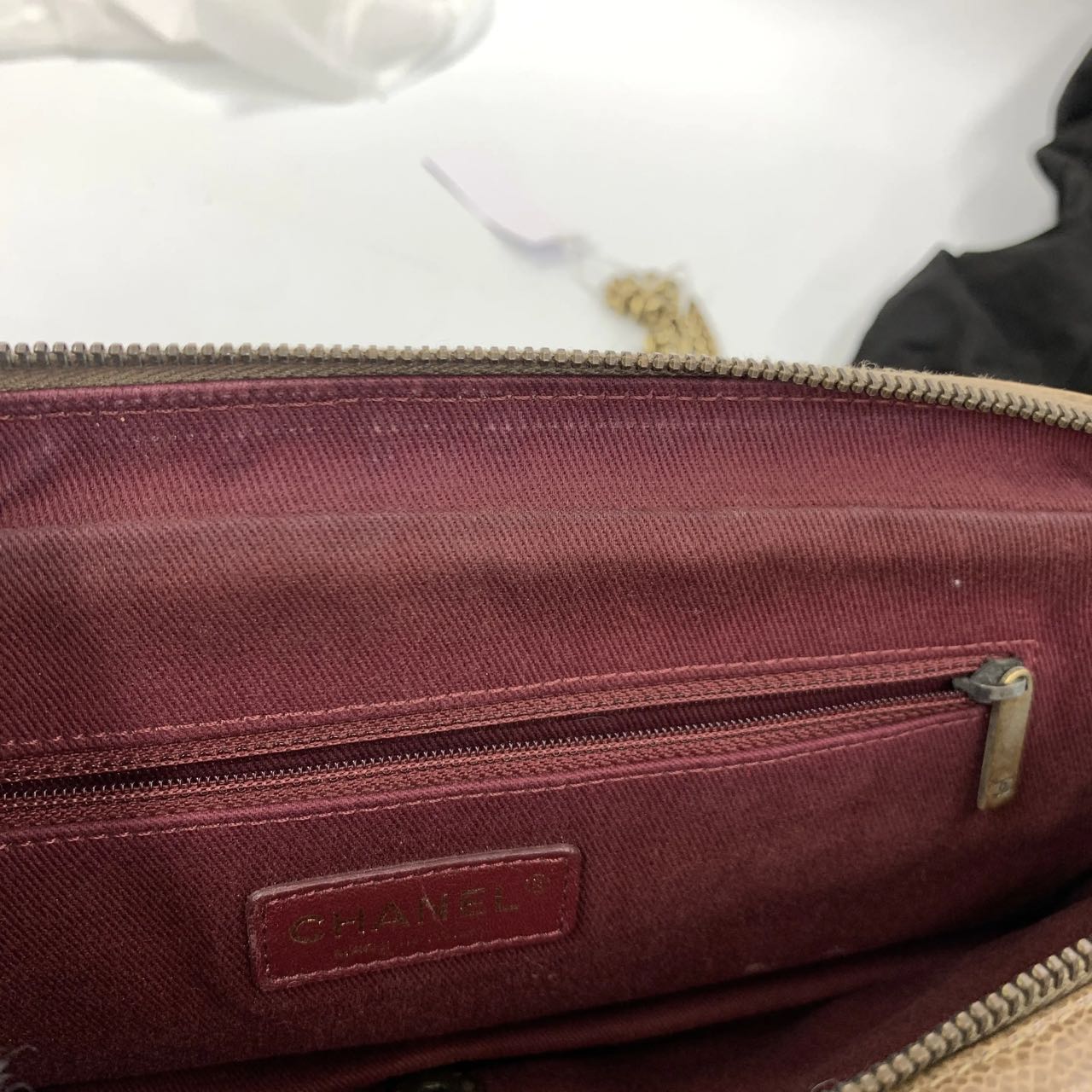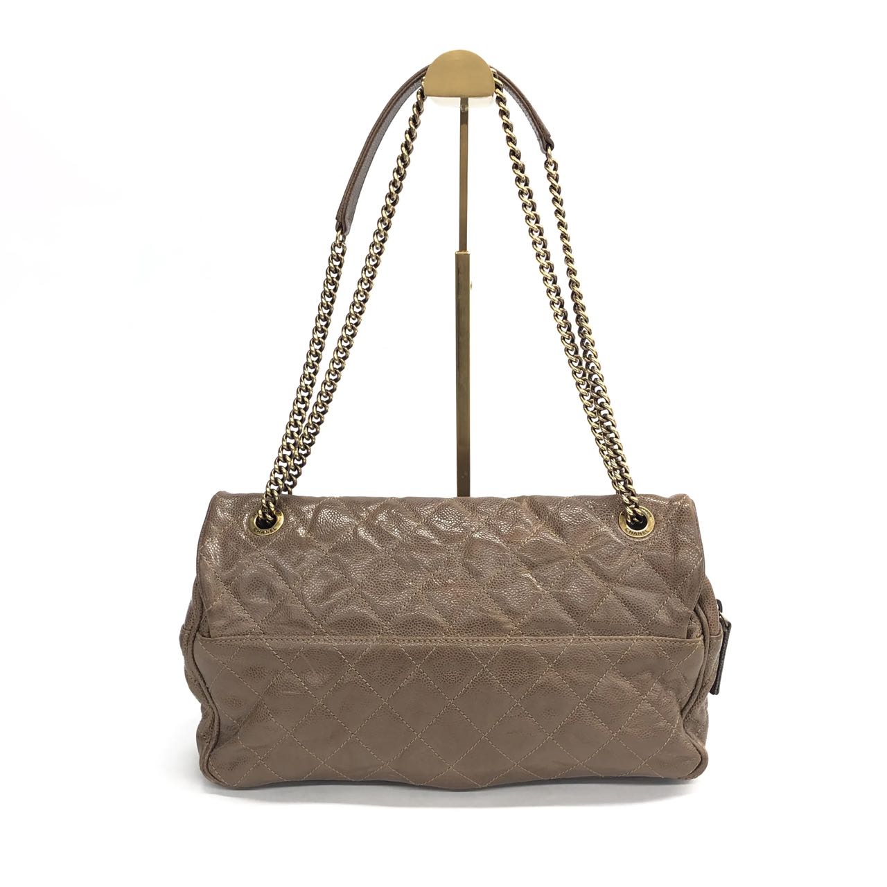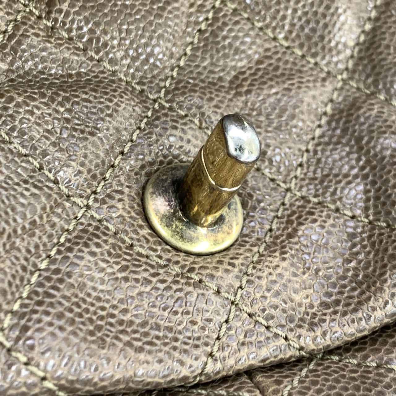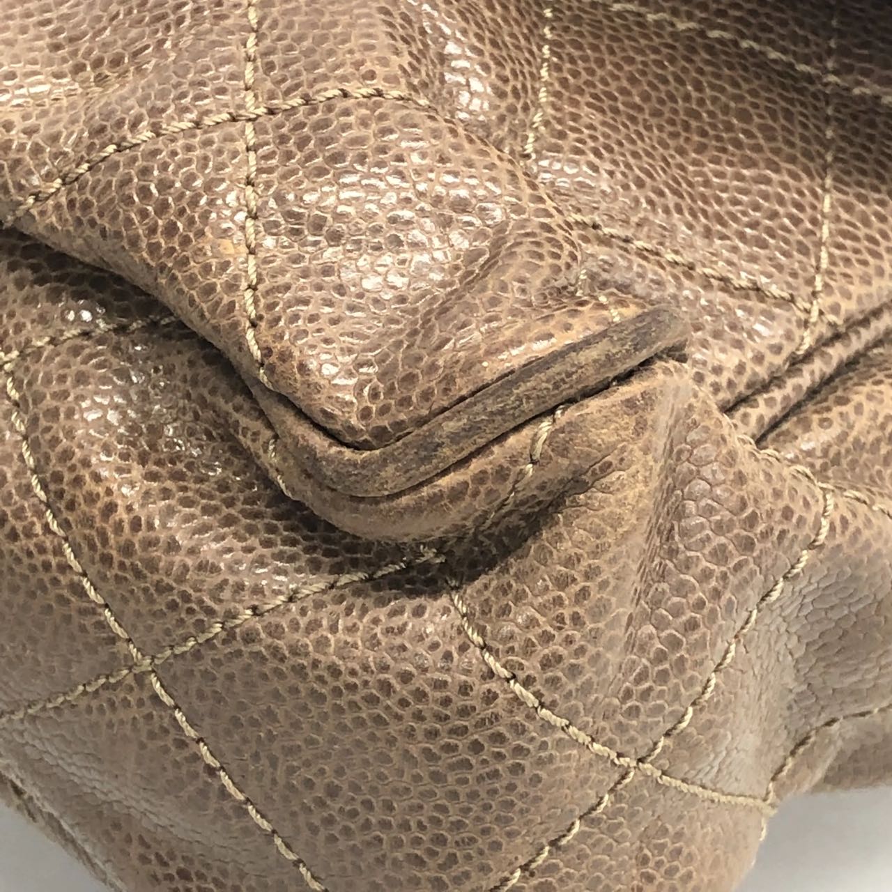 Chanel Shiva Flap Bag Jumbo Brown Quilted Shiny Caviar Leather Gold Hardware