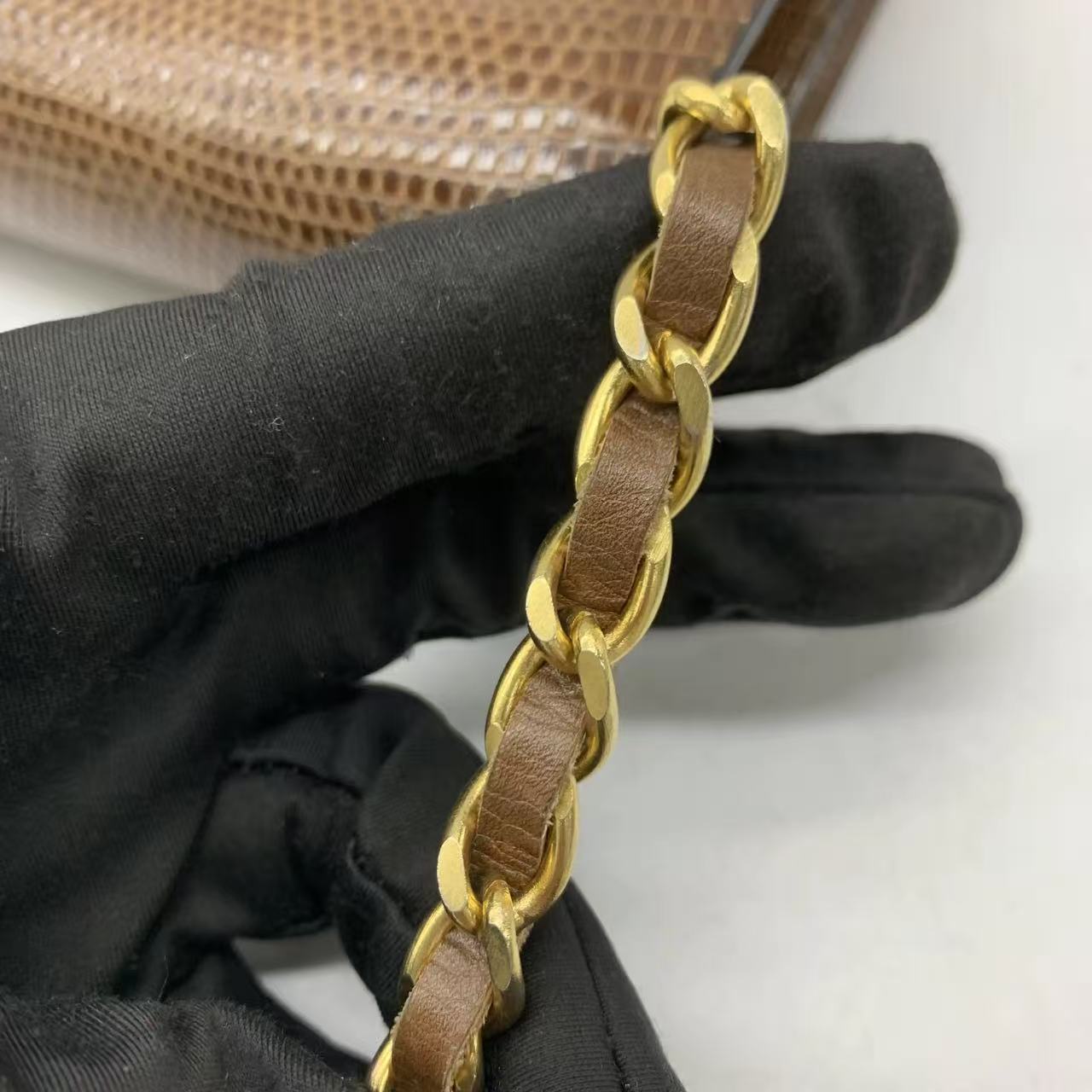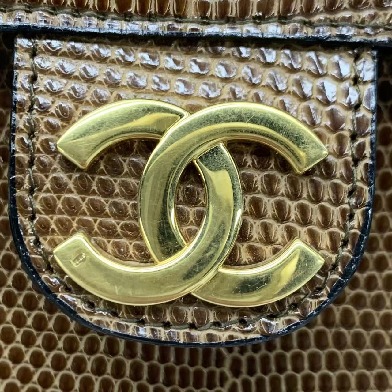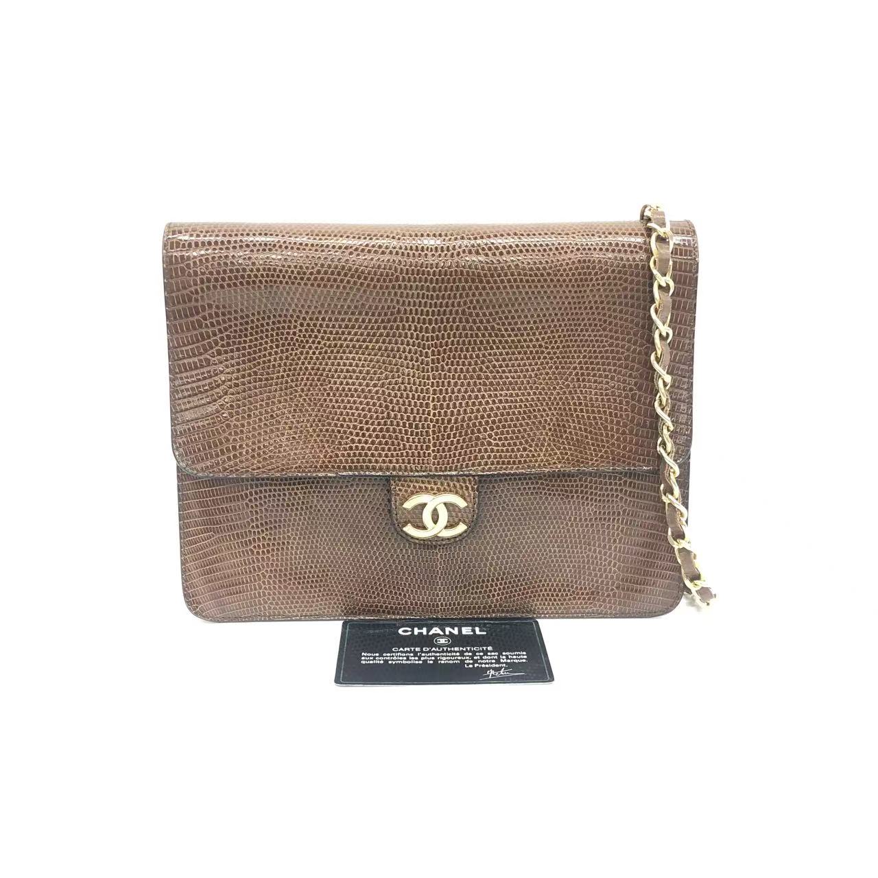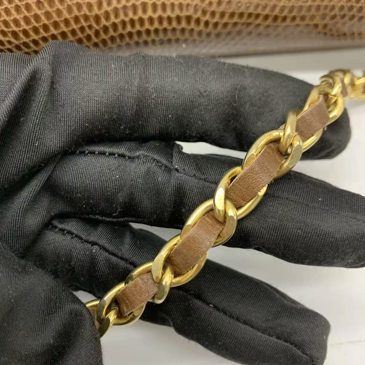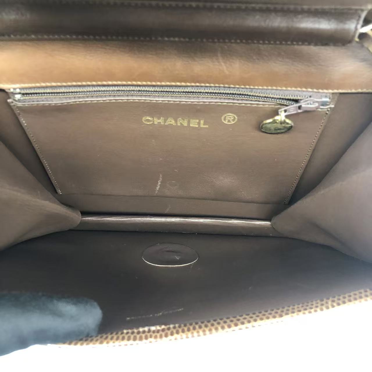 Chanel Single Flap Bag Vintage Small Brown Lizard Leather Gold Hardware