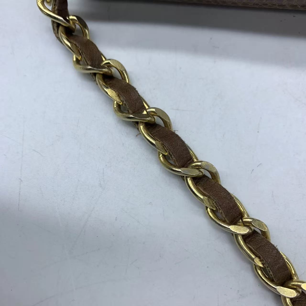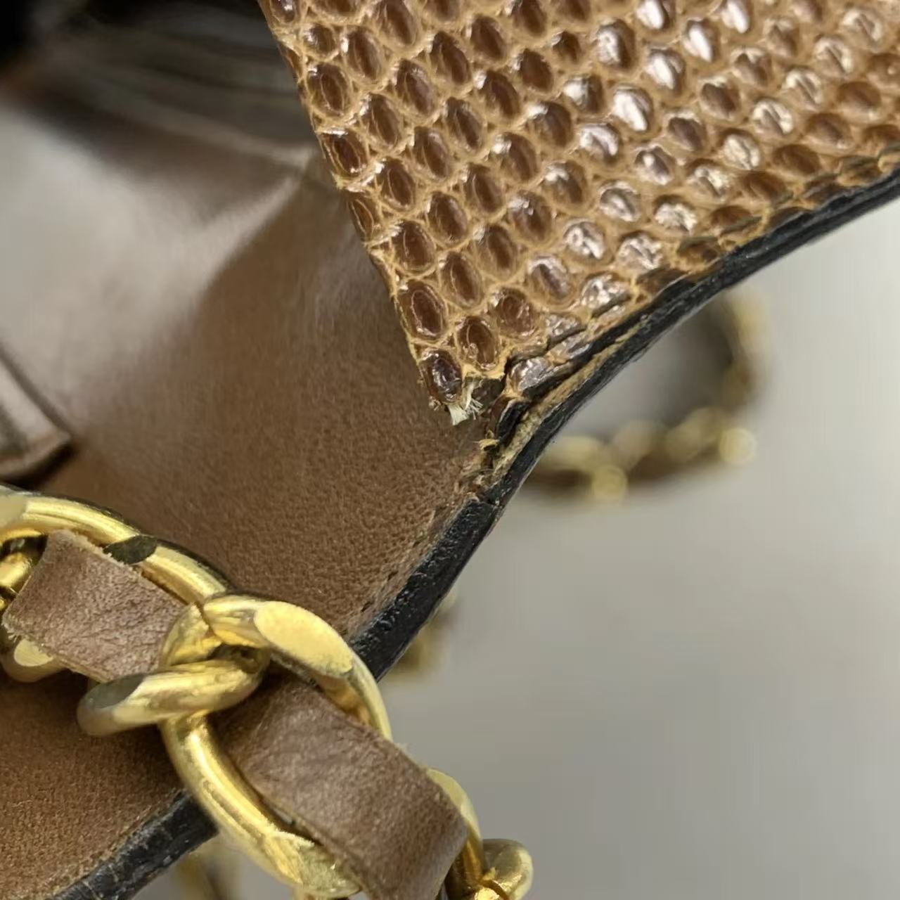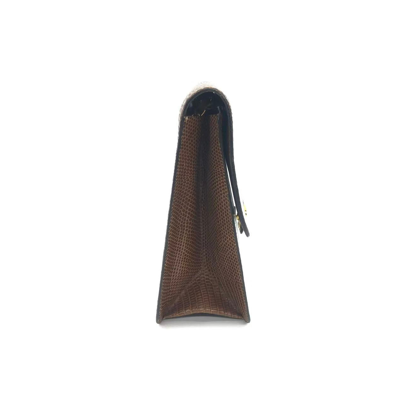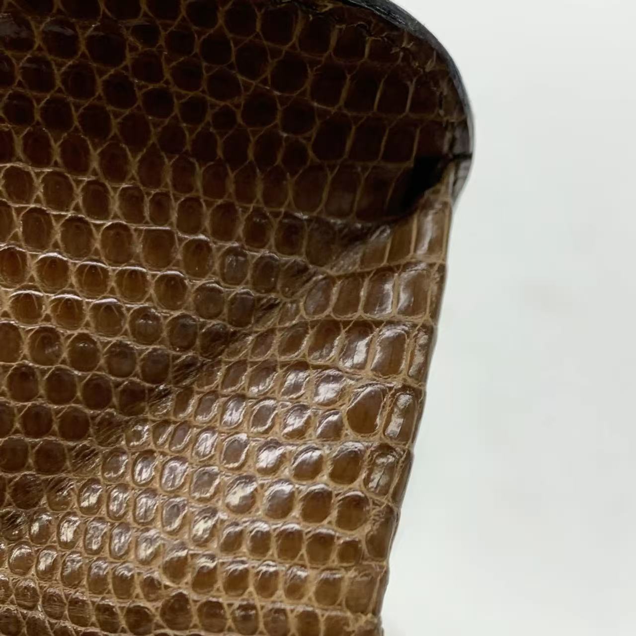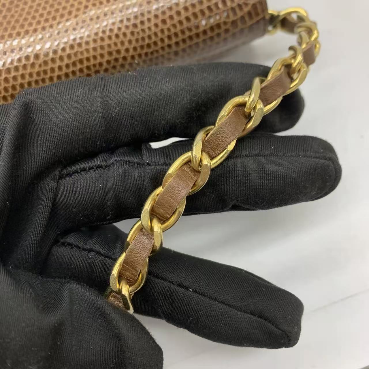 Chanel Single Flap Bag Vintage Small Brown Lizard Leather Gold Hardware