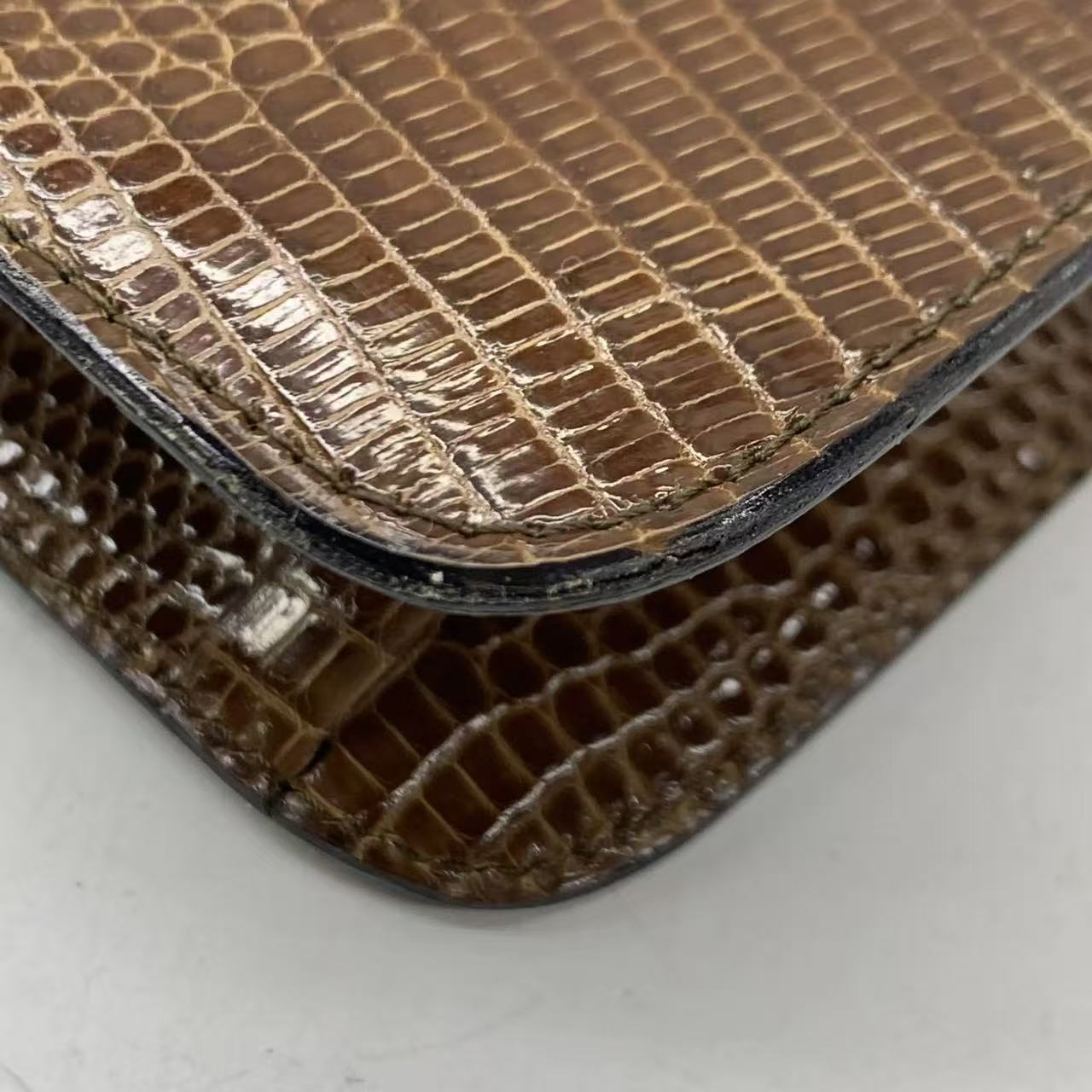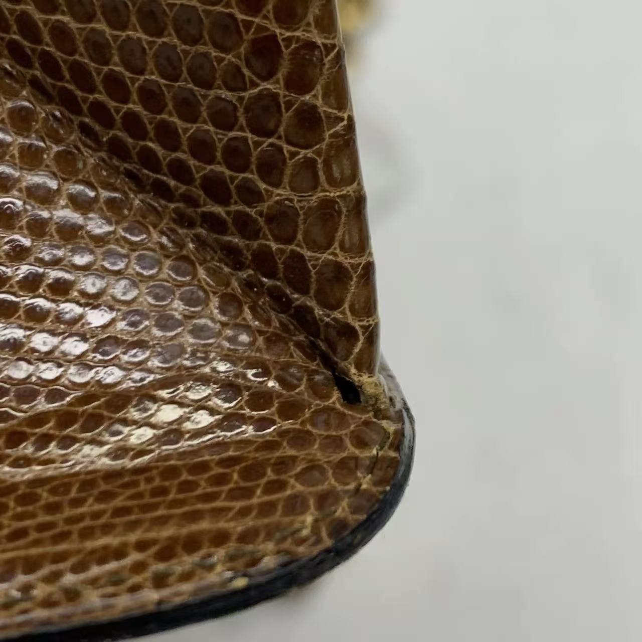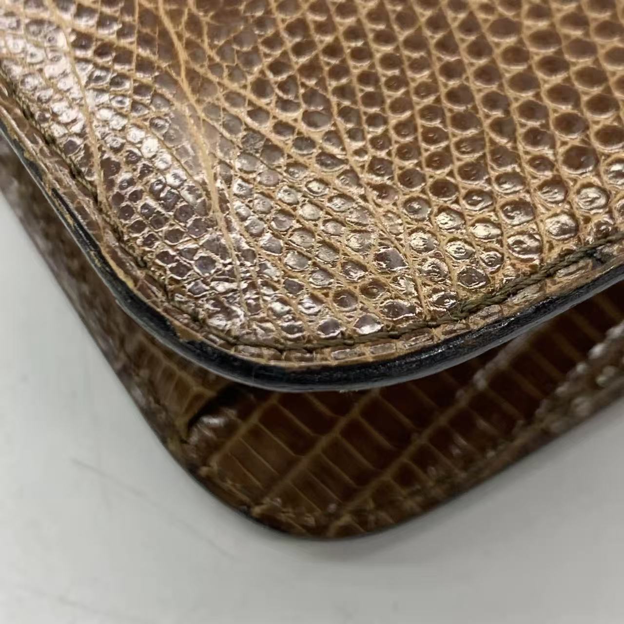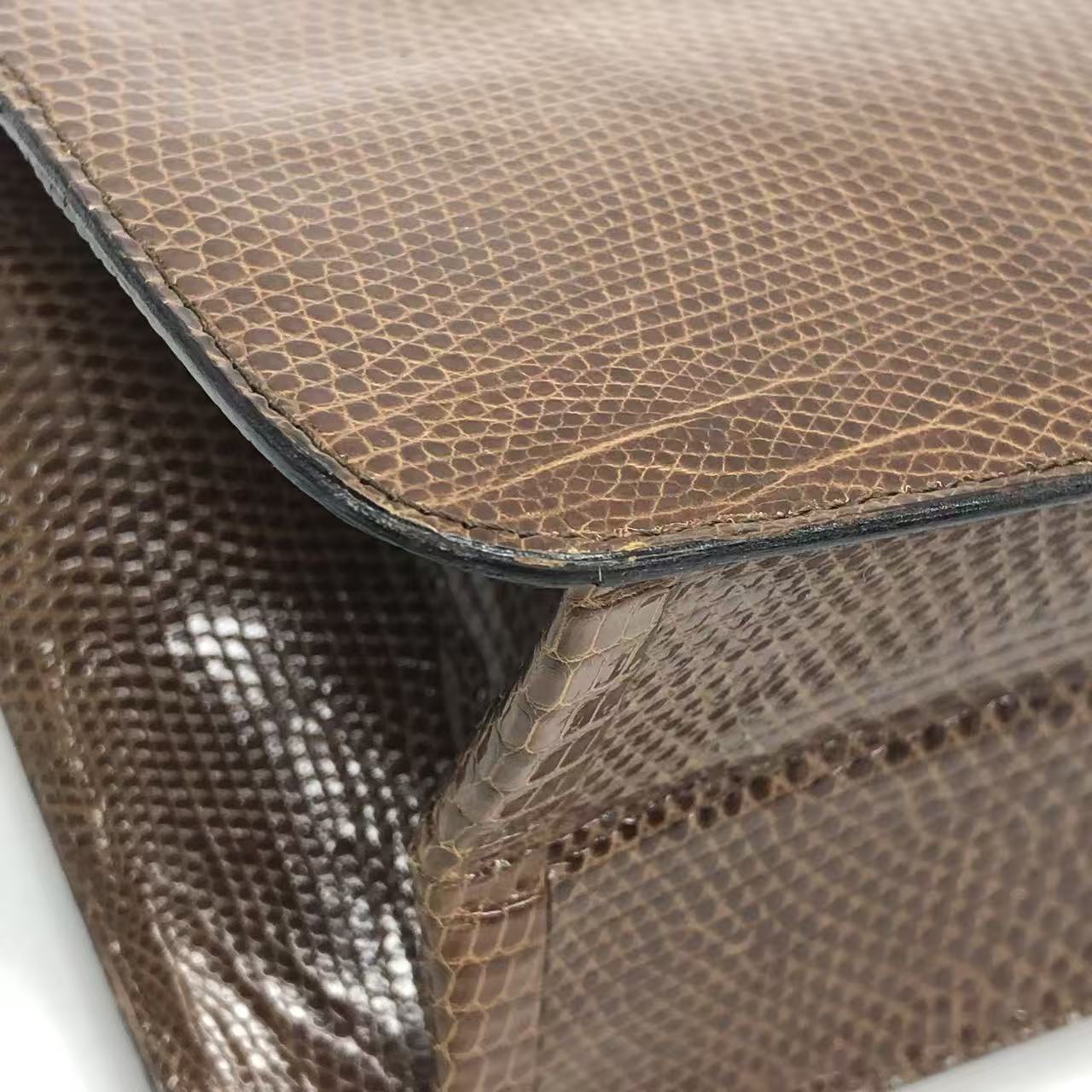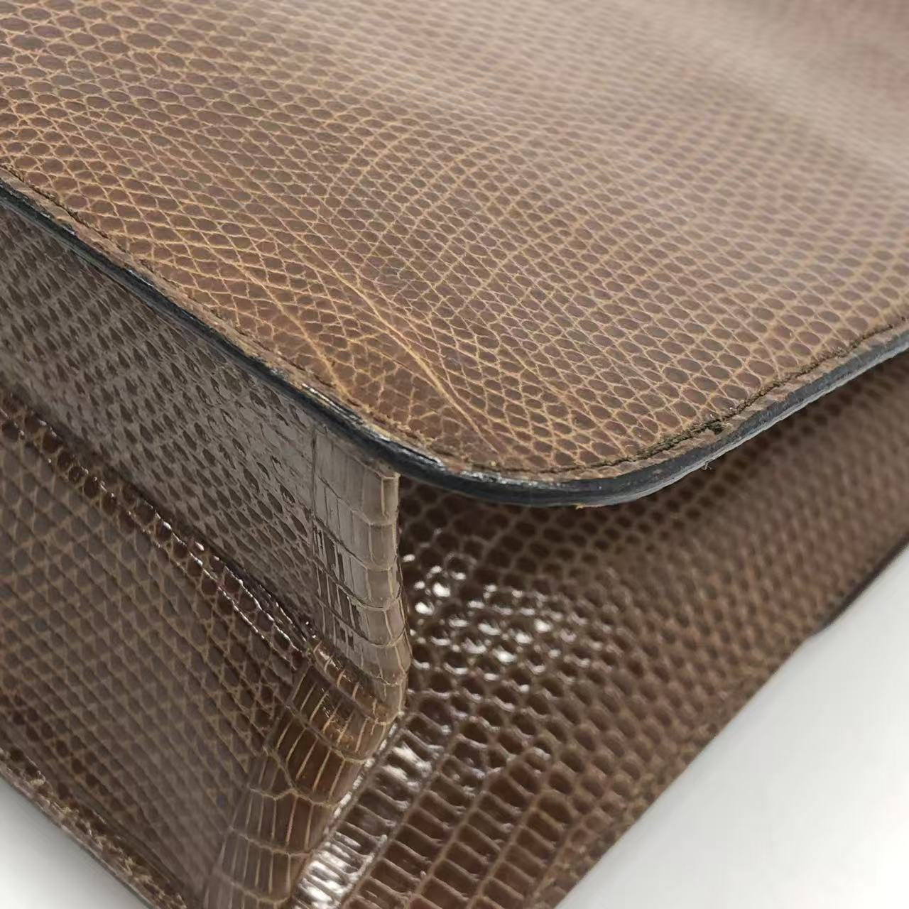 Chanel Single Flap Bag Vintage Small Brown Lizard Leather Gold Hardware