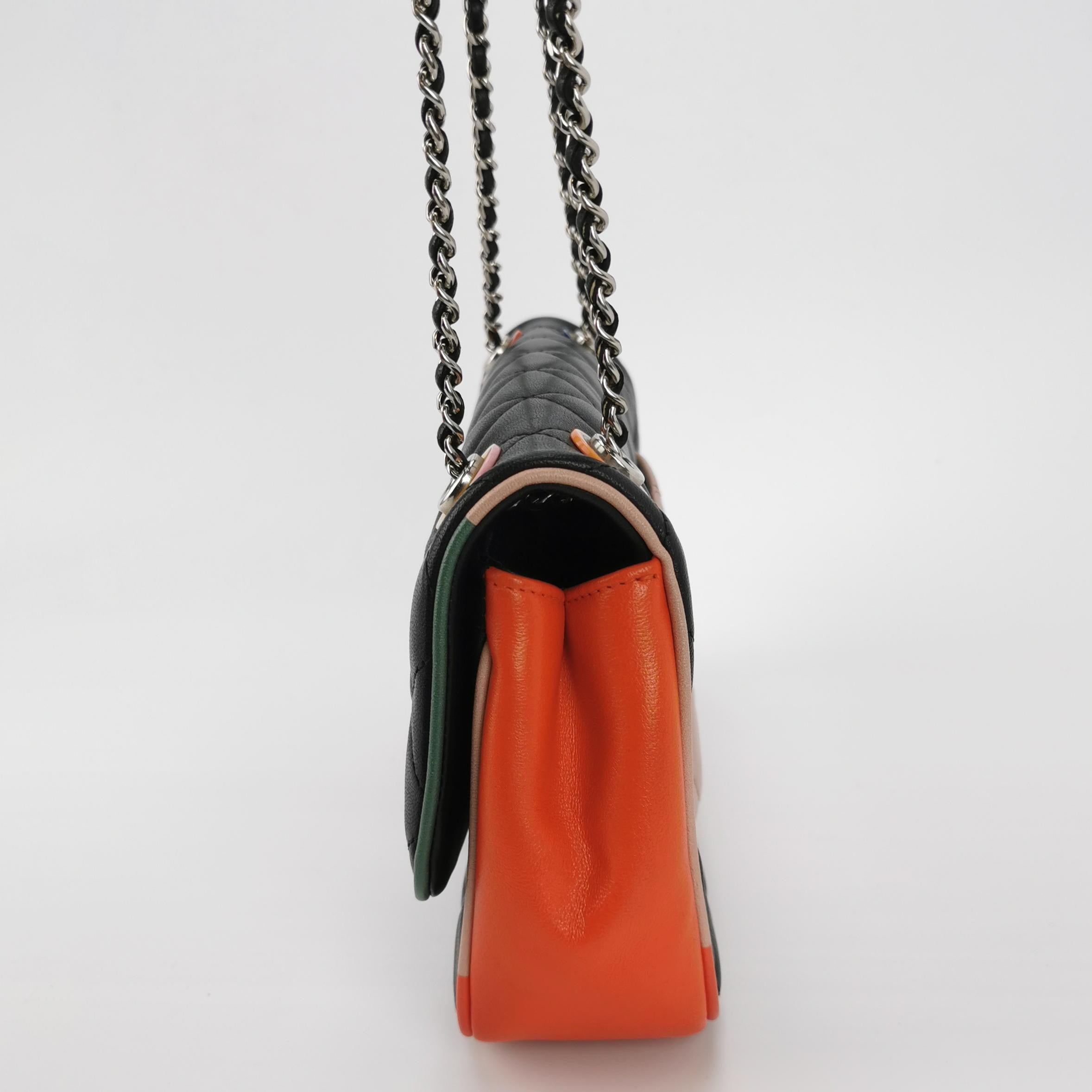 Chanel Timeless Classic Flap Lambskin Plexiglass Quilted Medium Cuba Color Flap Black with Multicolor Trim
