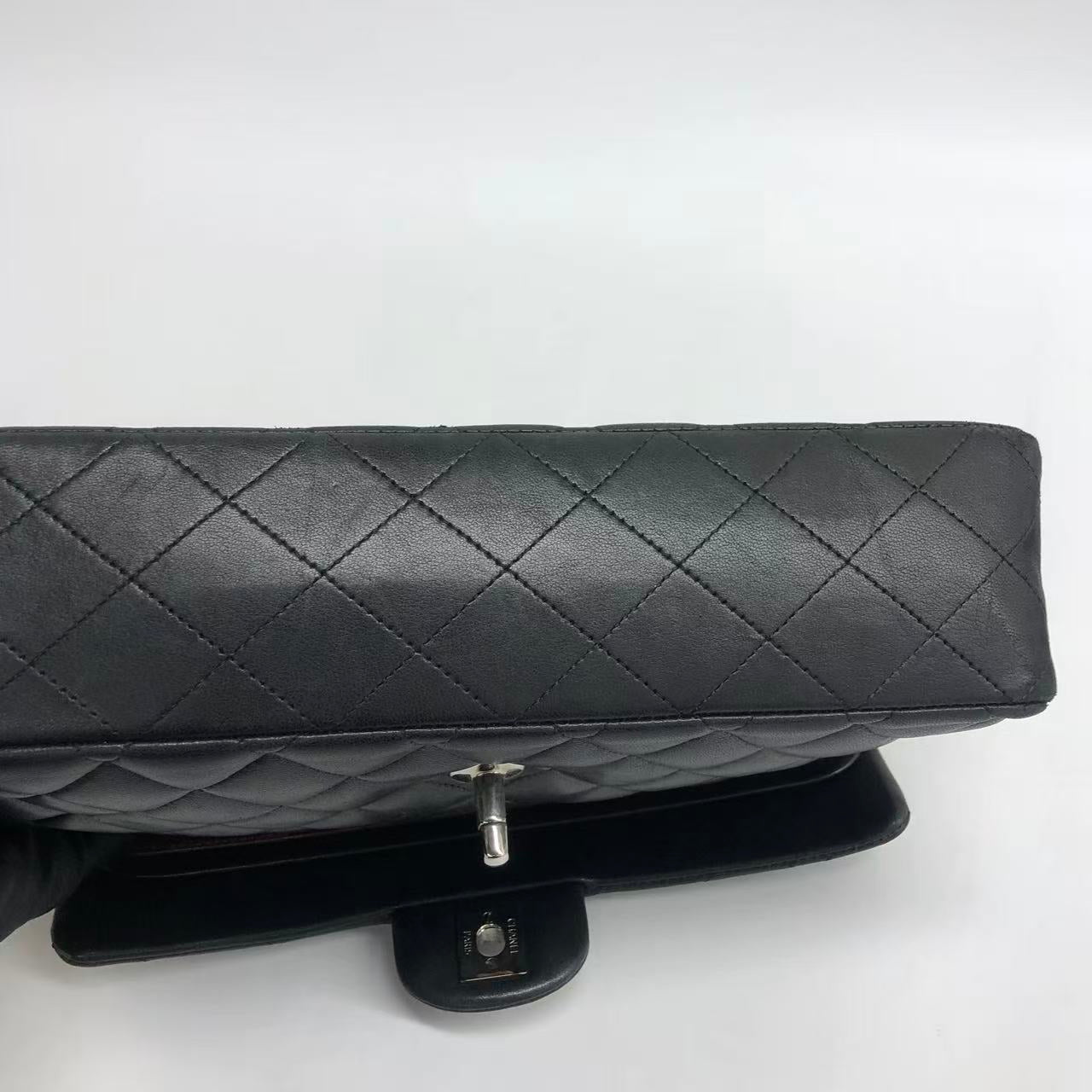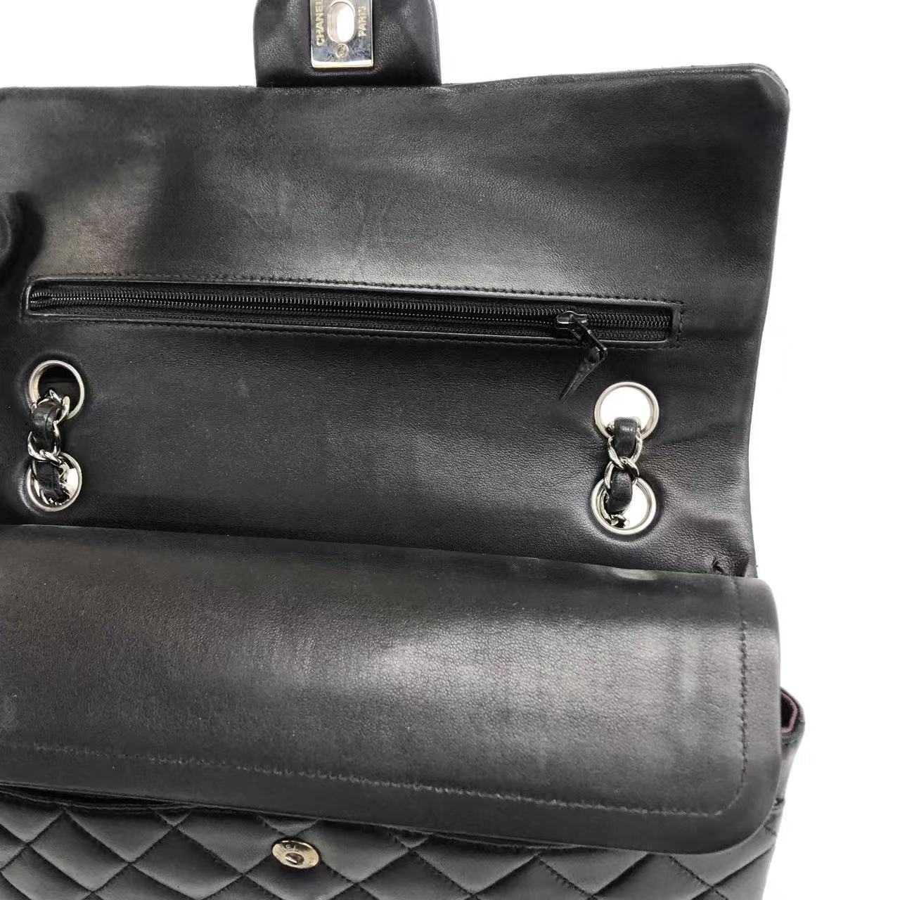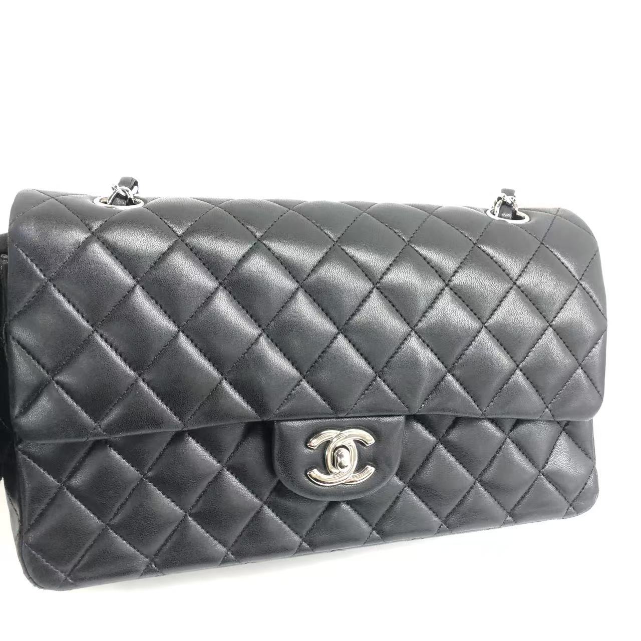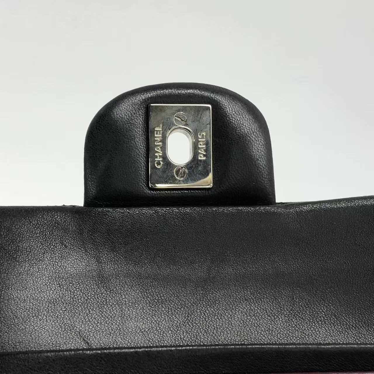 Chanel Timeless Classic Flap Medium 2009 Black Lambskin Leather Silver Hardware