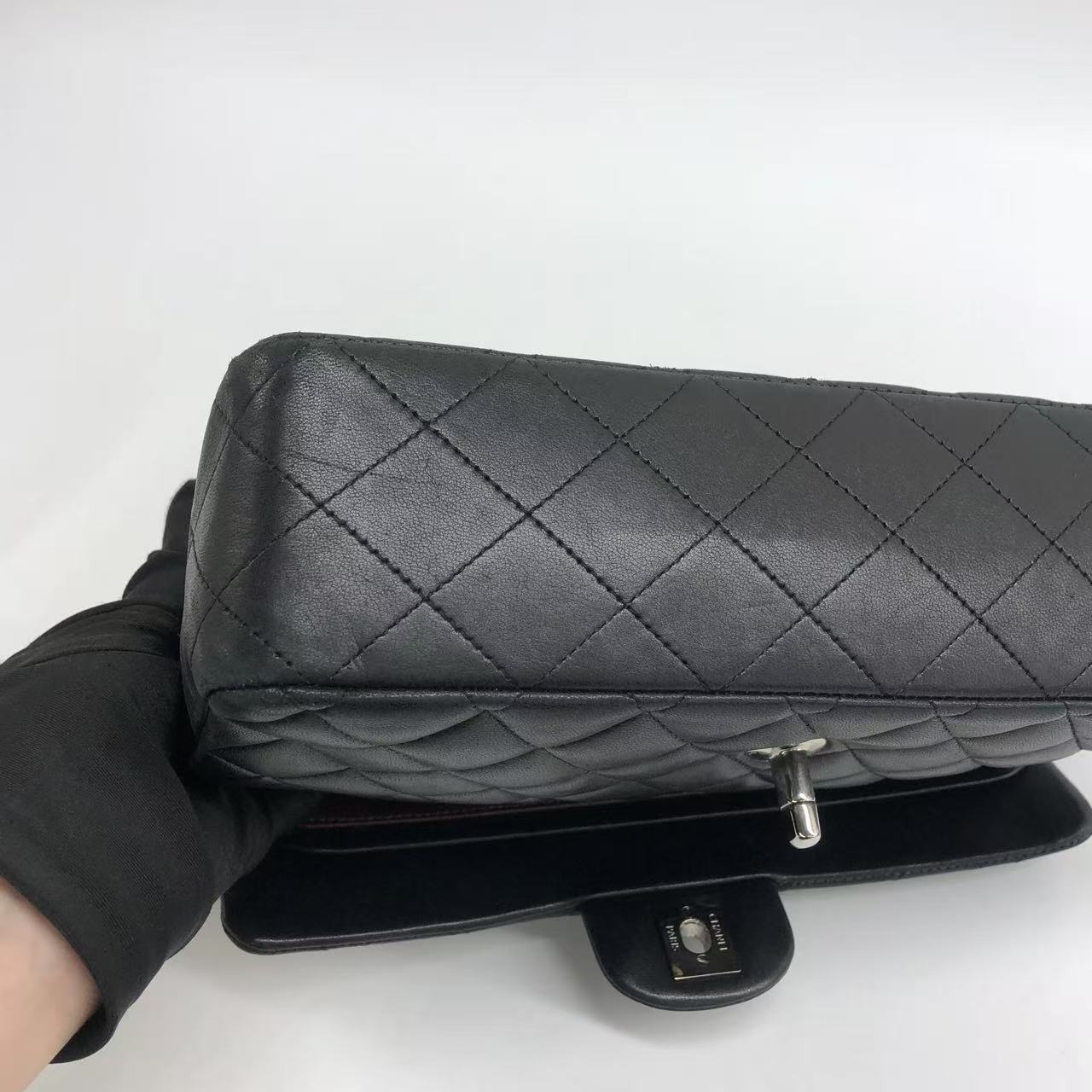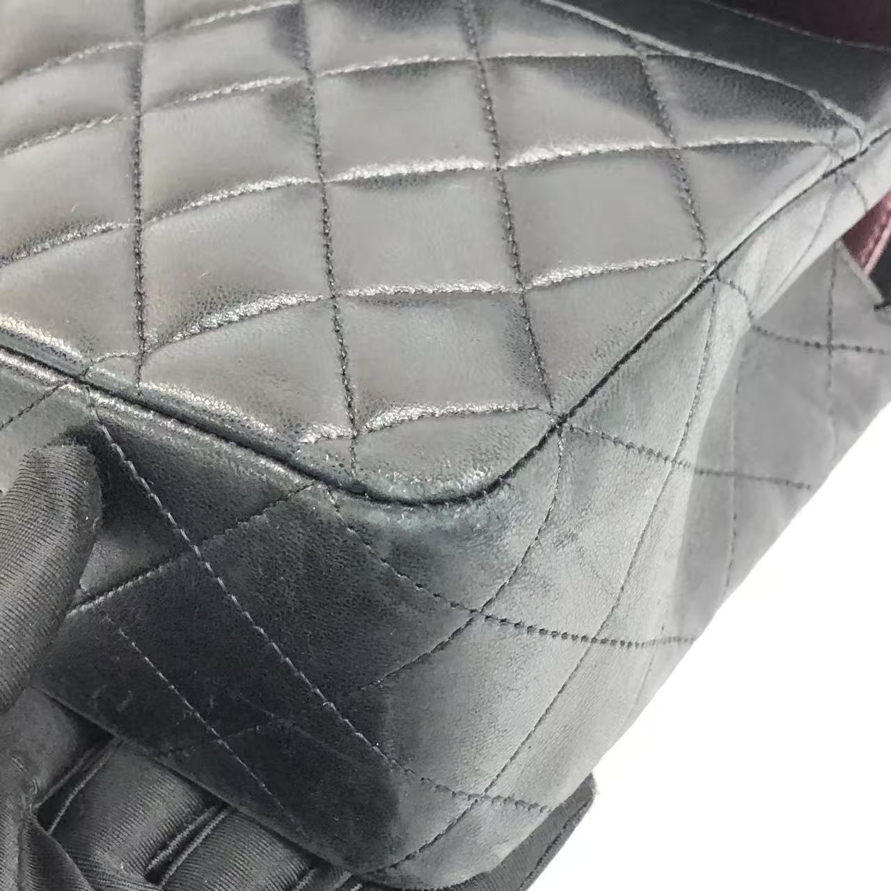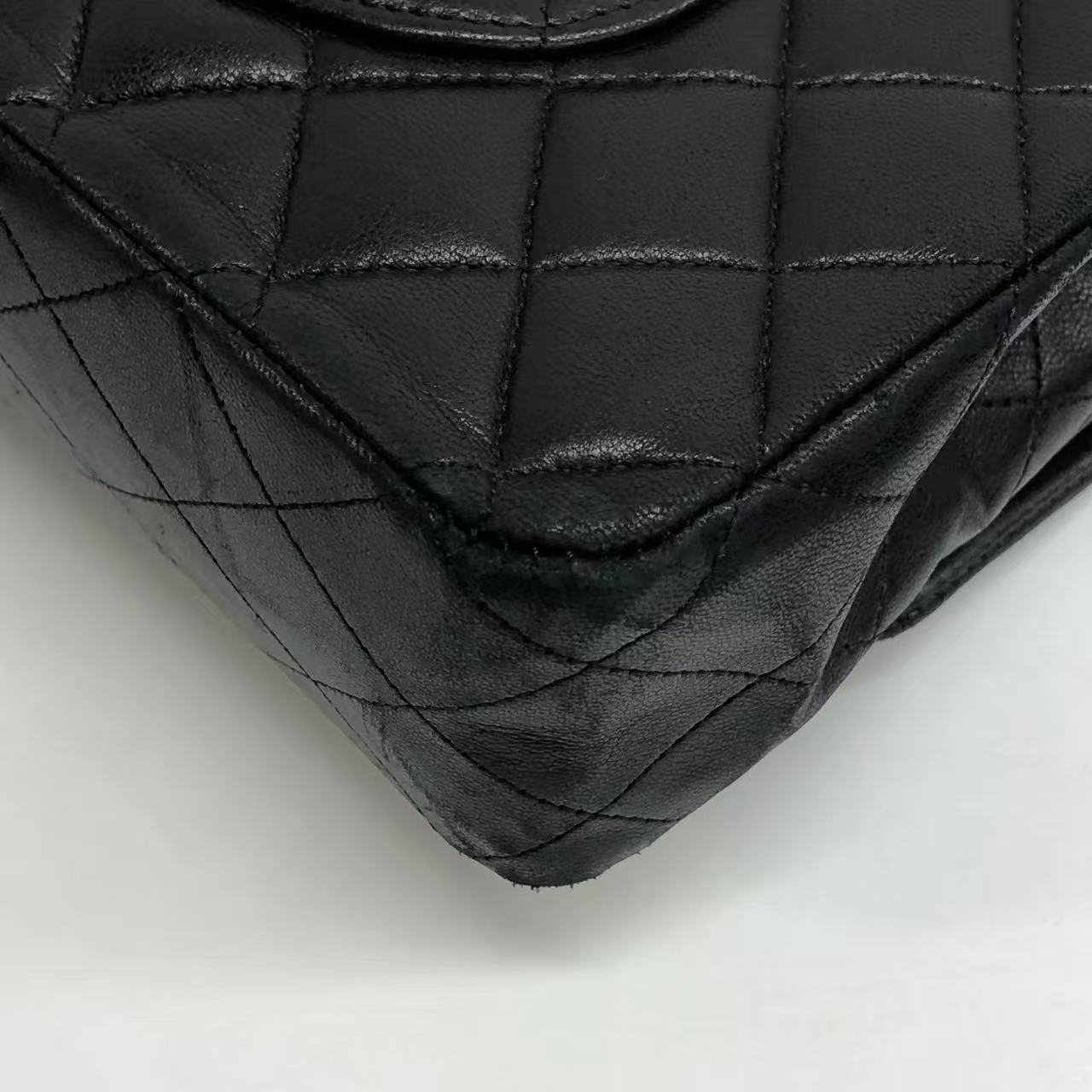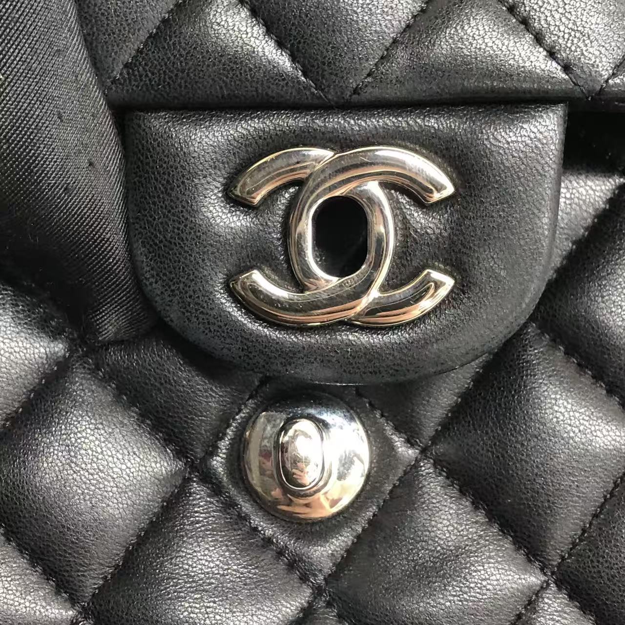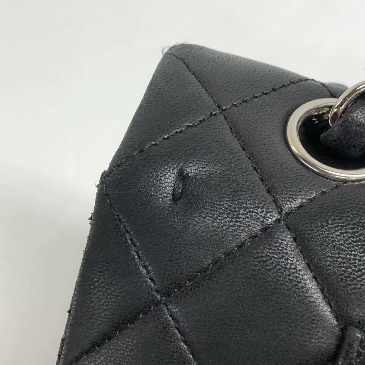 Chanel Timeless Classic Flap Medium 2009 Black Lambskin Leather Silver Hardware