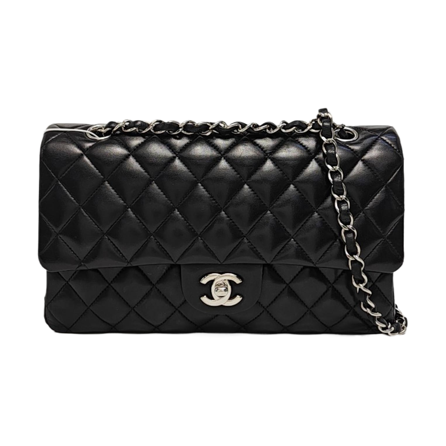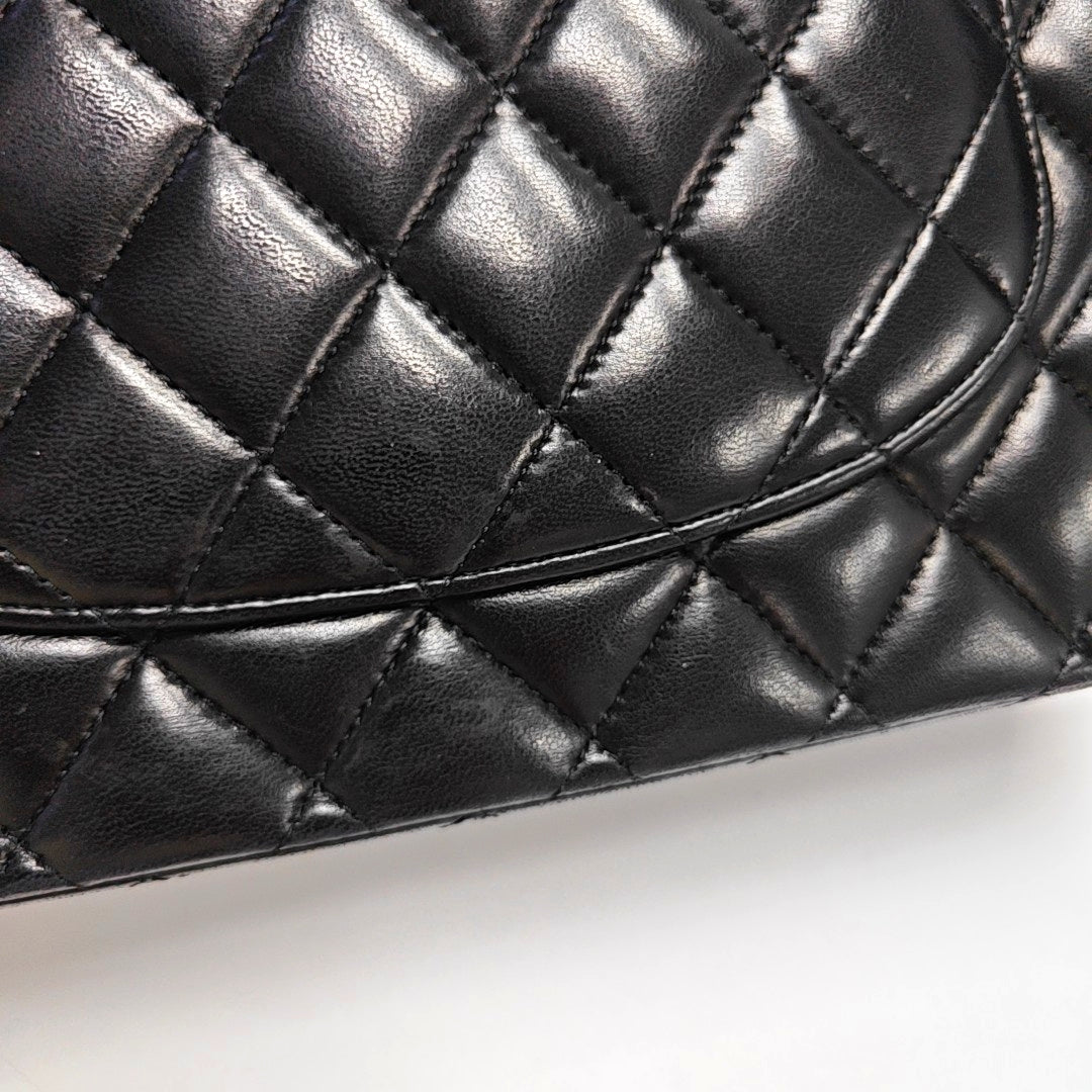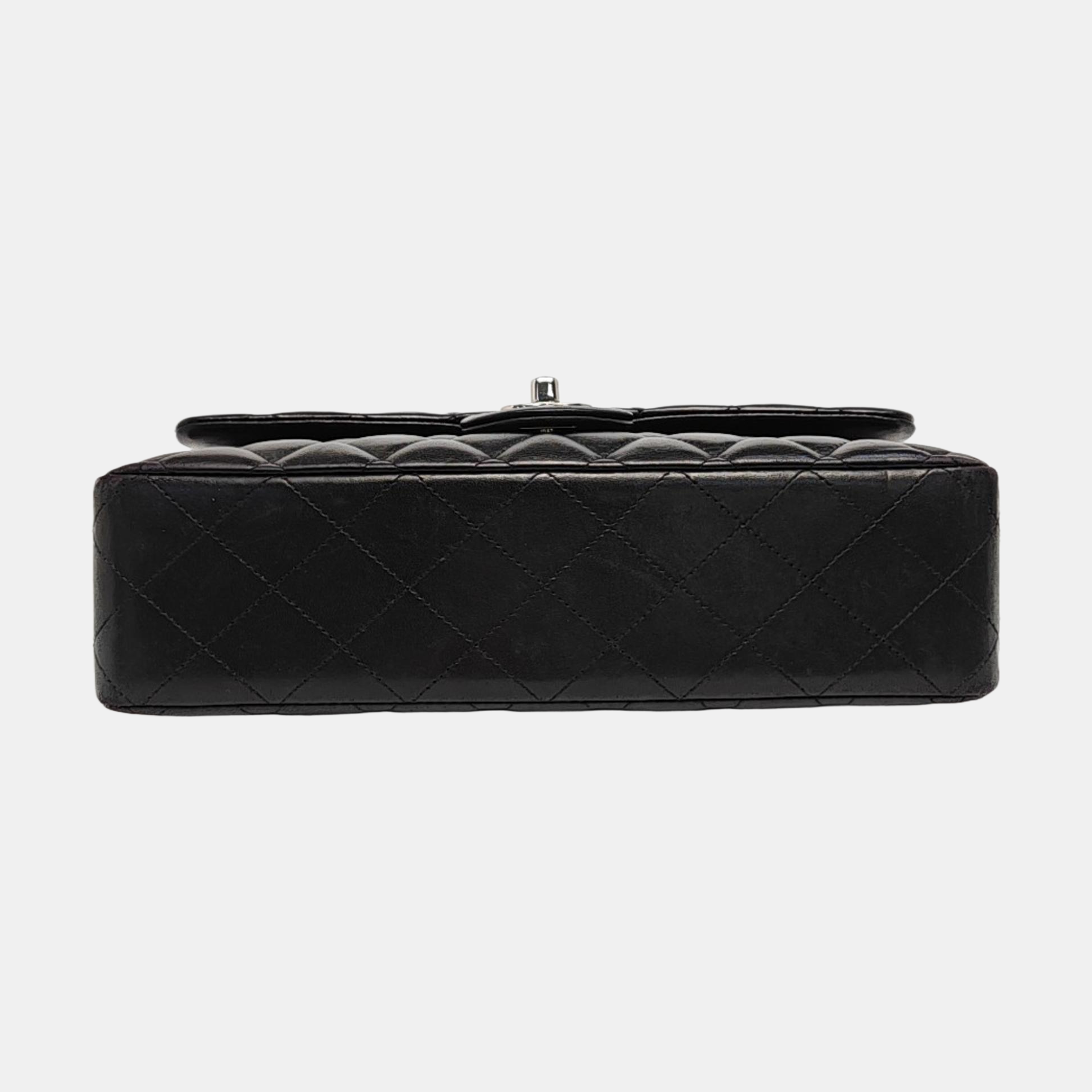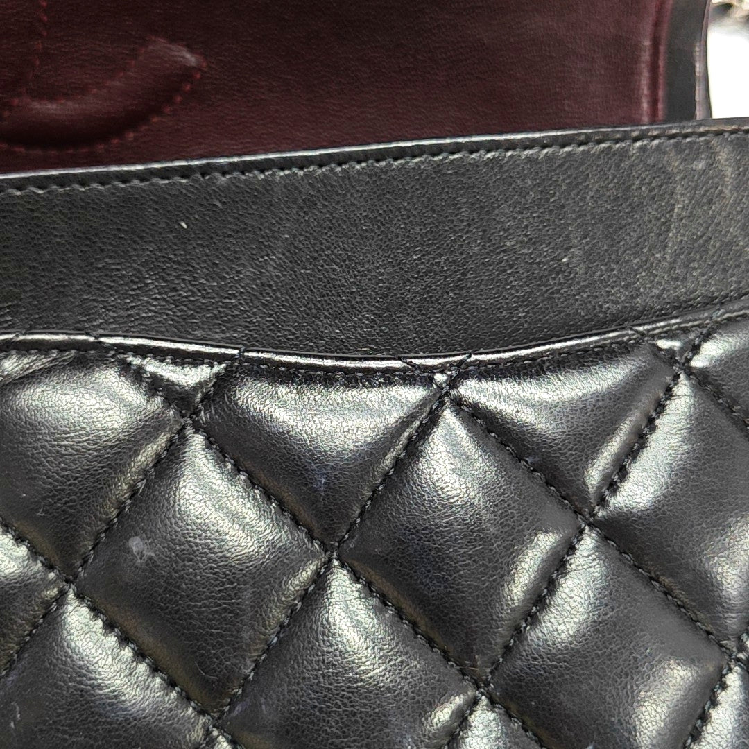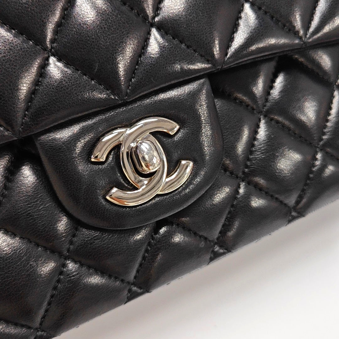 Chanel Timeless Classic Flap Medium 2014 Black Lambskin Leather Silver Hardware