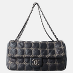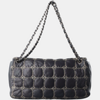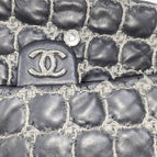 Chanel Tweed Square Stitch on Leather Bubble Grey Medium Shoulder Bag