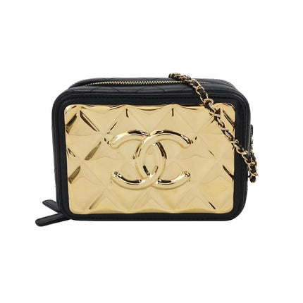 Chanel Vanity Case Mini Black Quilted Lambskin Golden Plate 2021