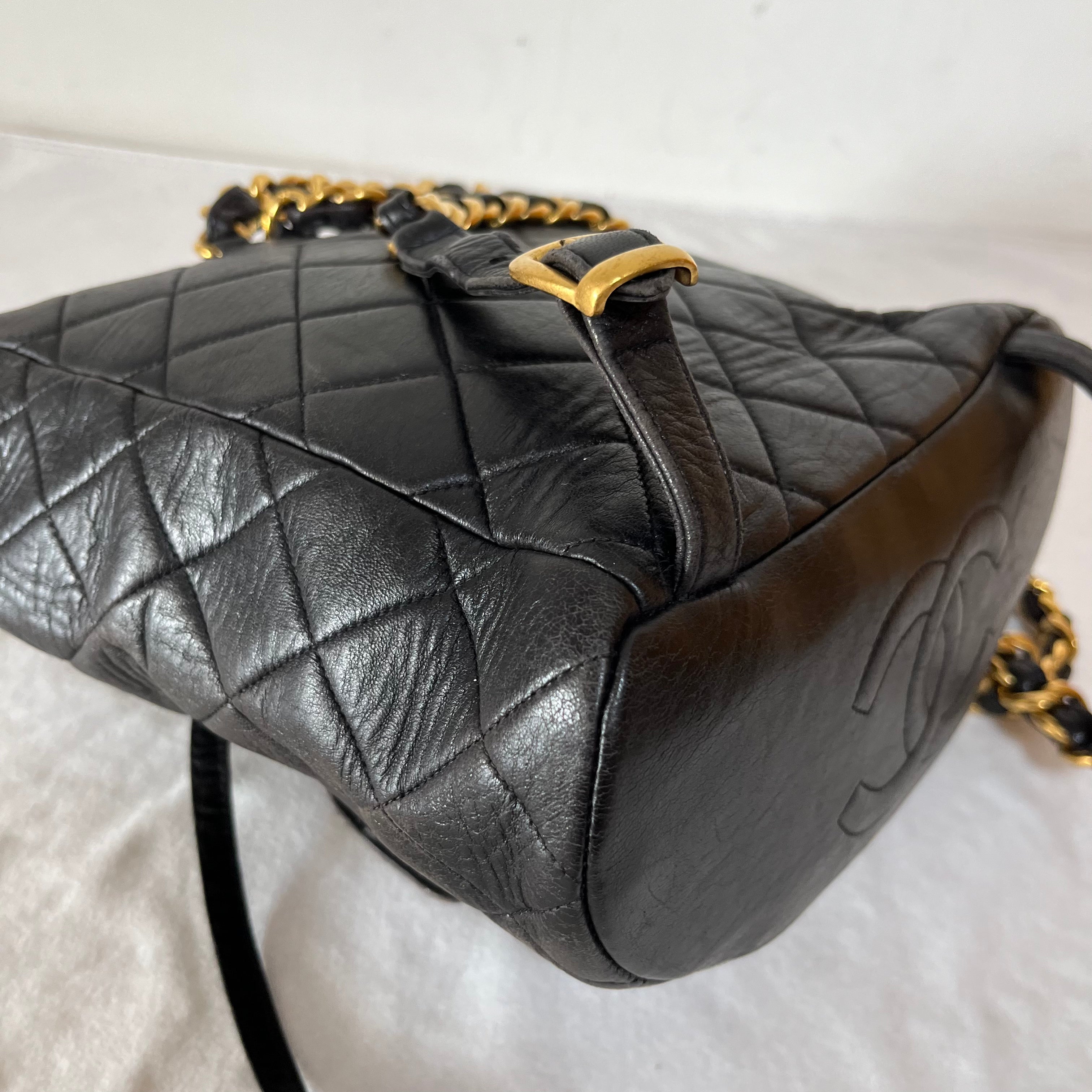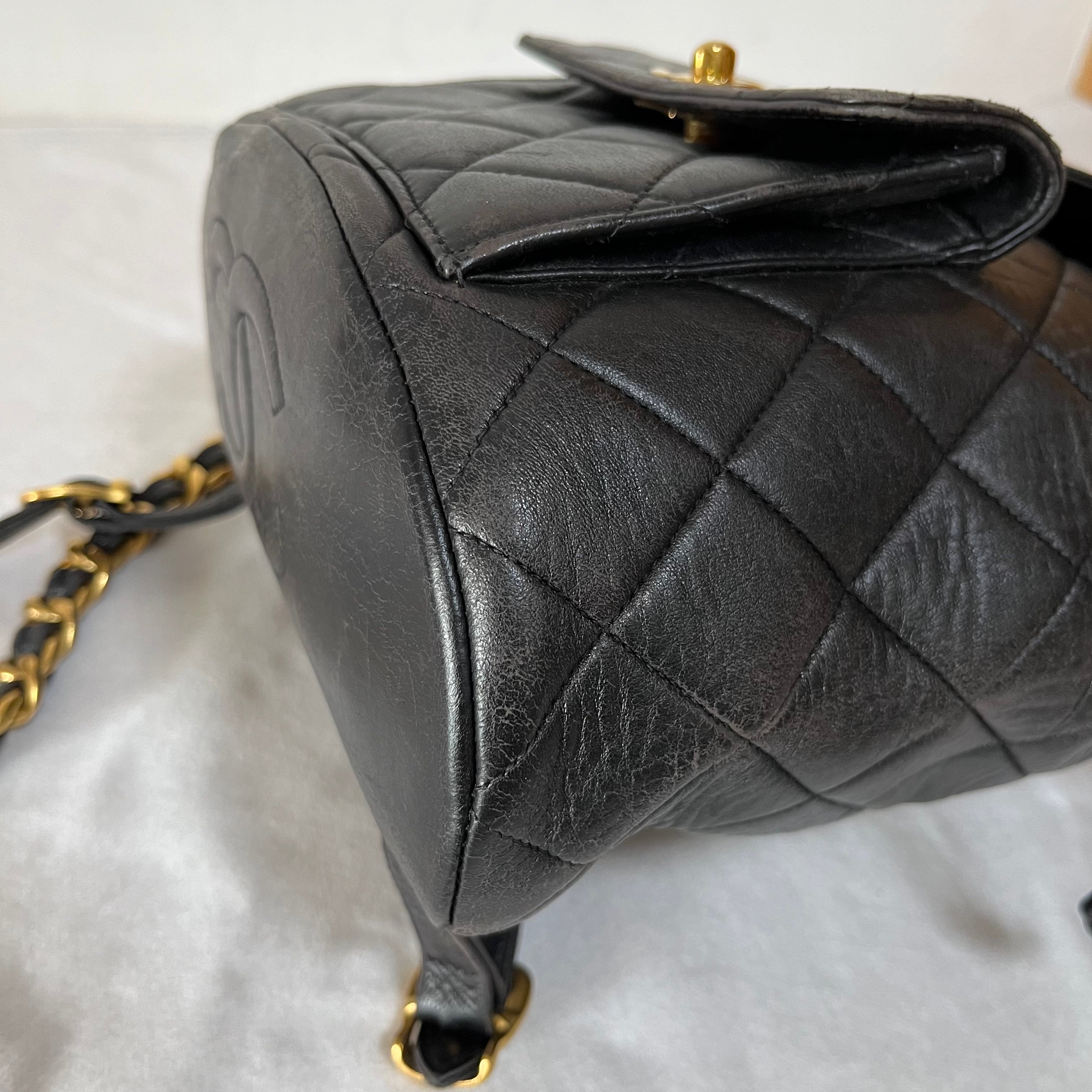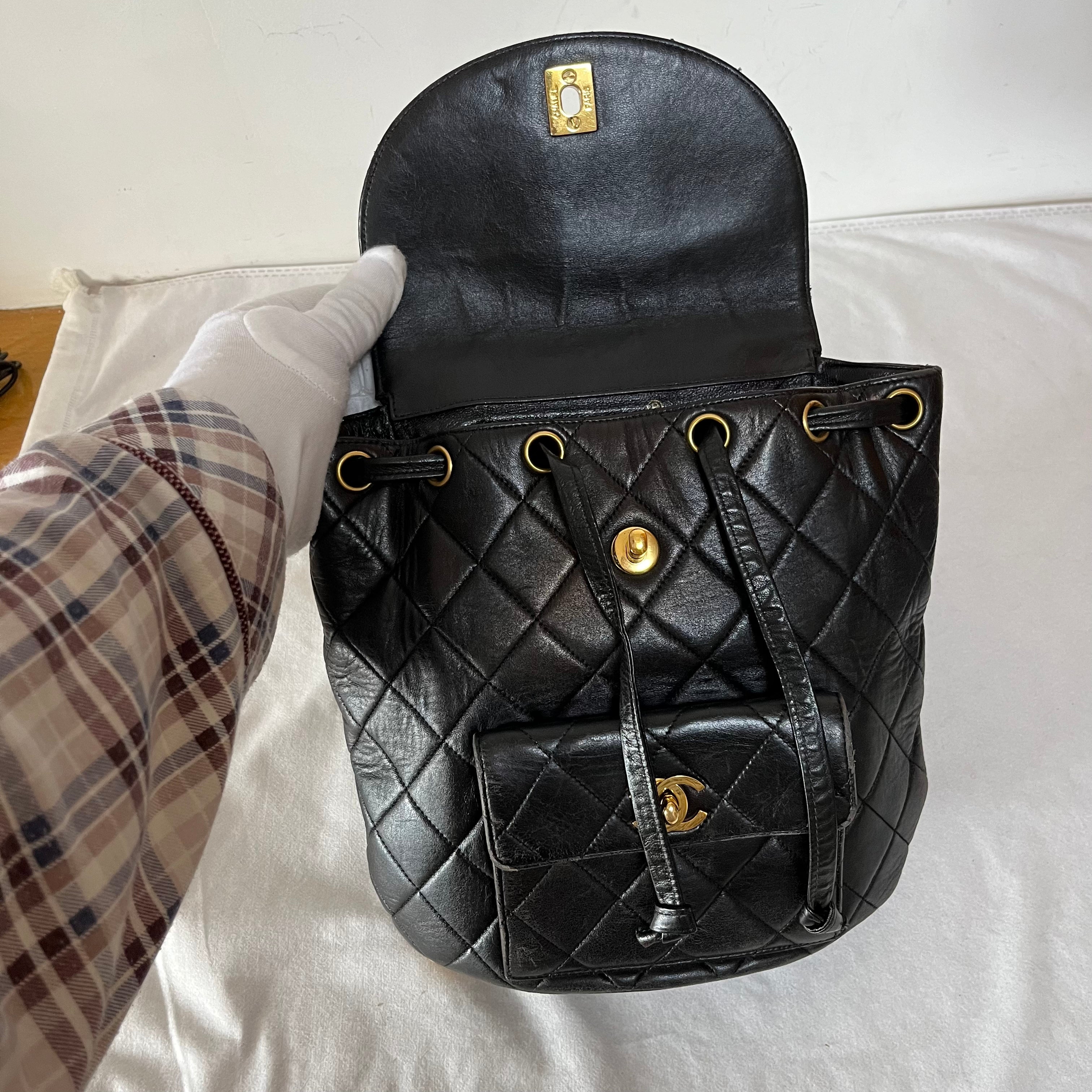 Chanel Vintage 1994-1996 Duma Backpack Black Lambskin Leather Gold Hardware