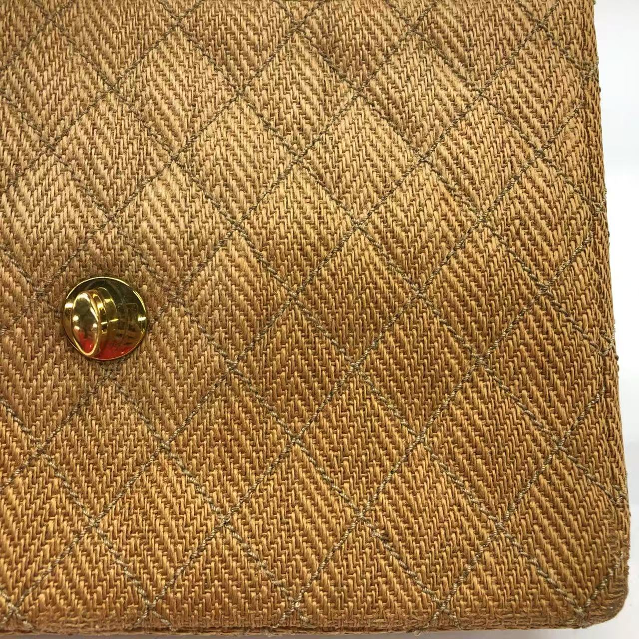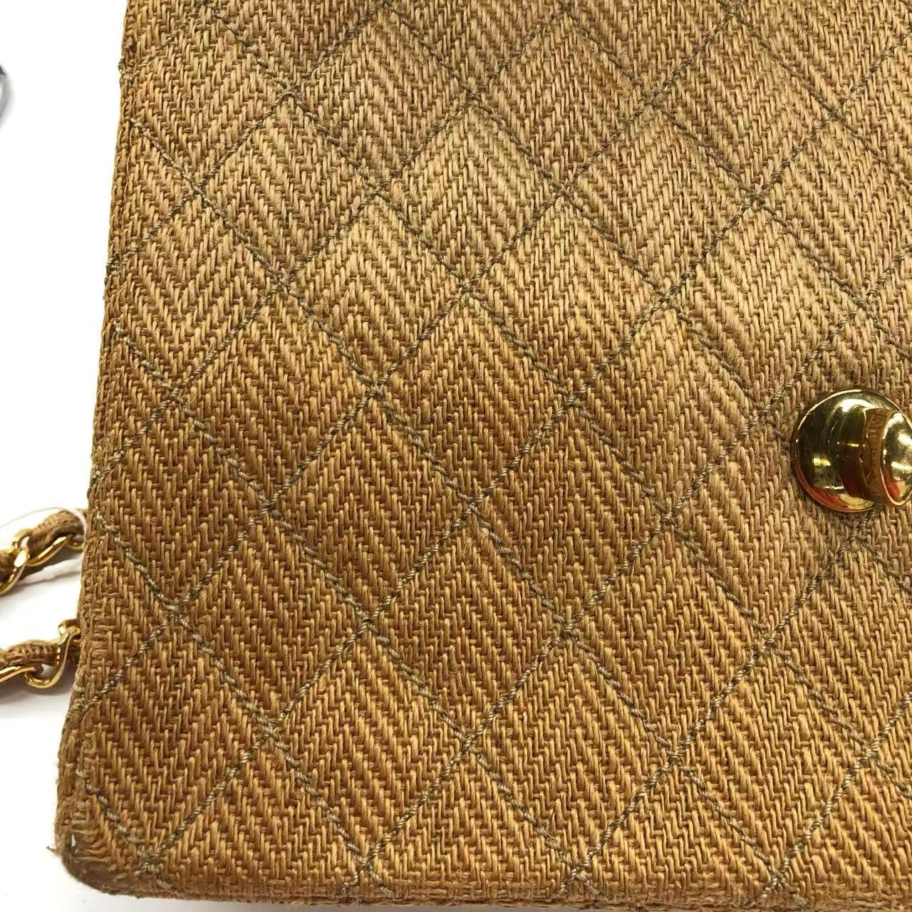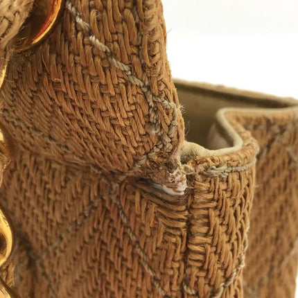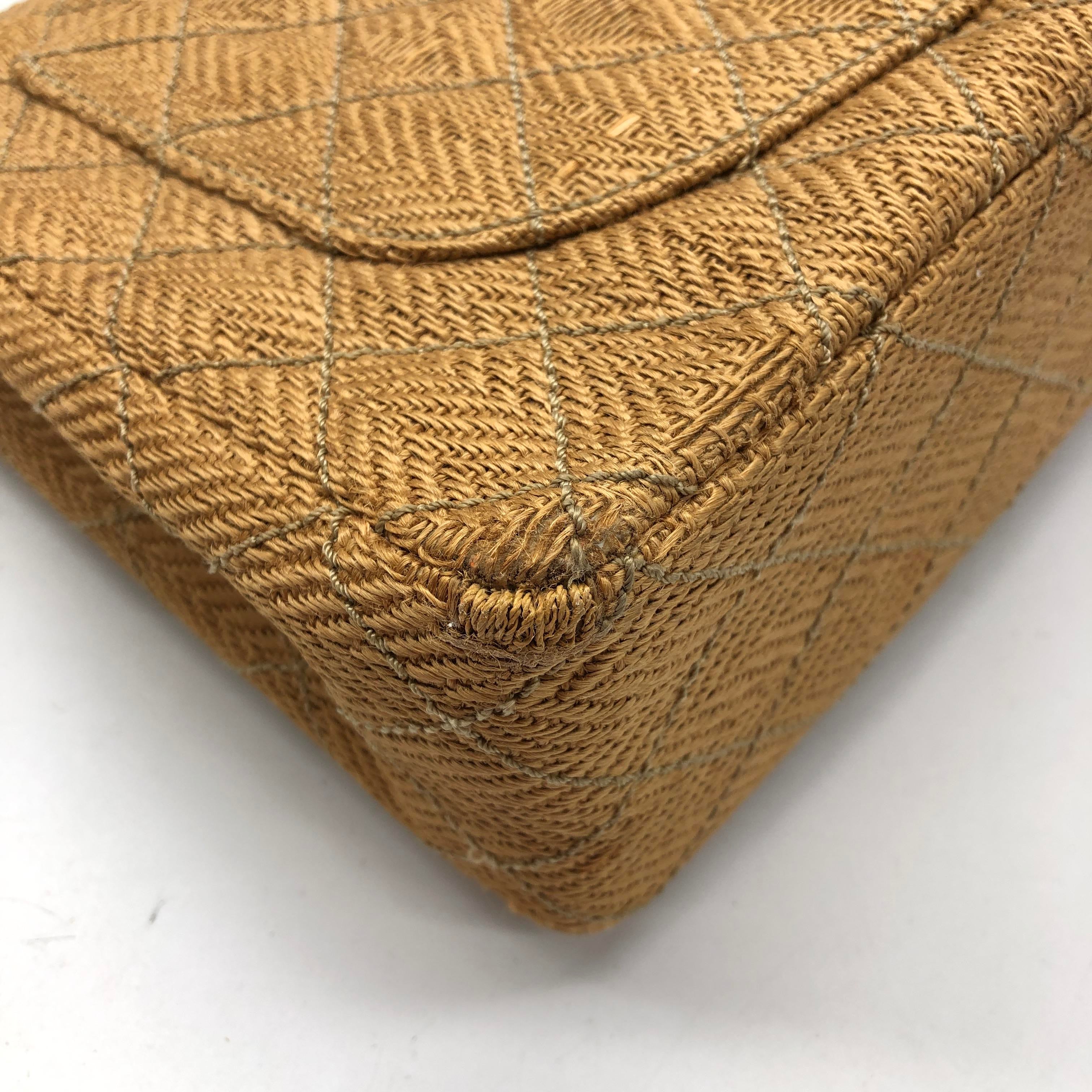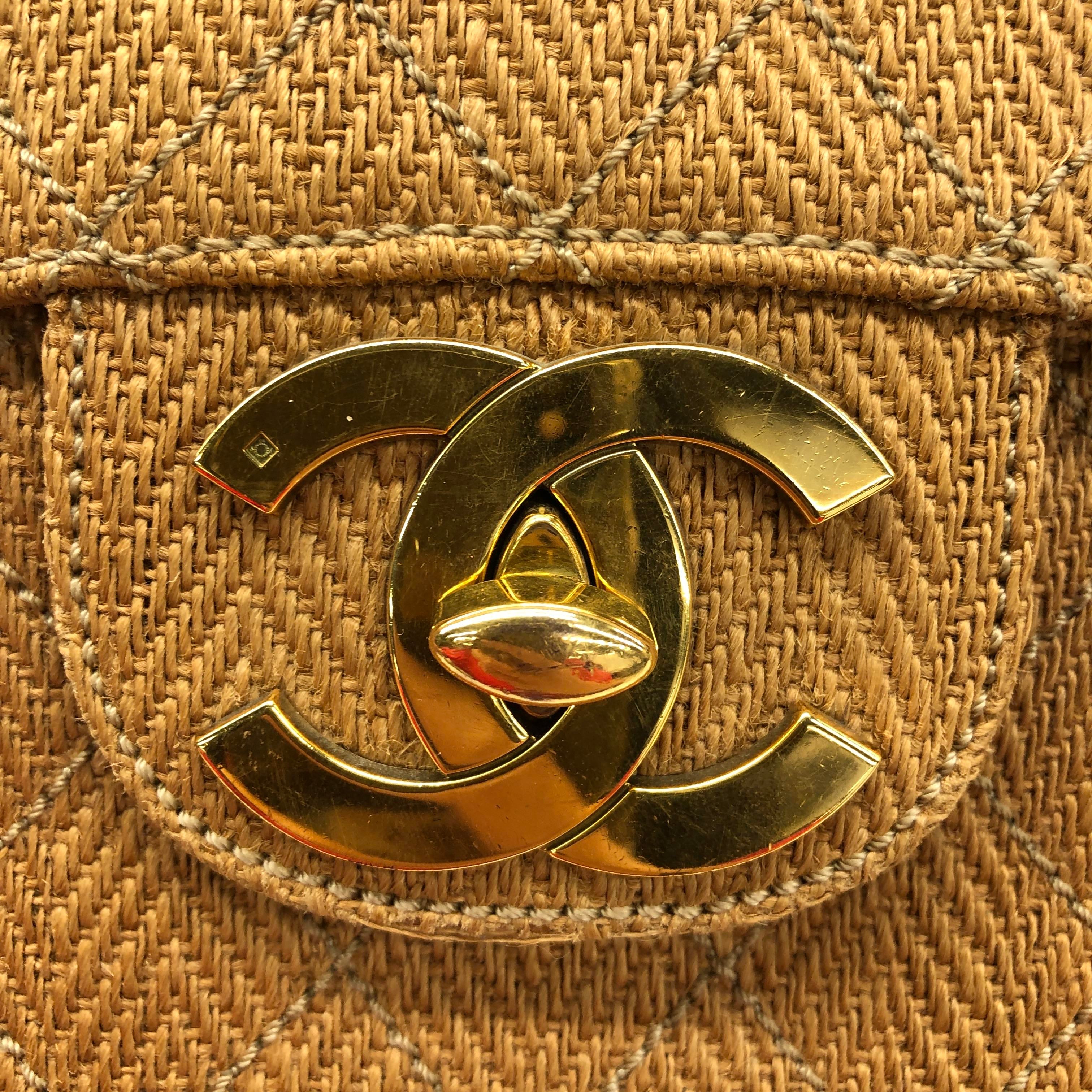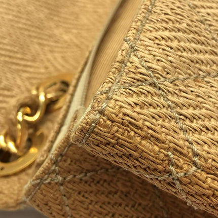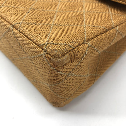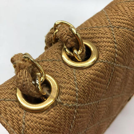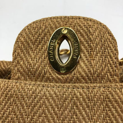 Chanel Vintage Classic Maxi Single Flap Brown Braided Raffia Canvas Diamond Stitch 24 Gold Hardware