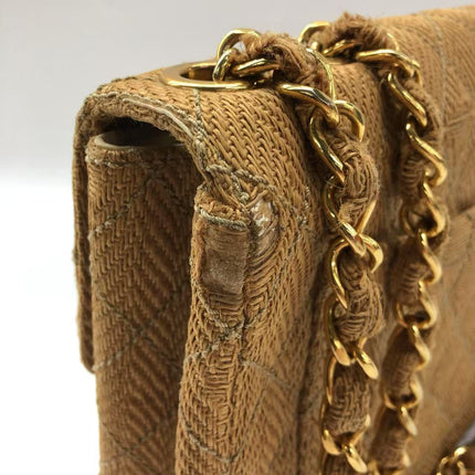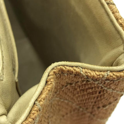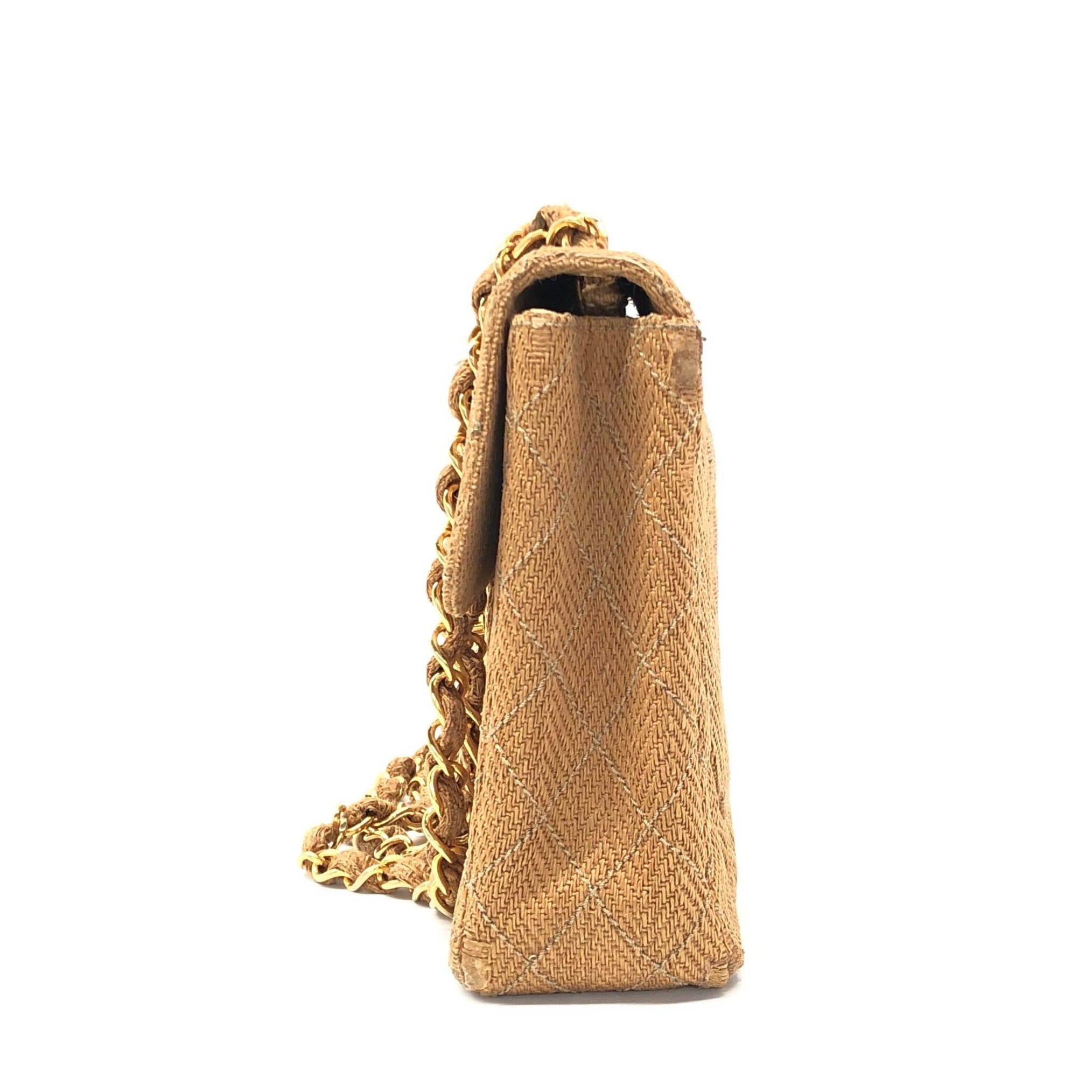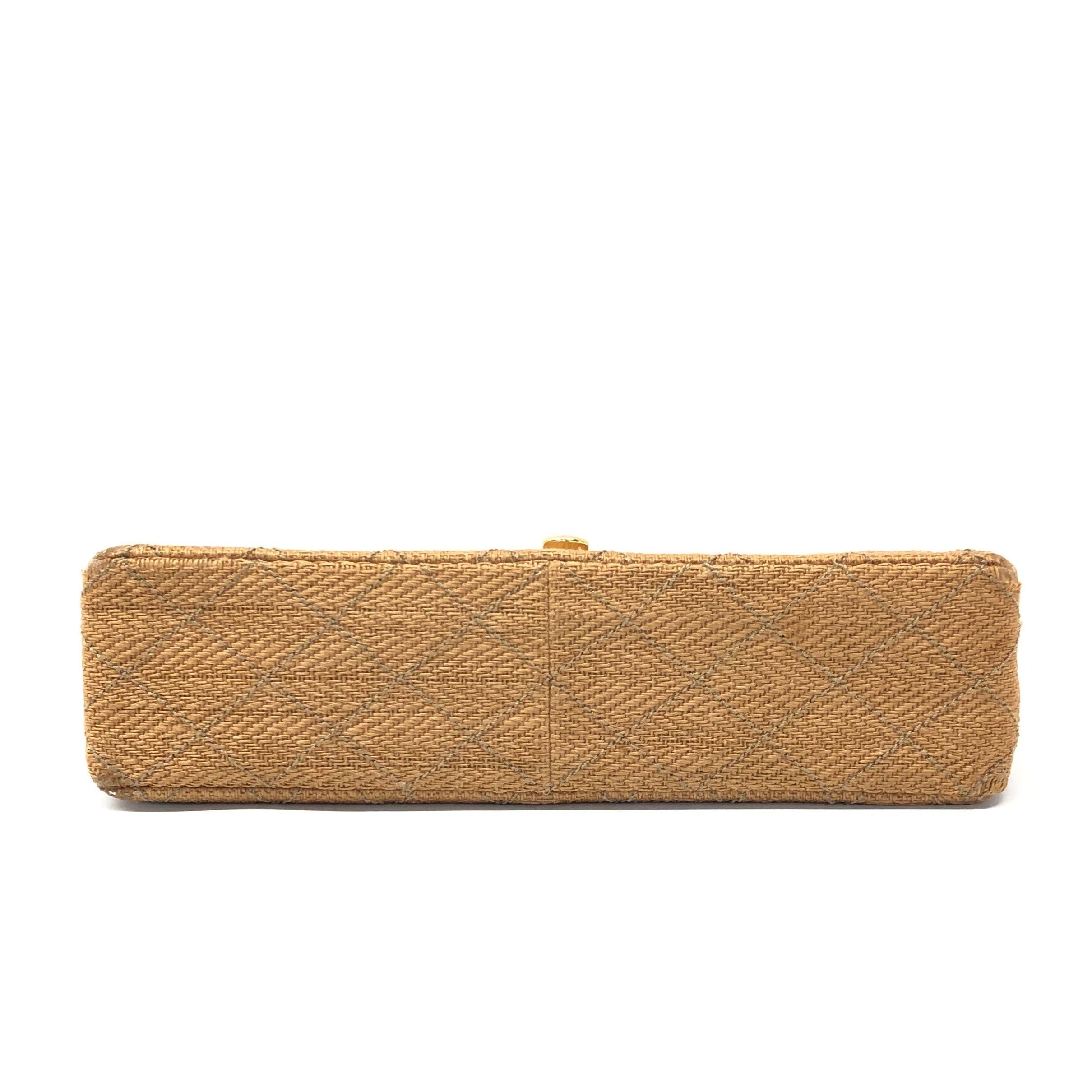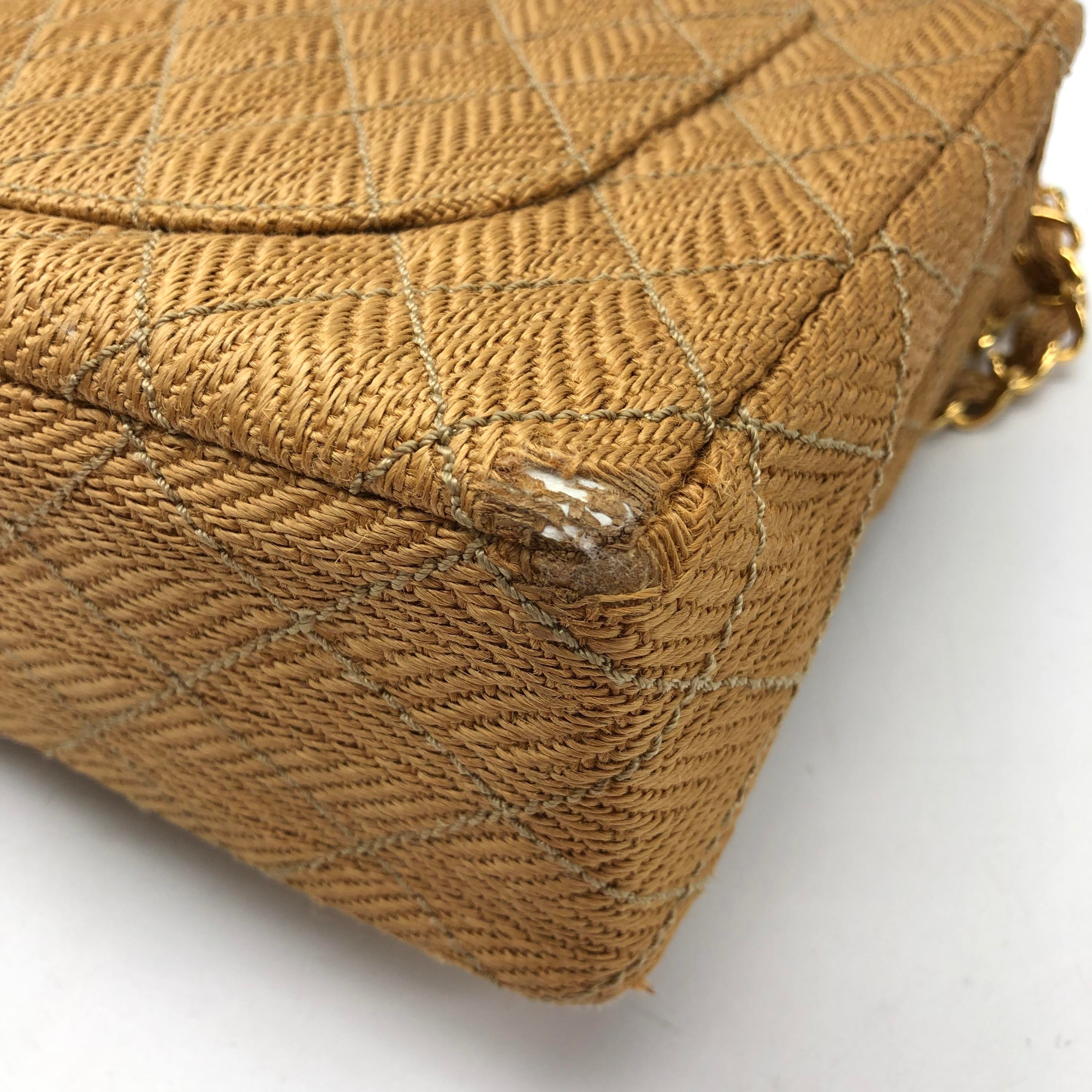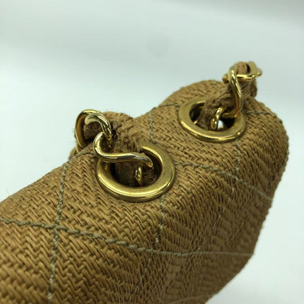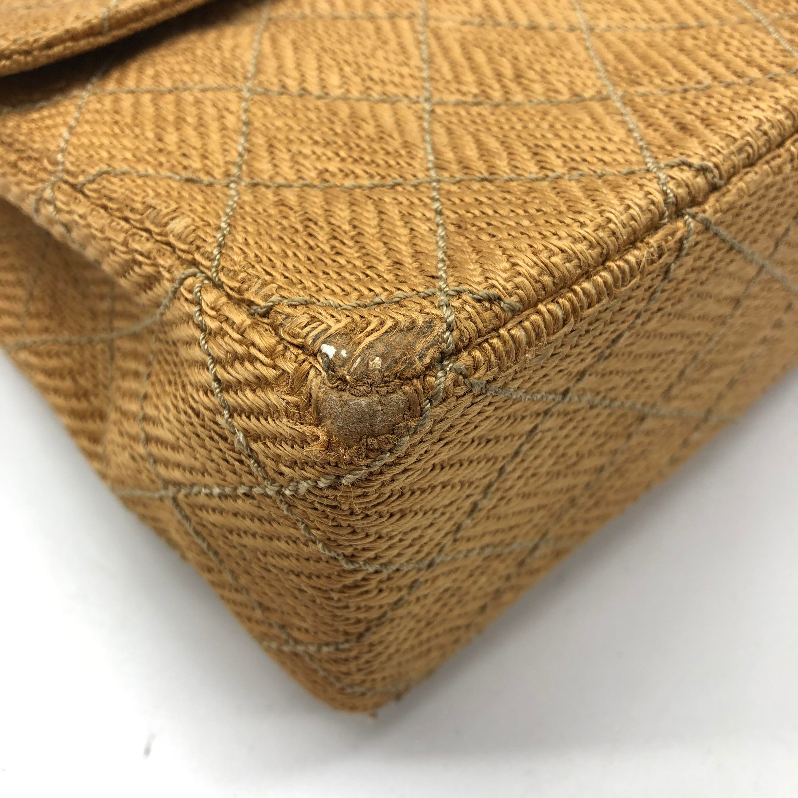 Chanel Vintage Classic Maxi Single Flap Brown Braided Raffia Canvas Diamond Stitch 24 Gold Hardware