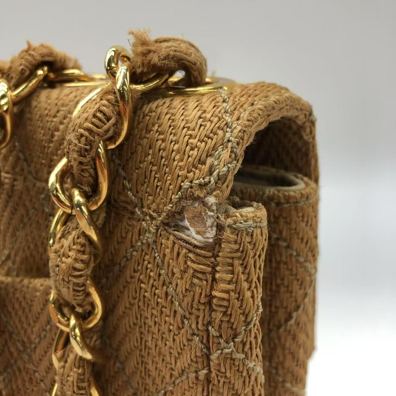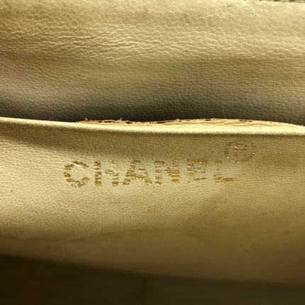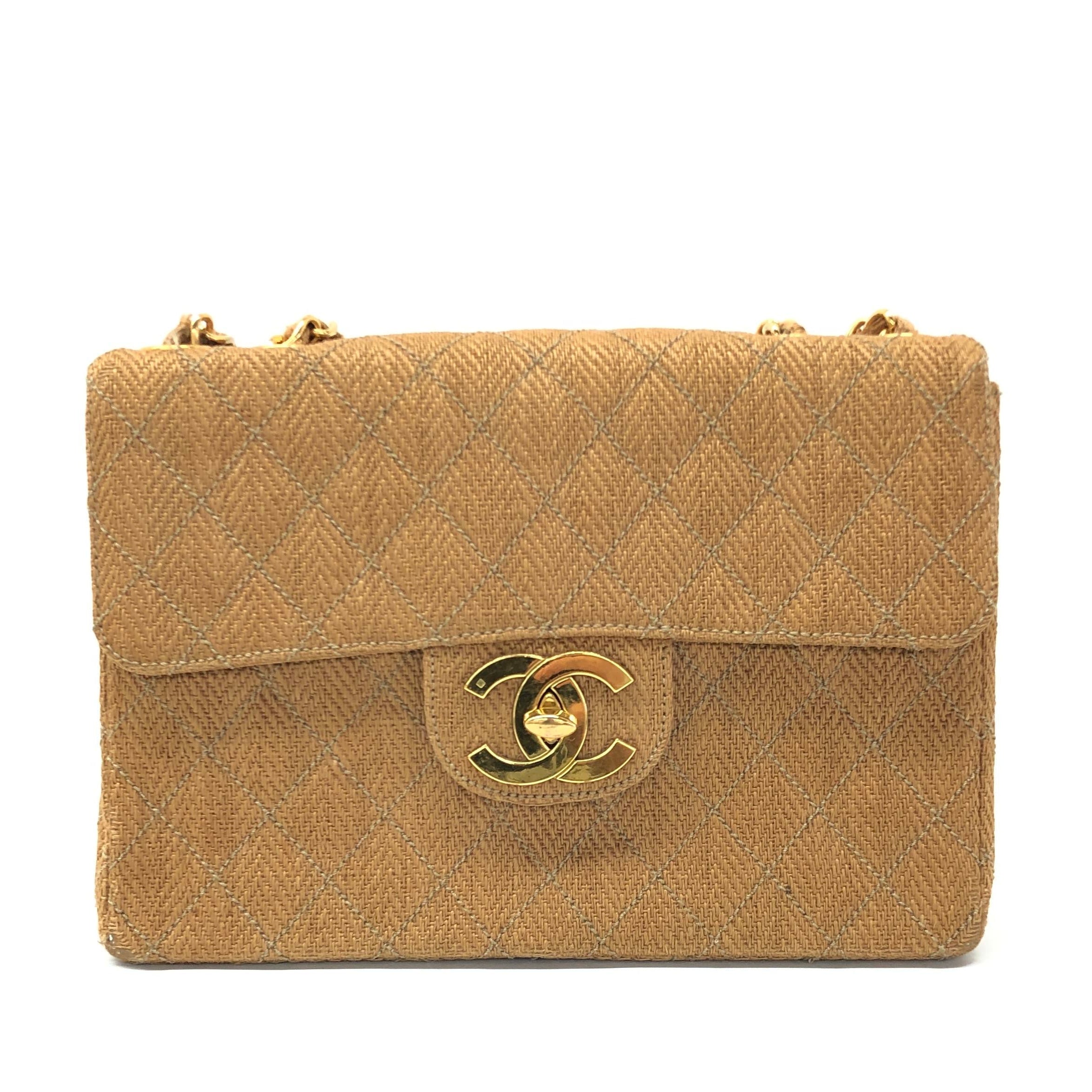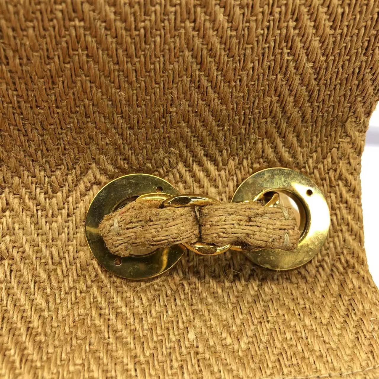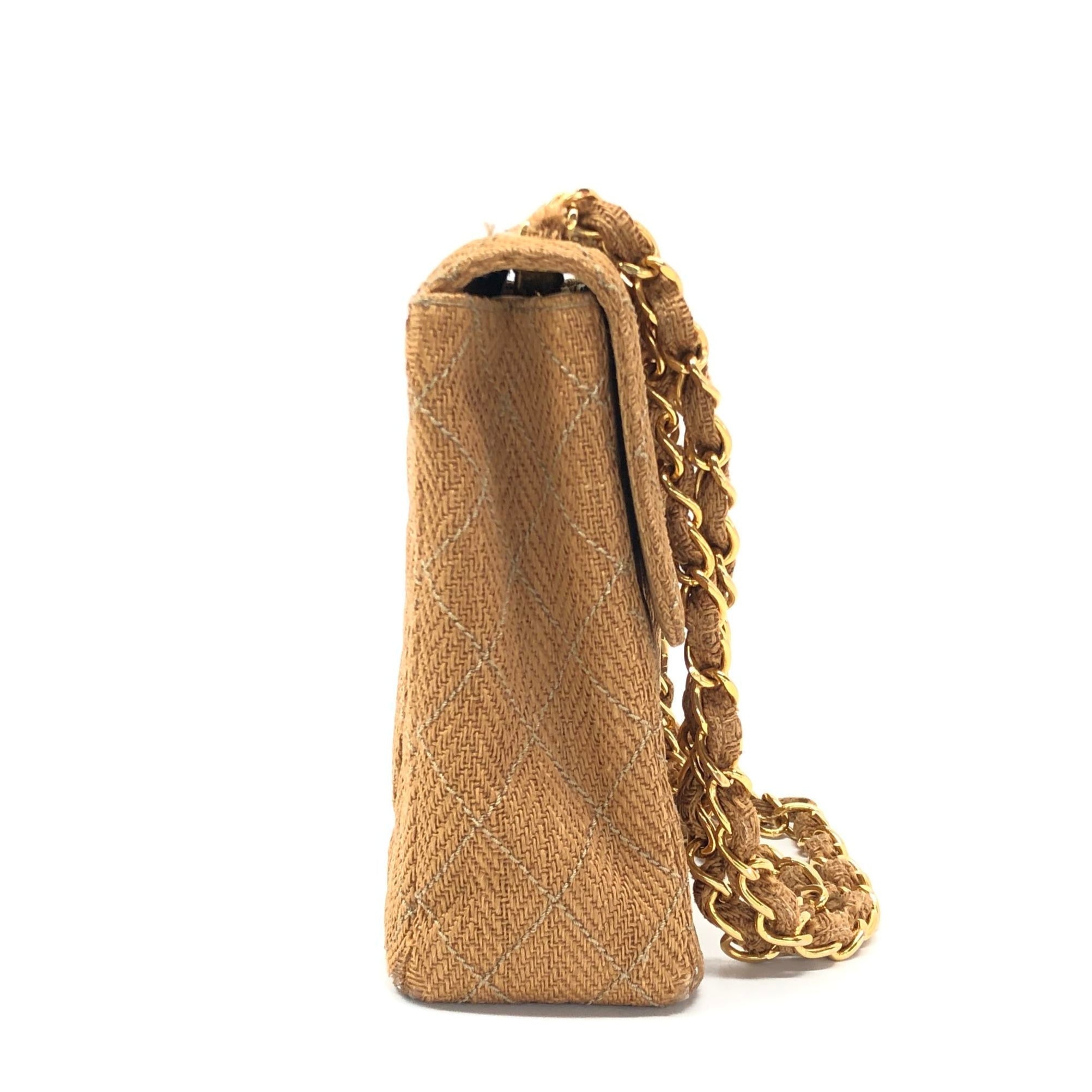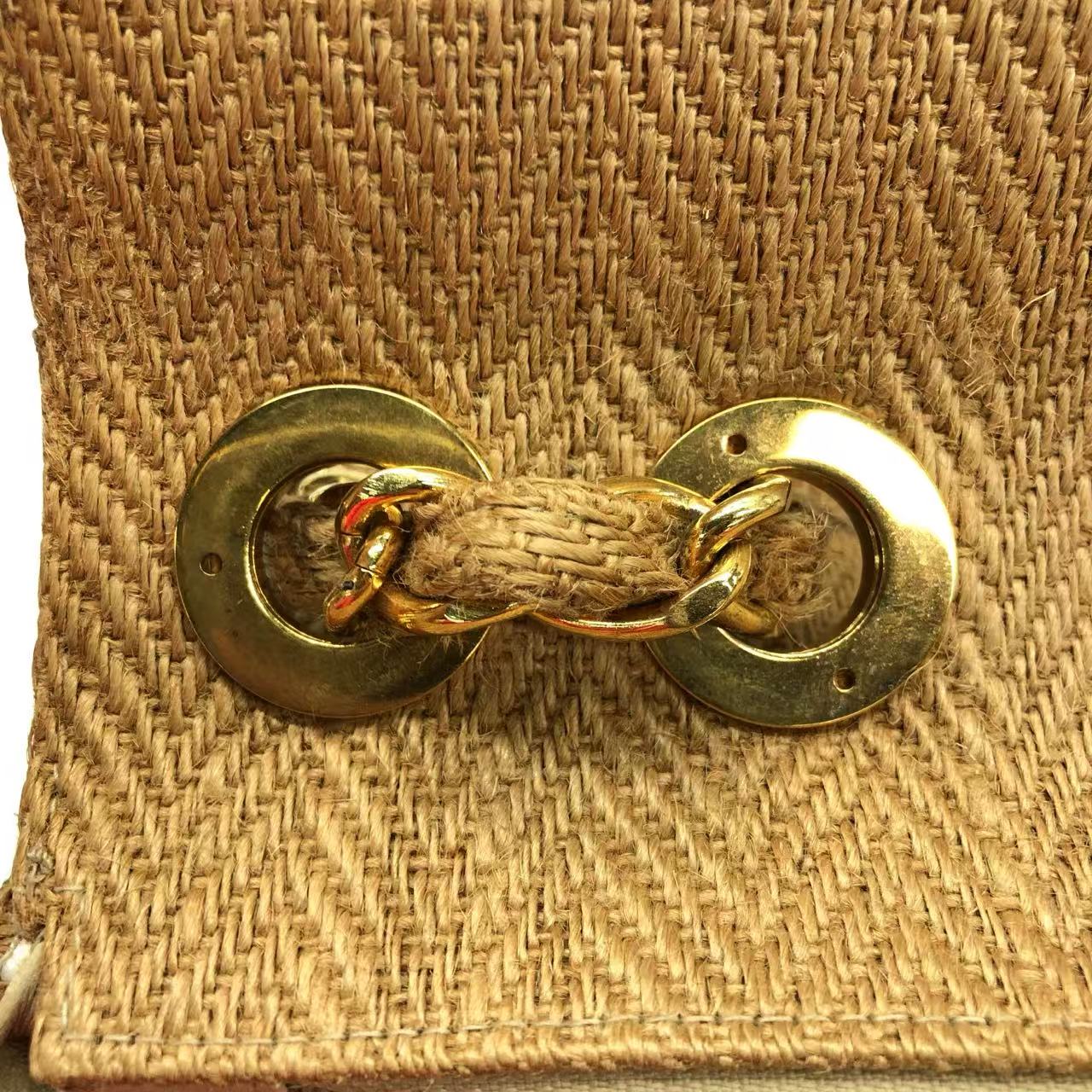 Chanel Vintage Classic Maxi Single Flap Brown Braided Raffia Canvas Diamond Stitch 24 Gold Hardware