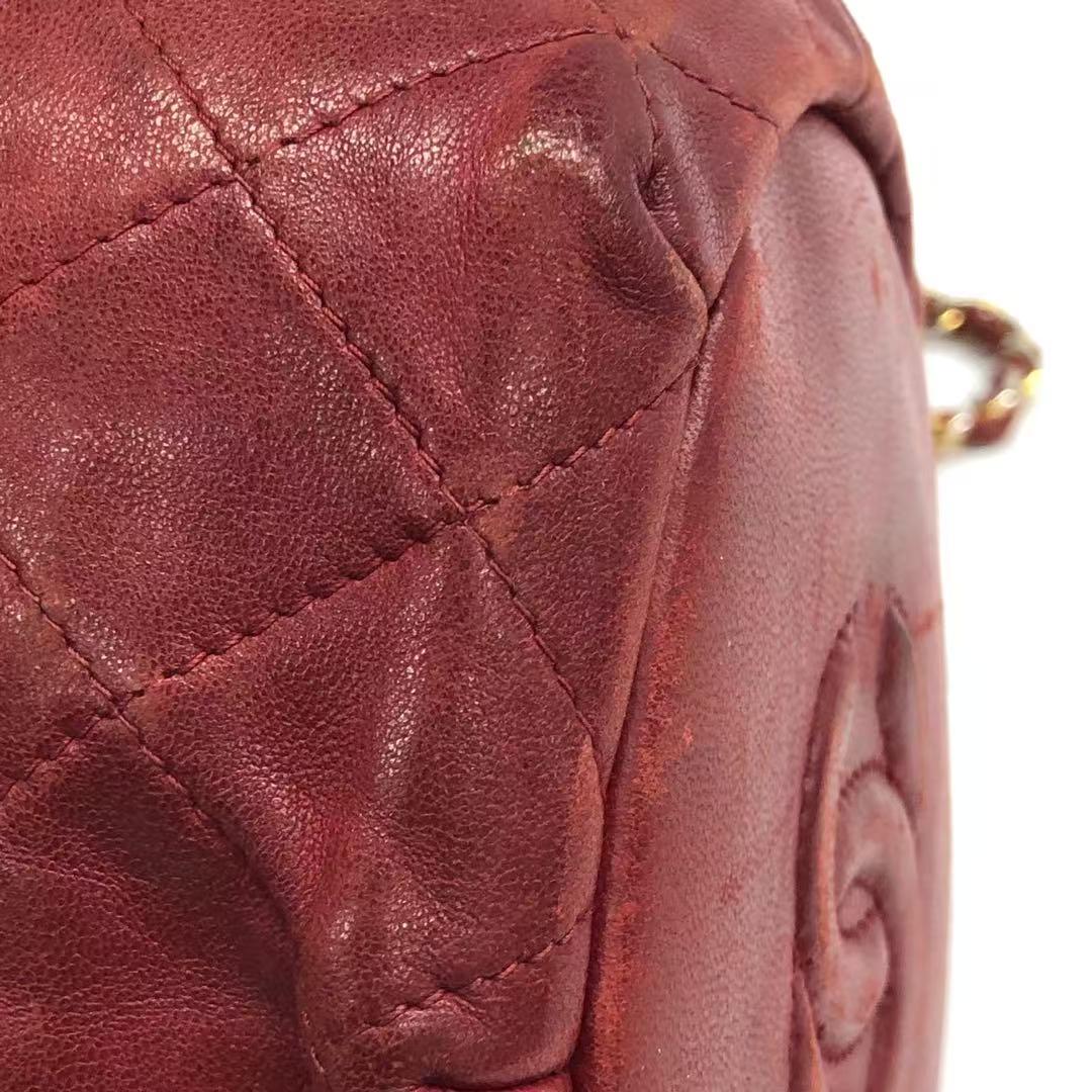 Chanel Vintage Drawstring Mini Bucket Bag Red Lambskin Matelasse
