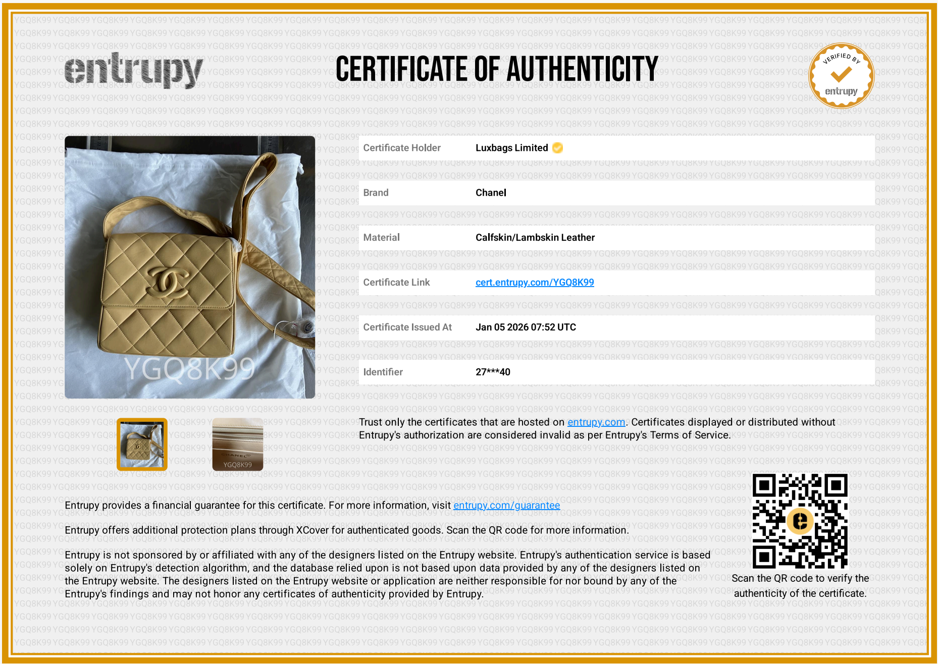 Luxbags is committed to your satisfaction and peace of mind with every purchase. Every bag comes with a certificate of authenticity.