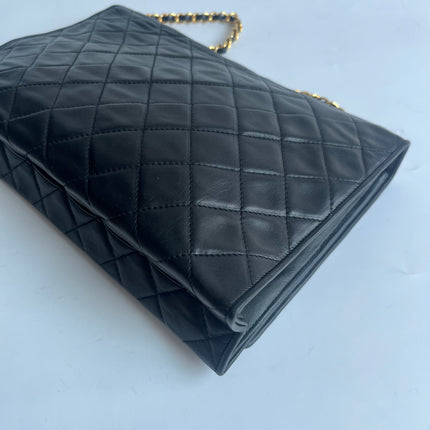 Chanel Vintage Flapbag With Gold Logo Closure Black Lambskin Leather