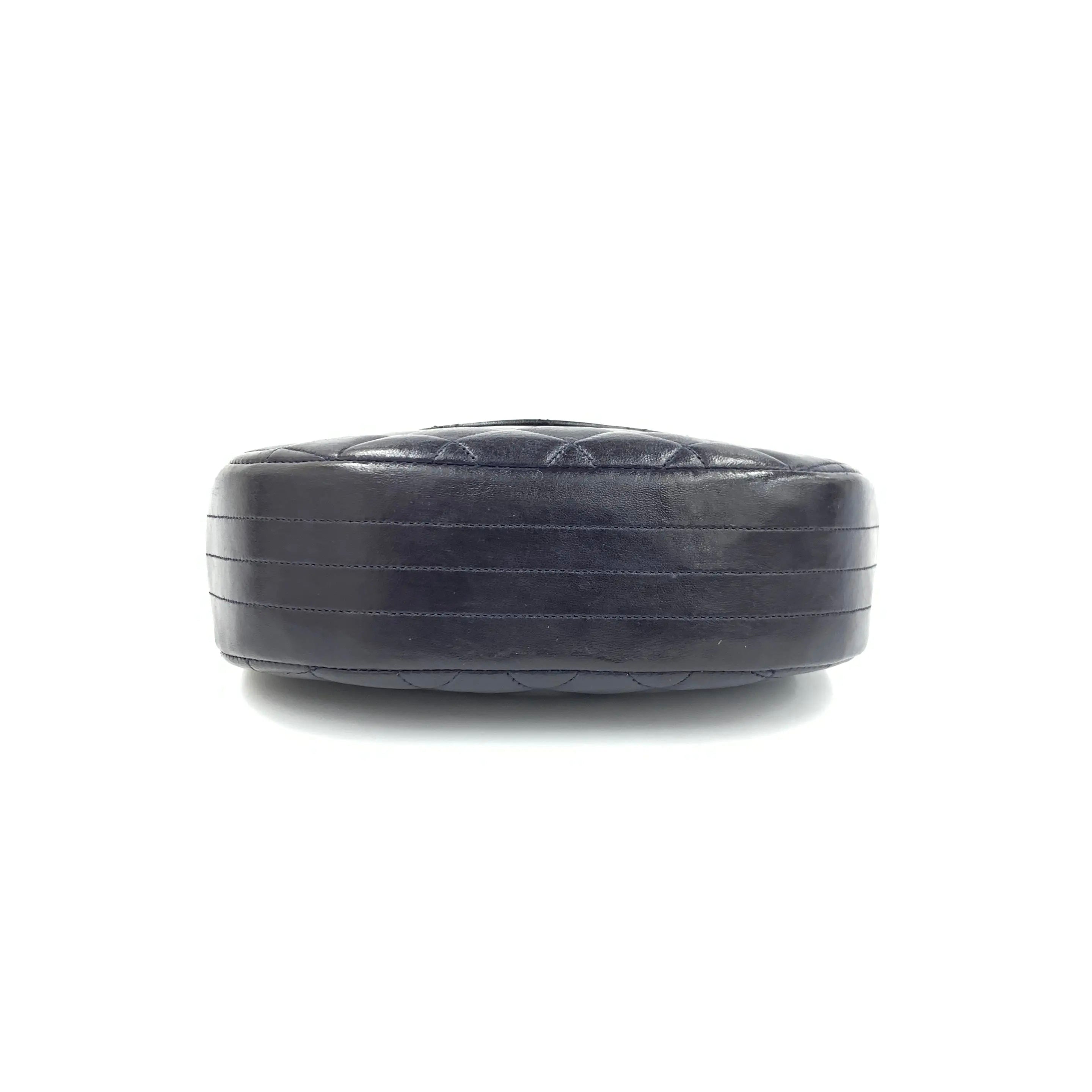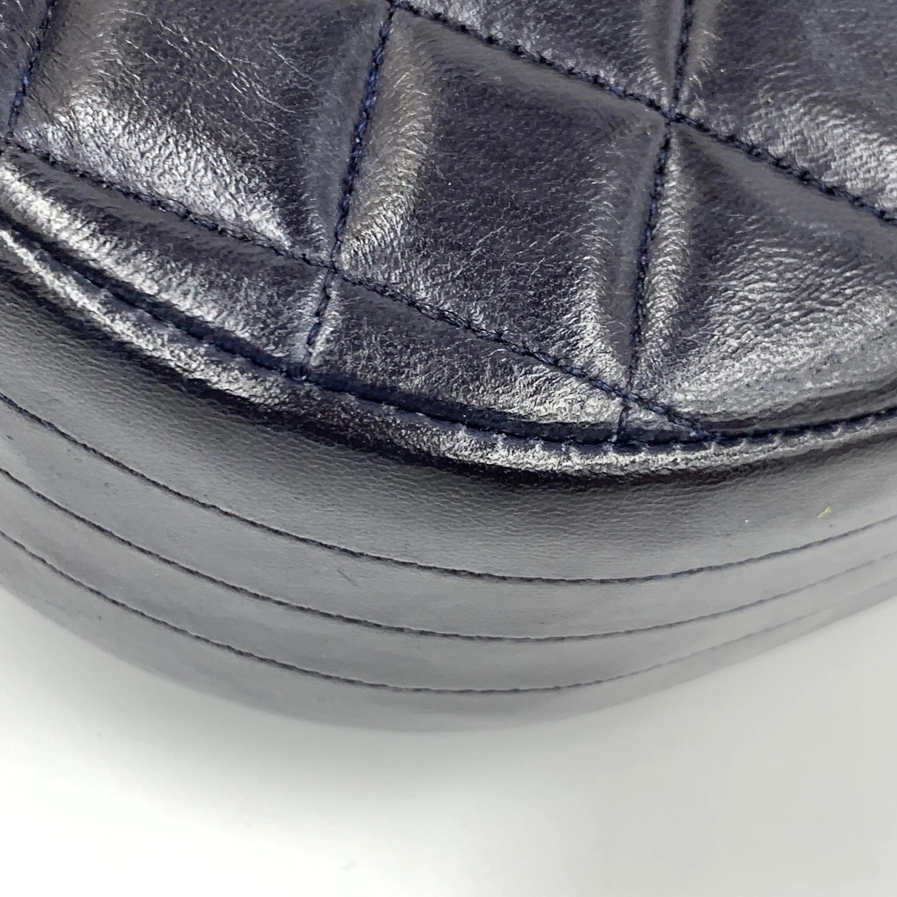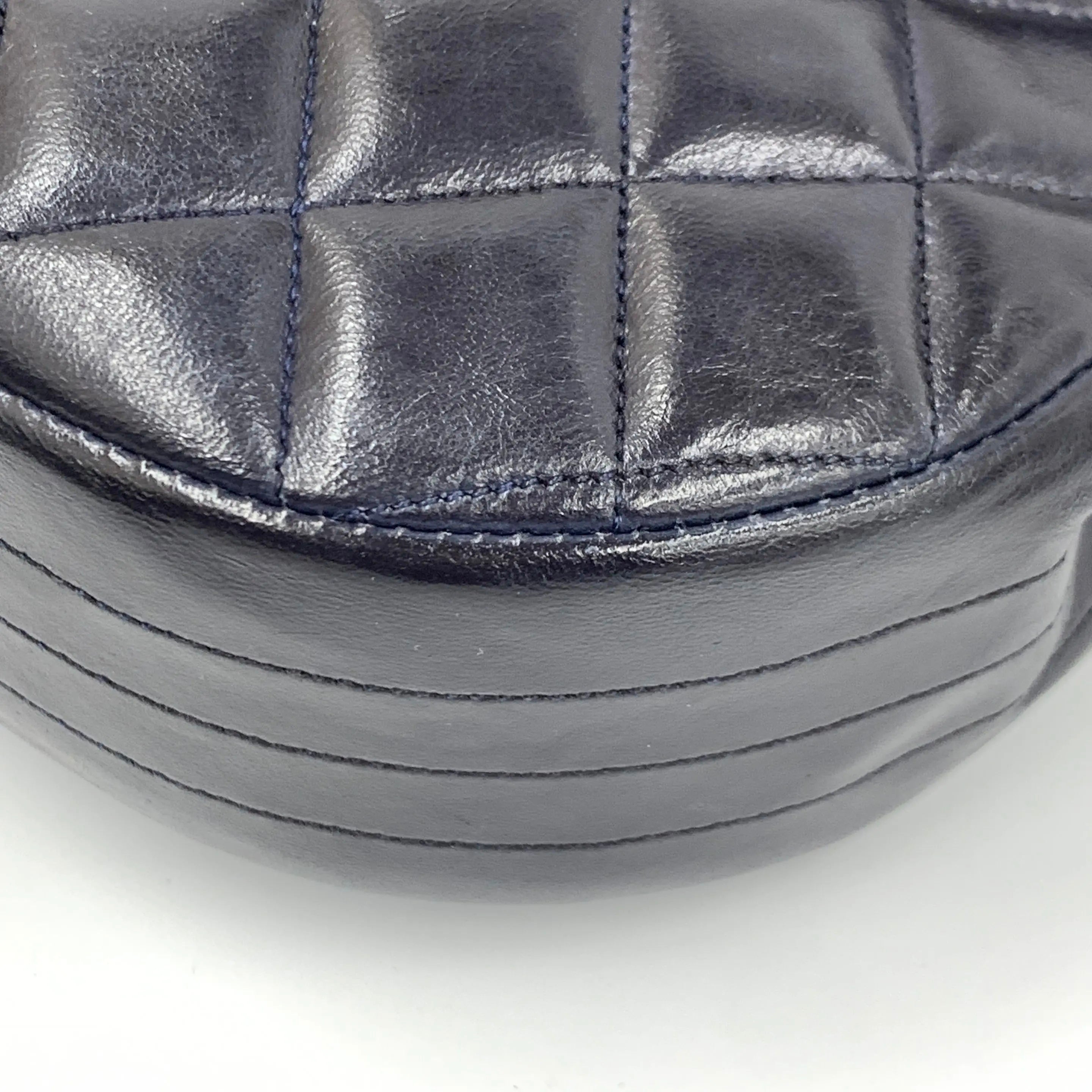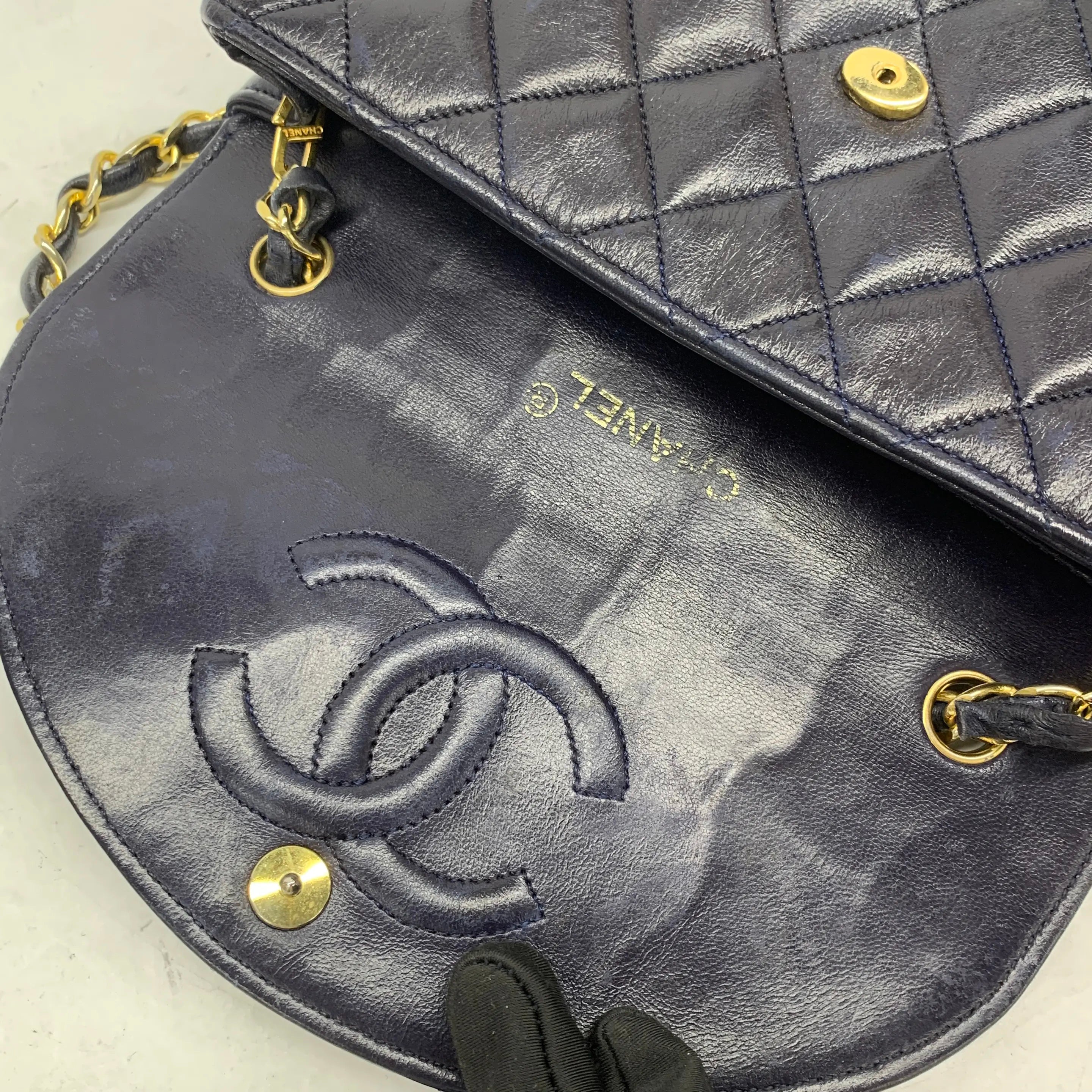 Chanel Vintage Half Moon Flap Bag Navy Lambskin Leather Mega Gold Hardware 1989-1991