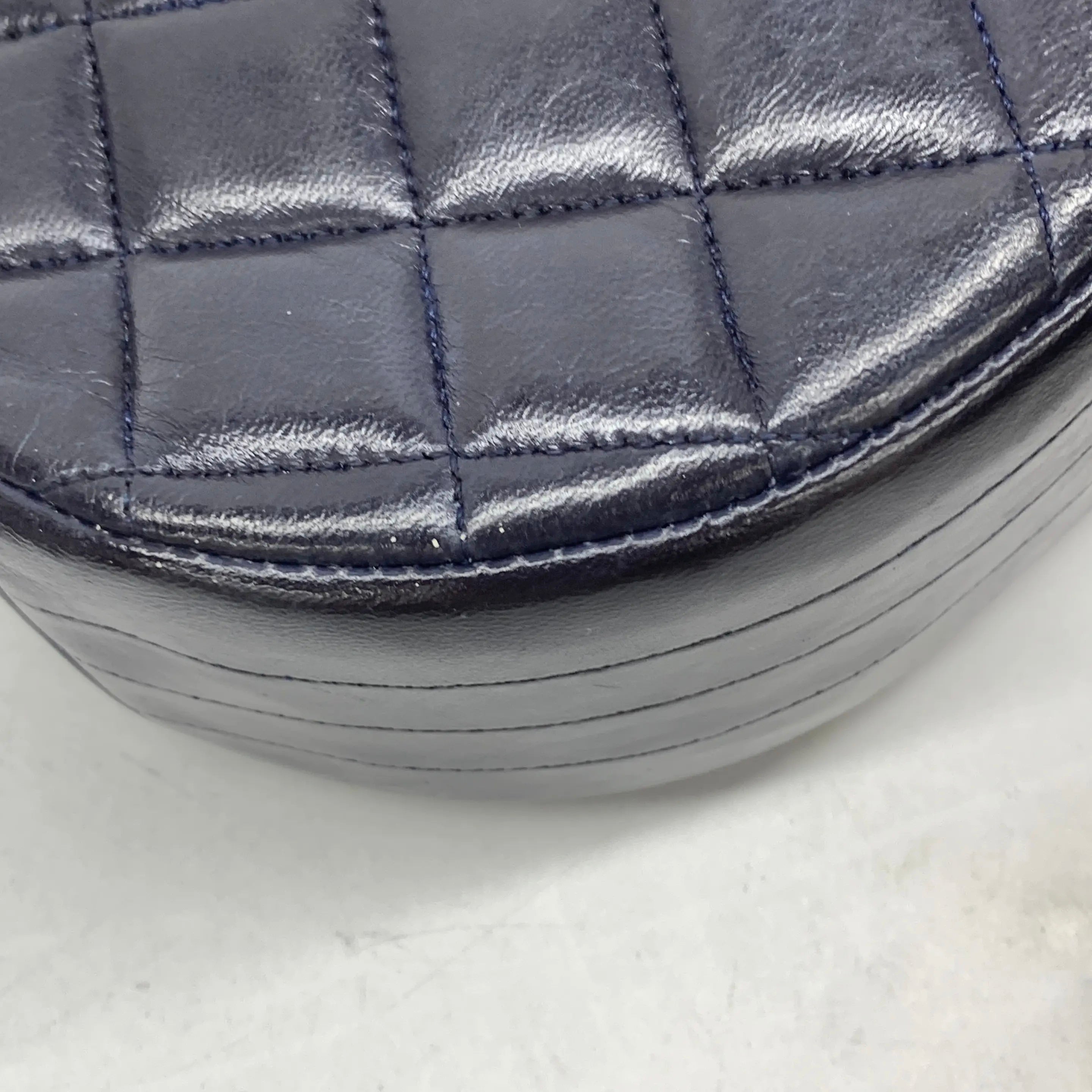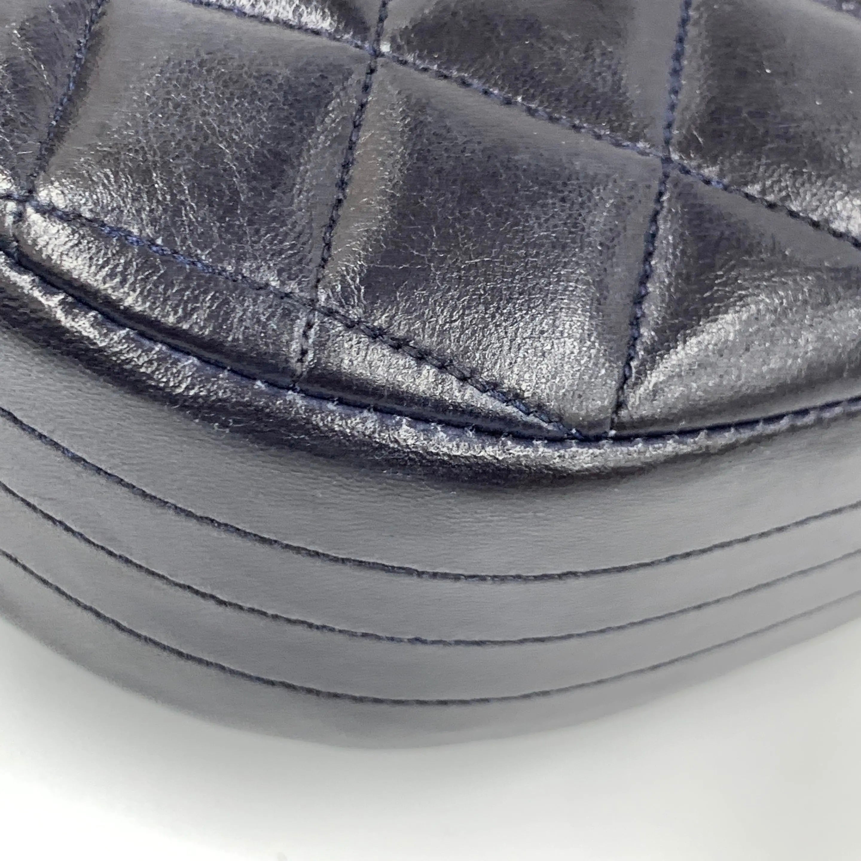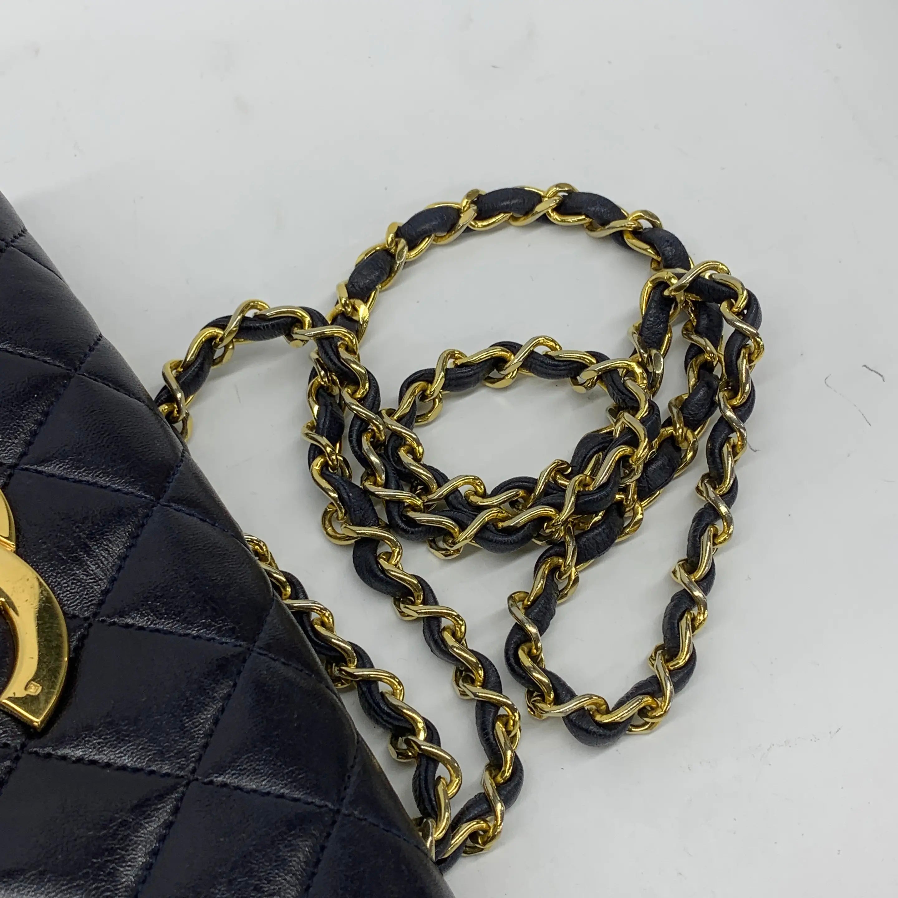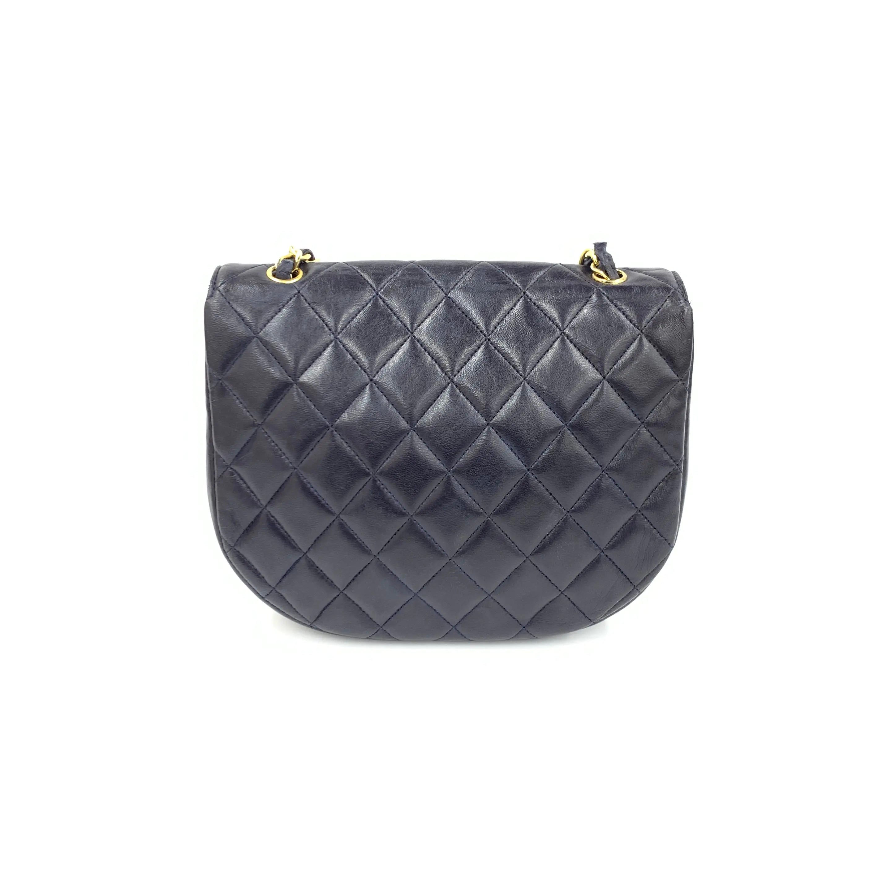 Chanel Vintage Half Moon Flap Bag Navy Lambskin Leather Mega Gold Hardware 1989-1991