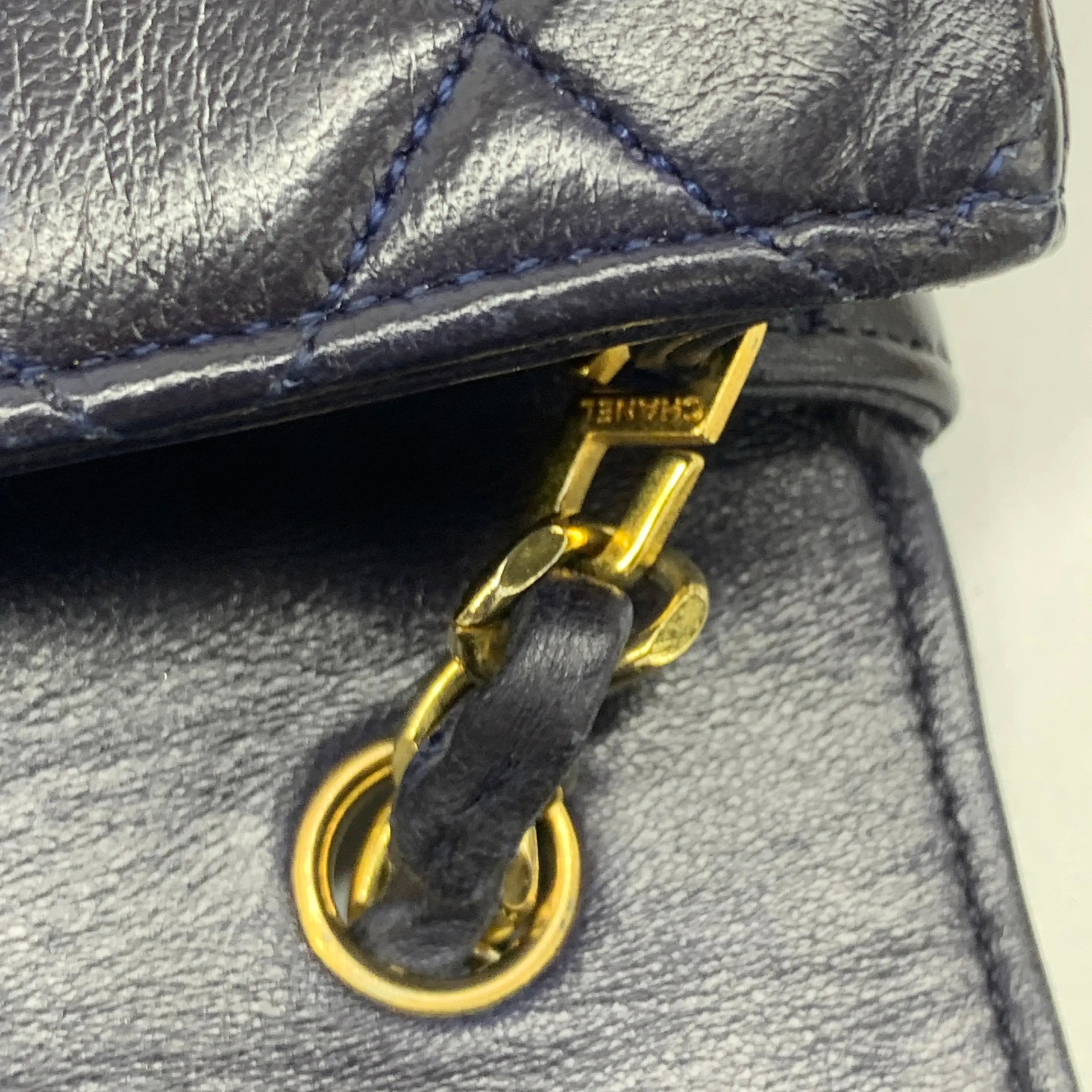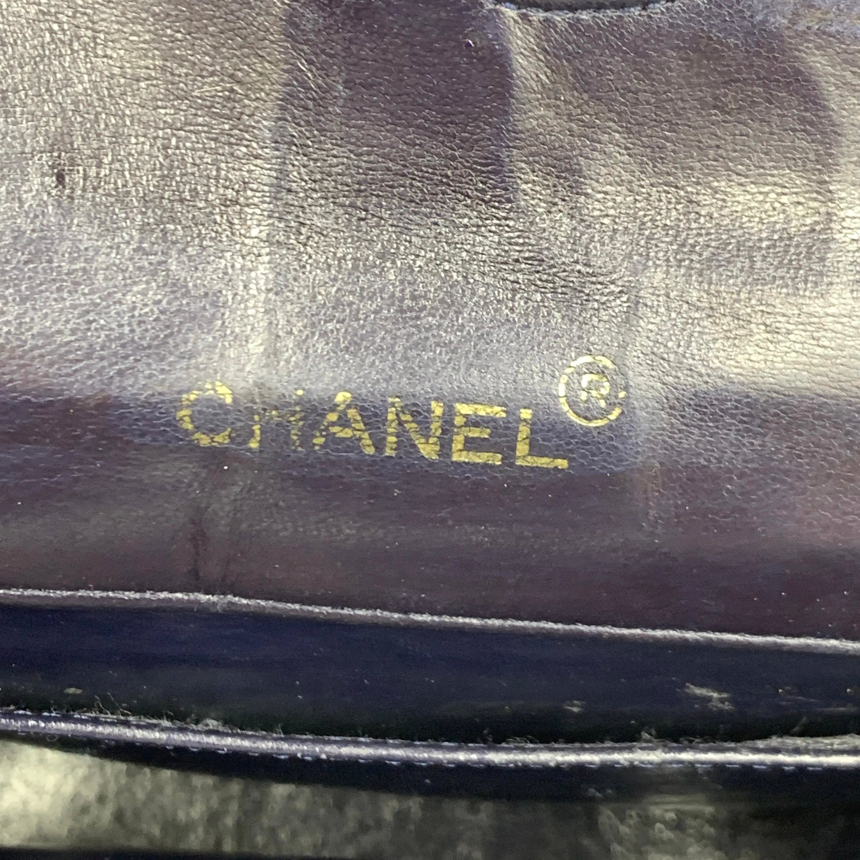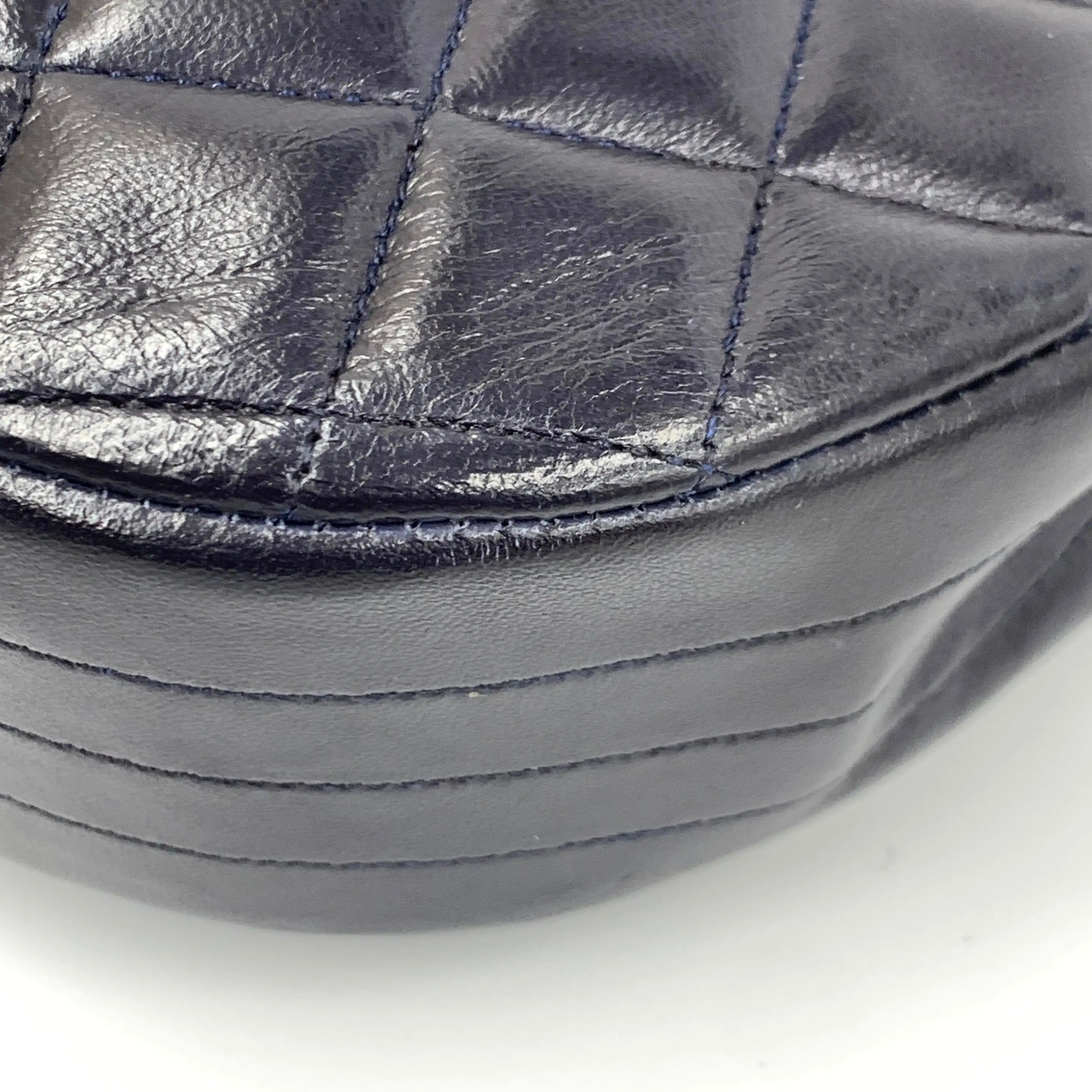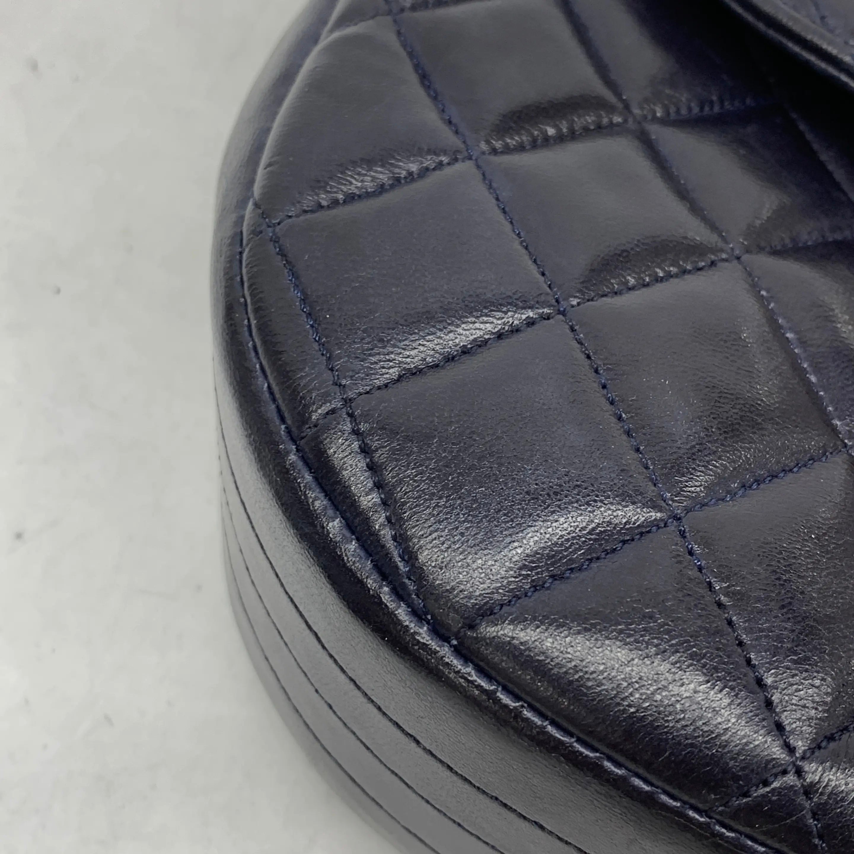 Chanel Vintage Half Moon Flap Bag Navy Lambskin Leather Mega Gold Hardware 1989-1991