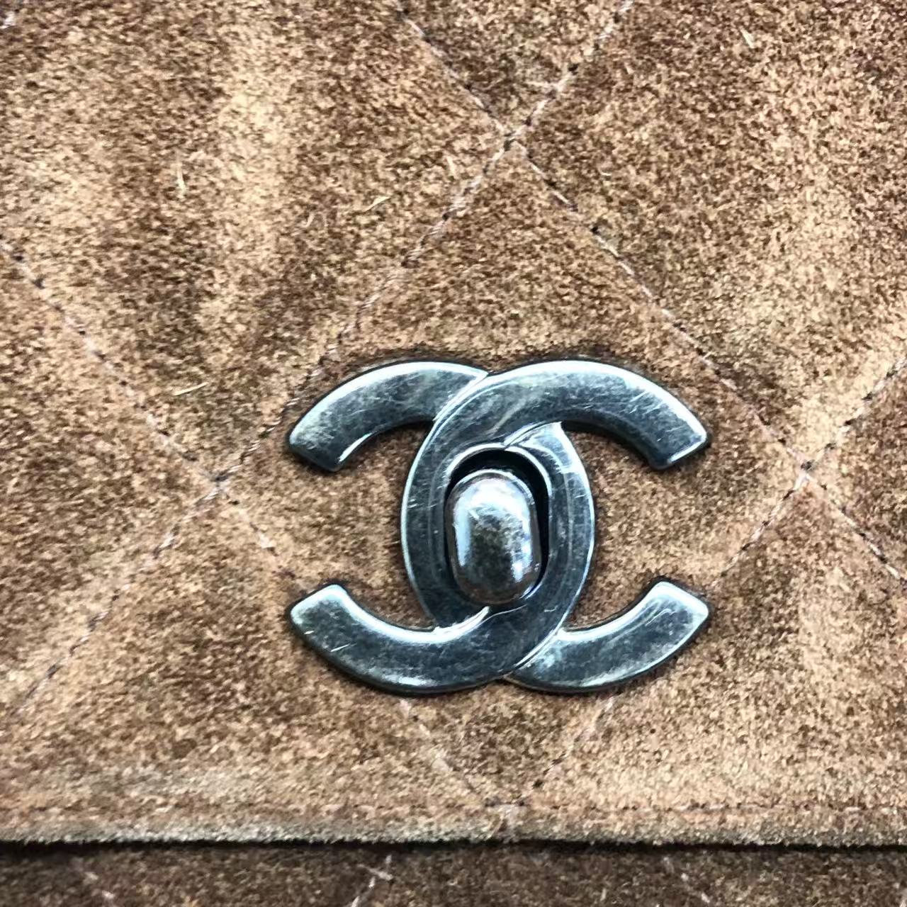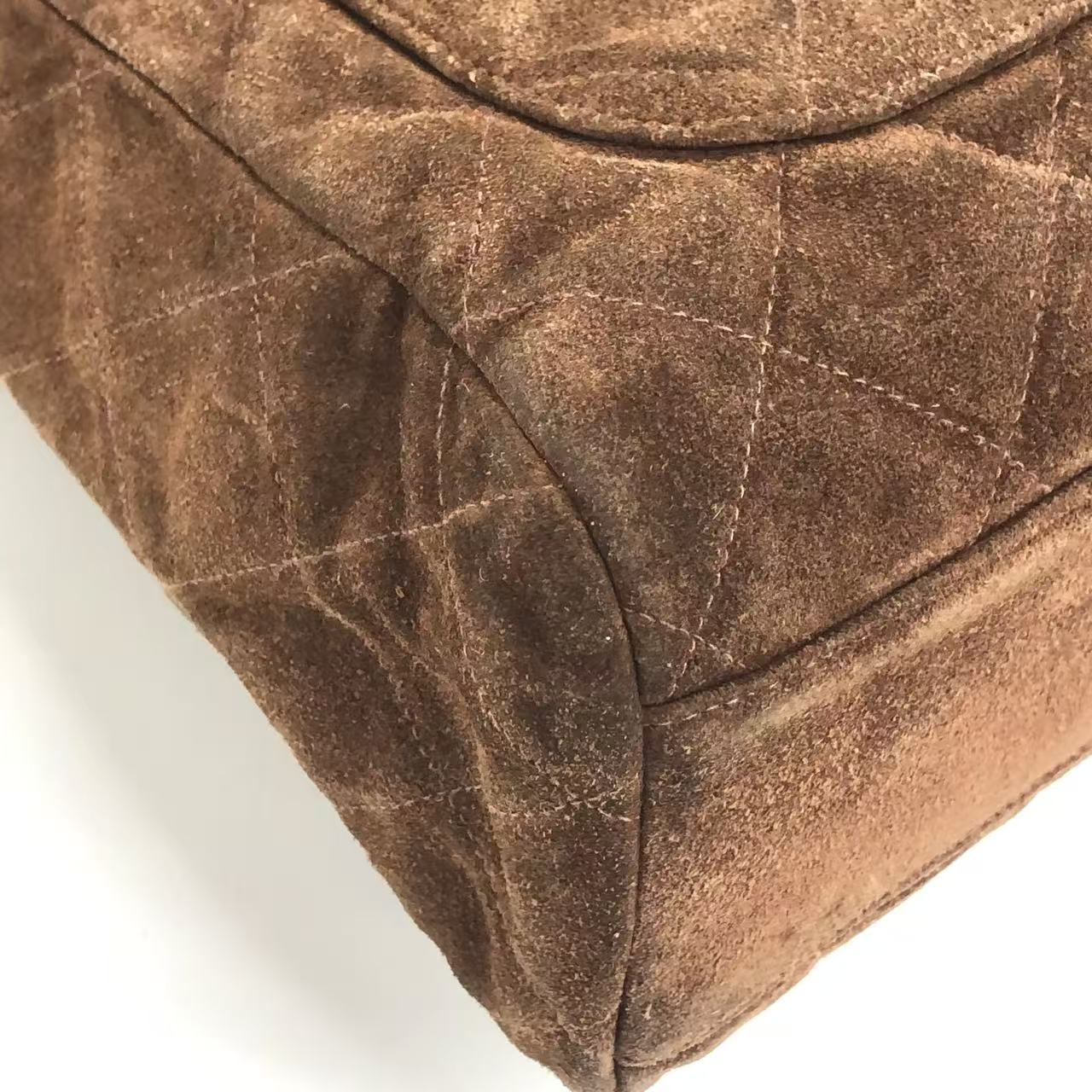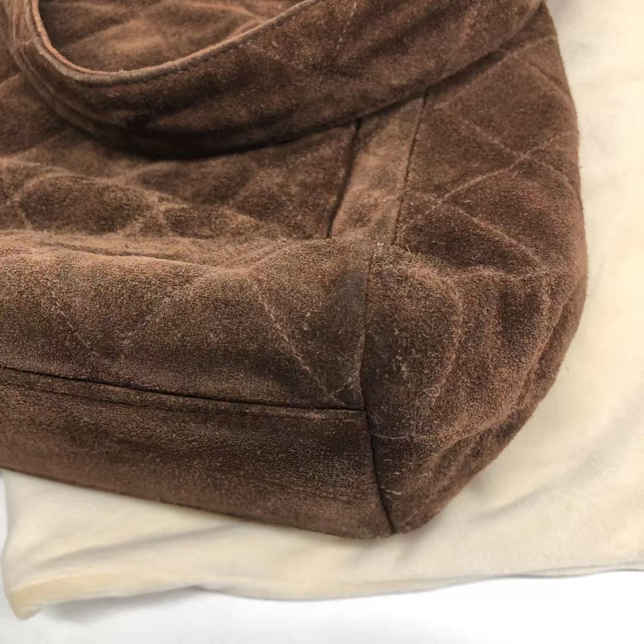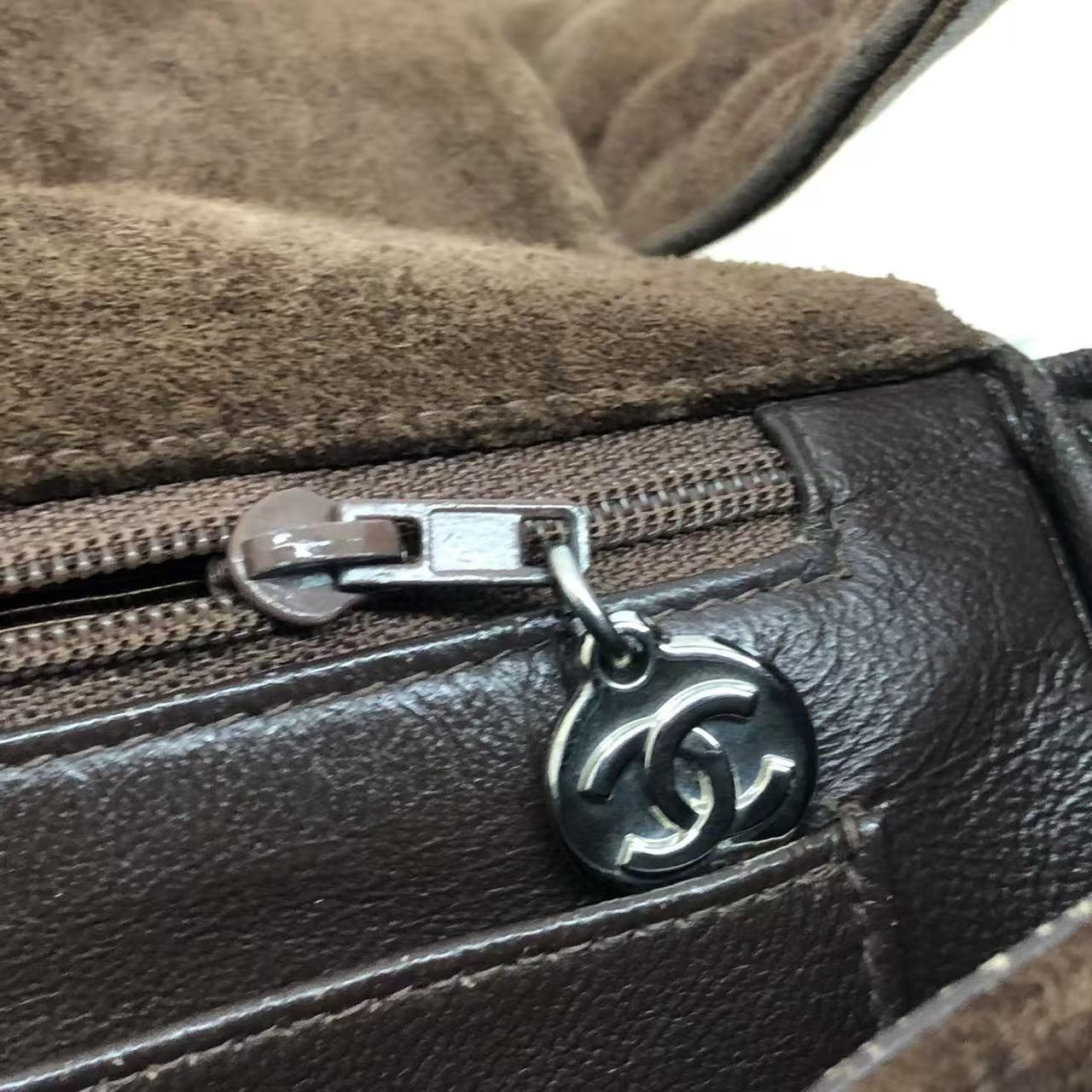 Chanel Vintage Kelly Brown Suede Leather Shoulder Bag Silver Hardware, 1996-1997