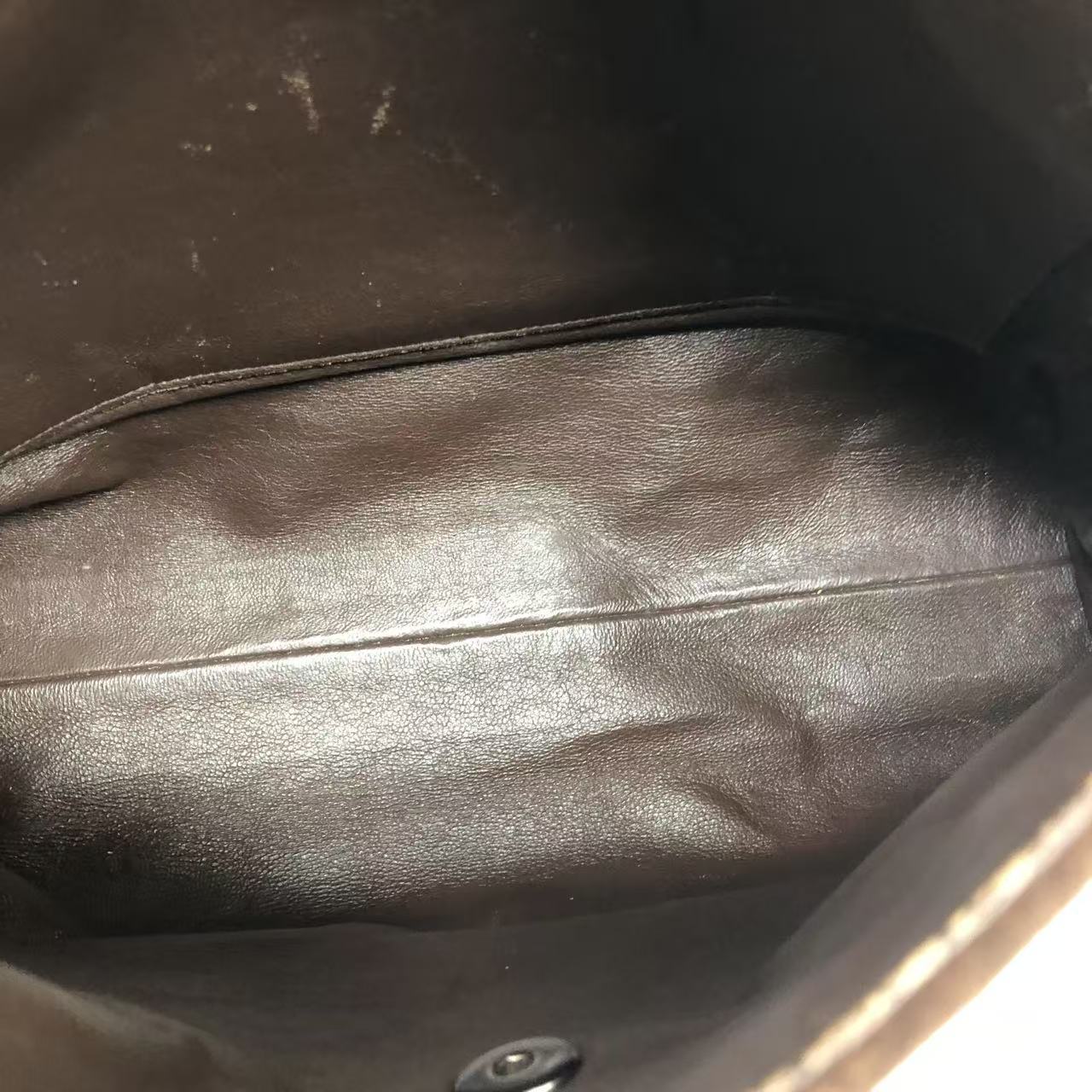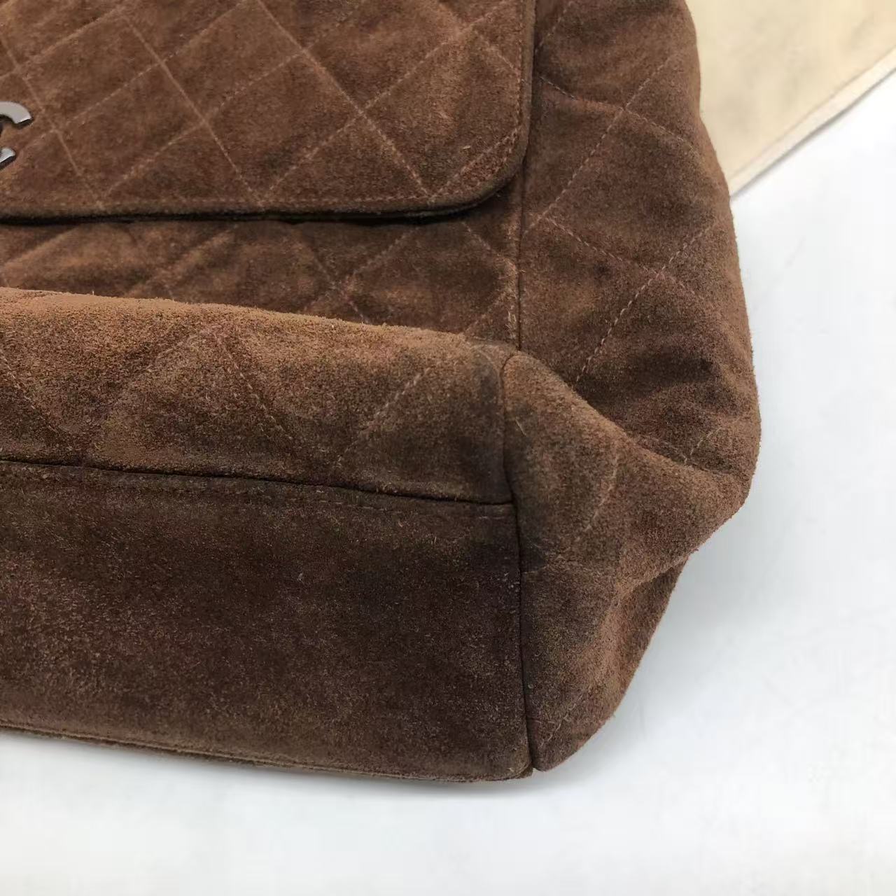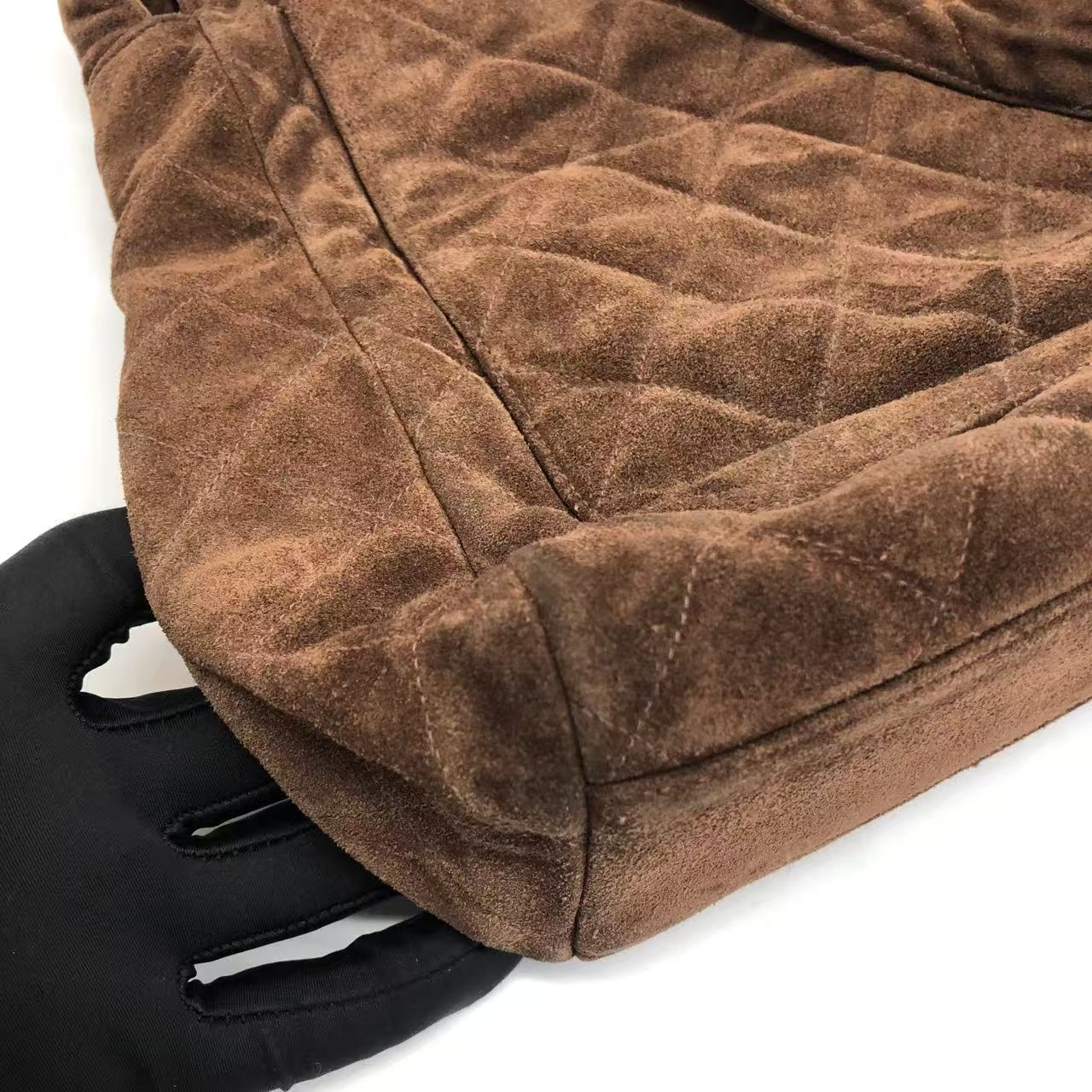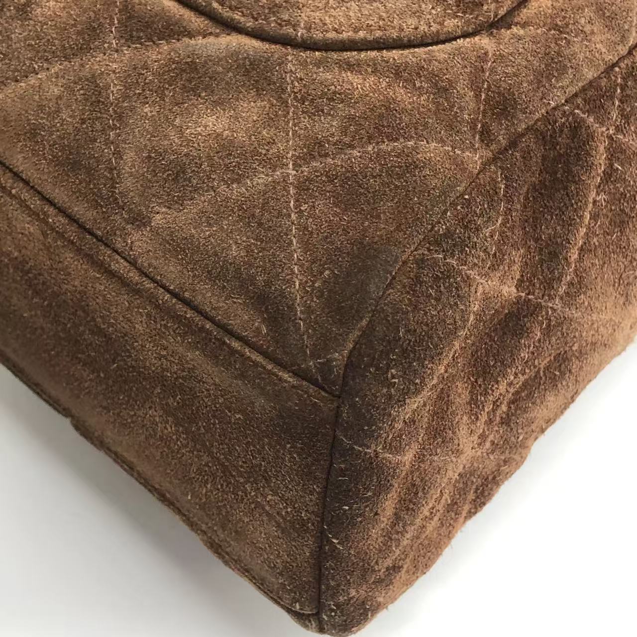 Chanel Vintage Kelly Brown Suede Leather Shoulder Bag Silver Hardware, 1996-1997