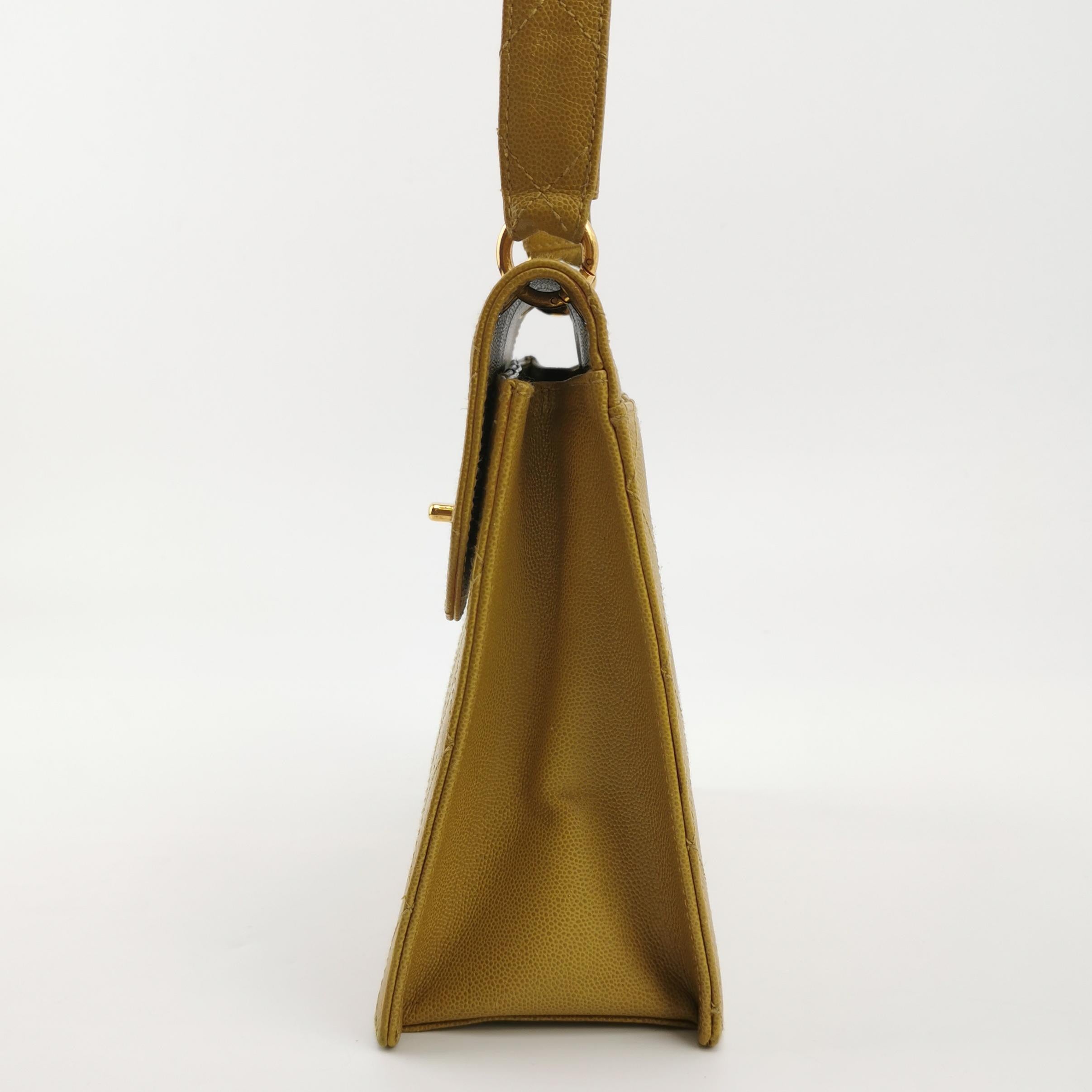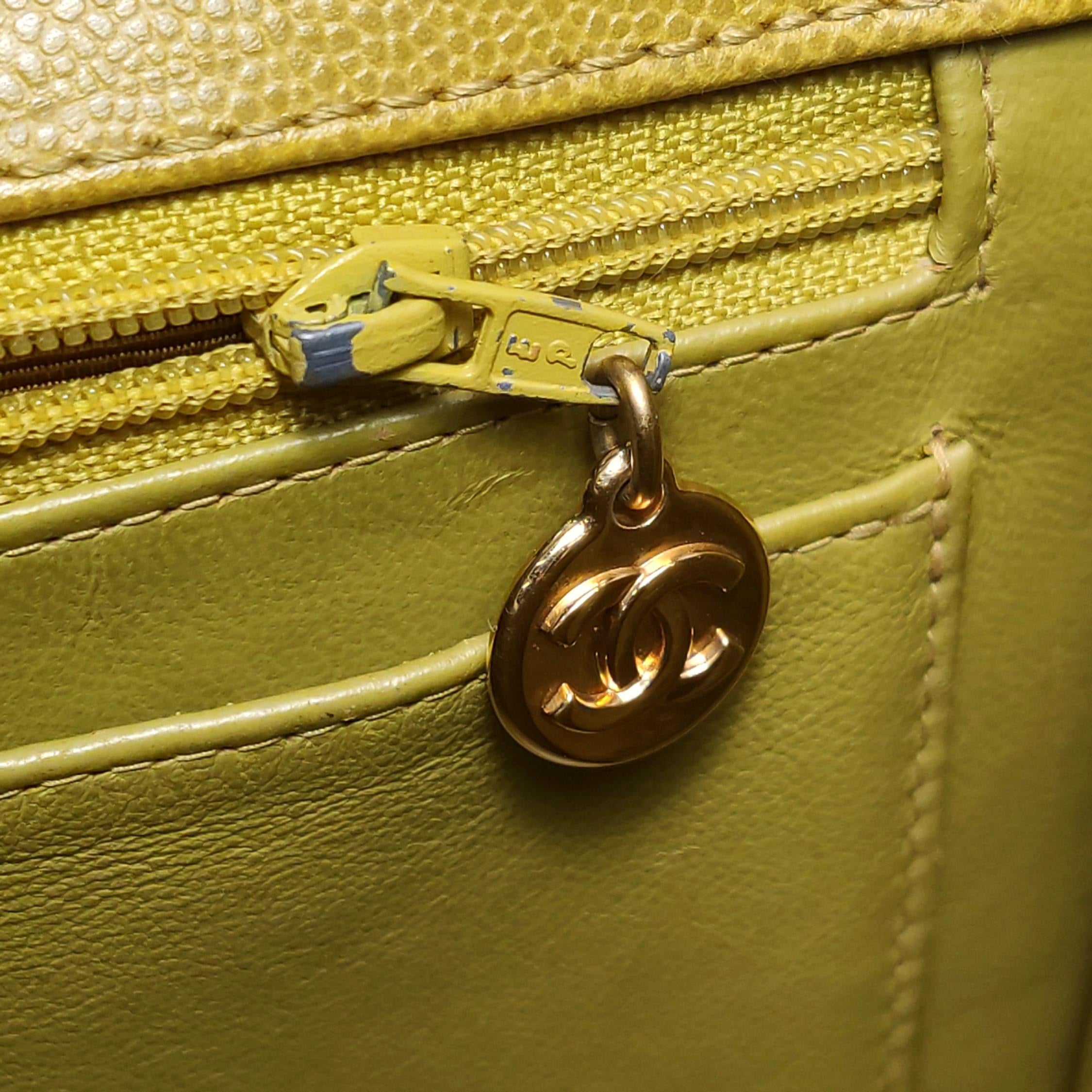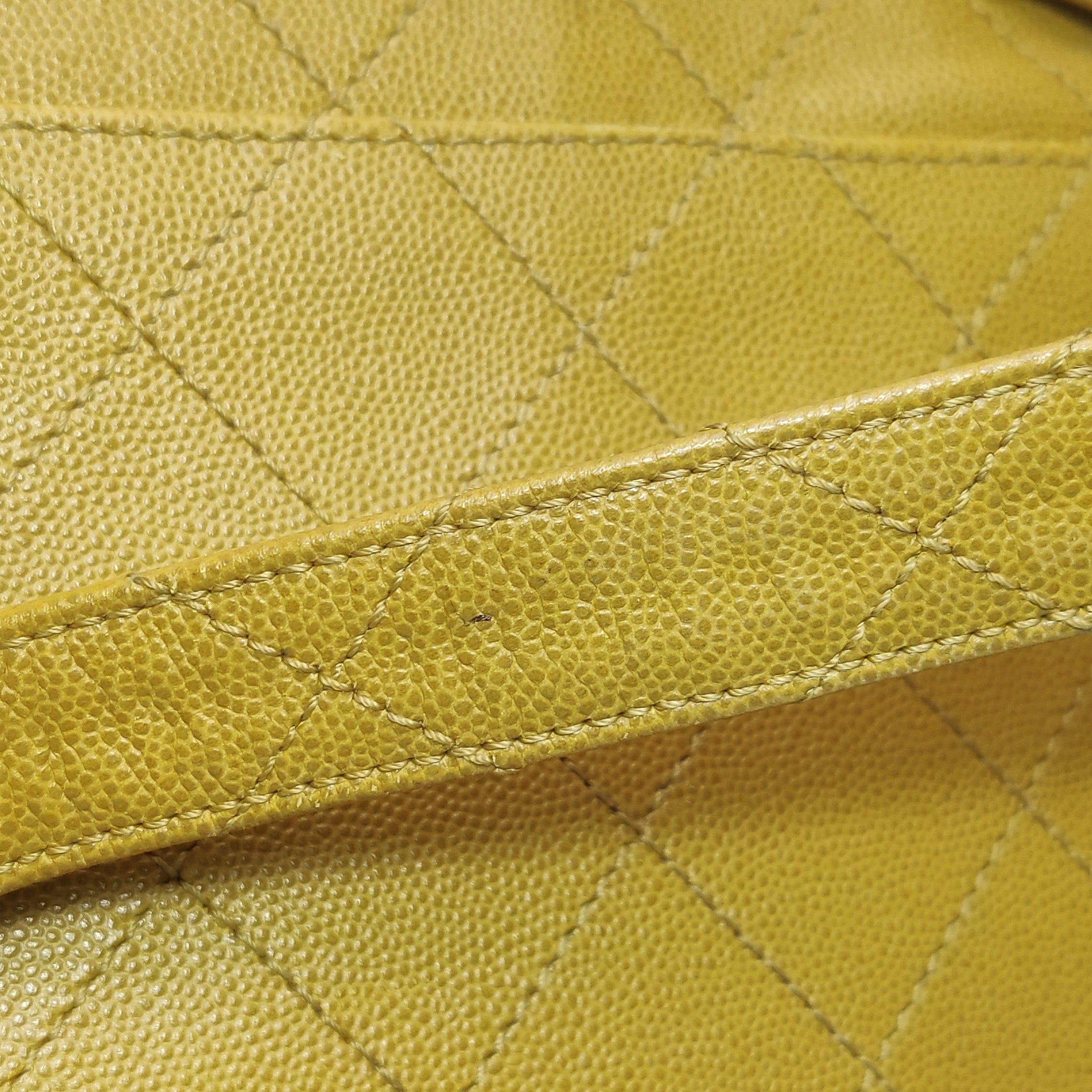 Chanel Vintage Kelly Flap Bag Yellow Caviar Leather 24k Gold Hardware 1997-1999