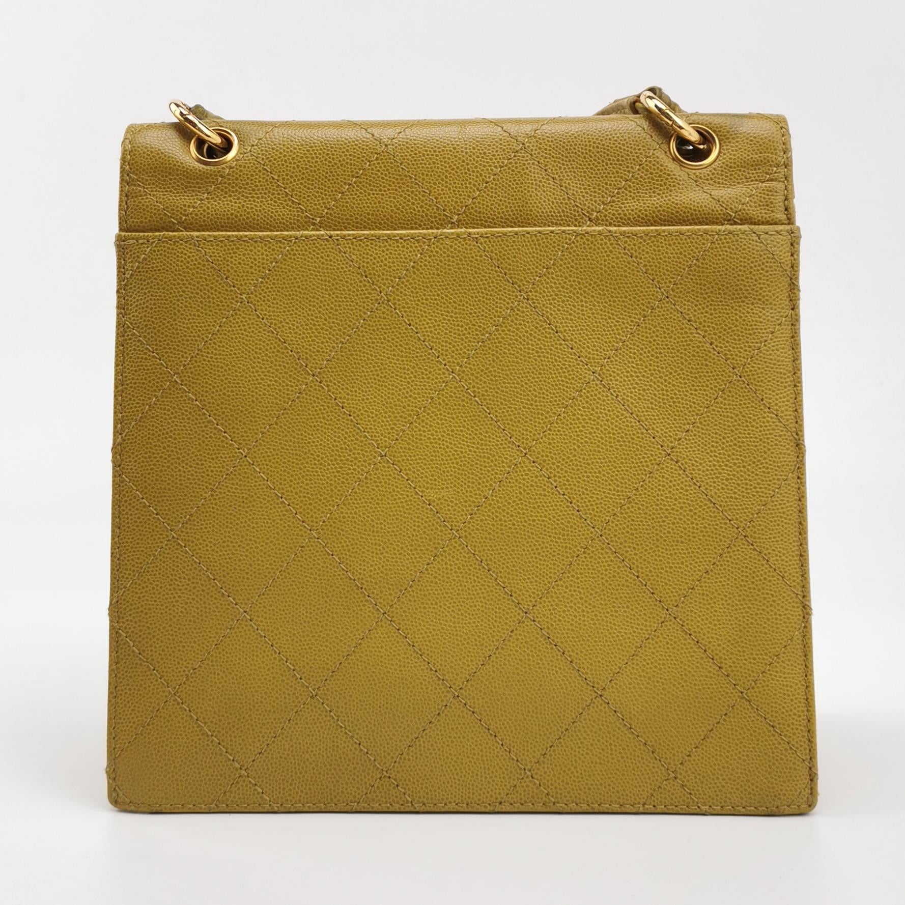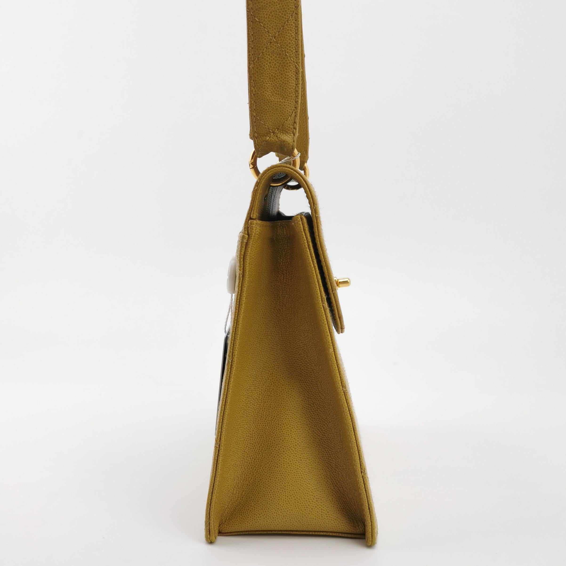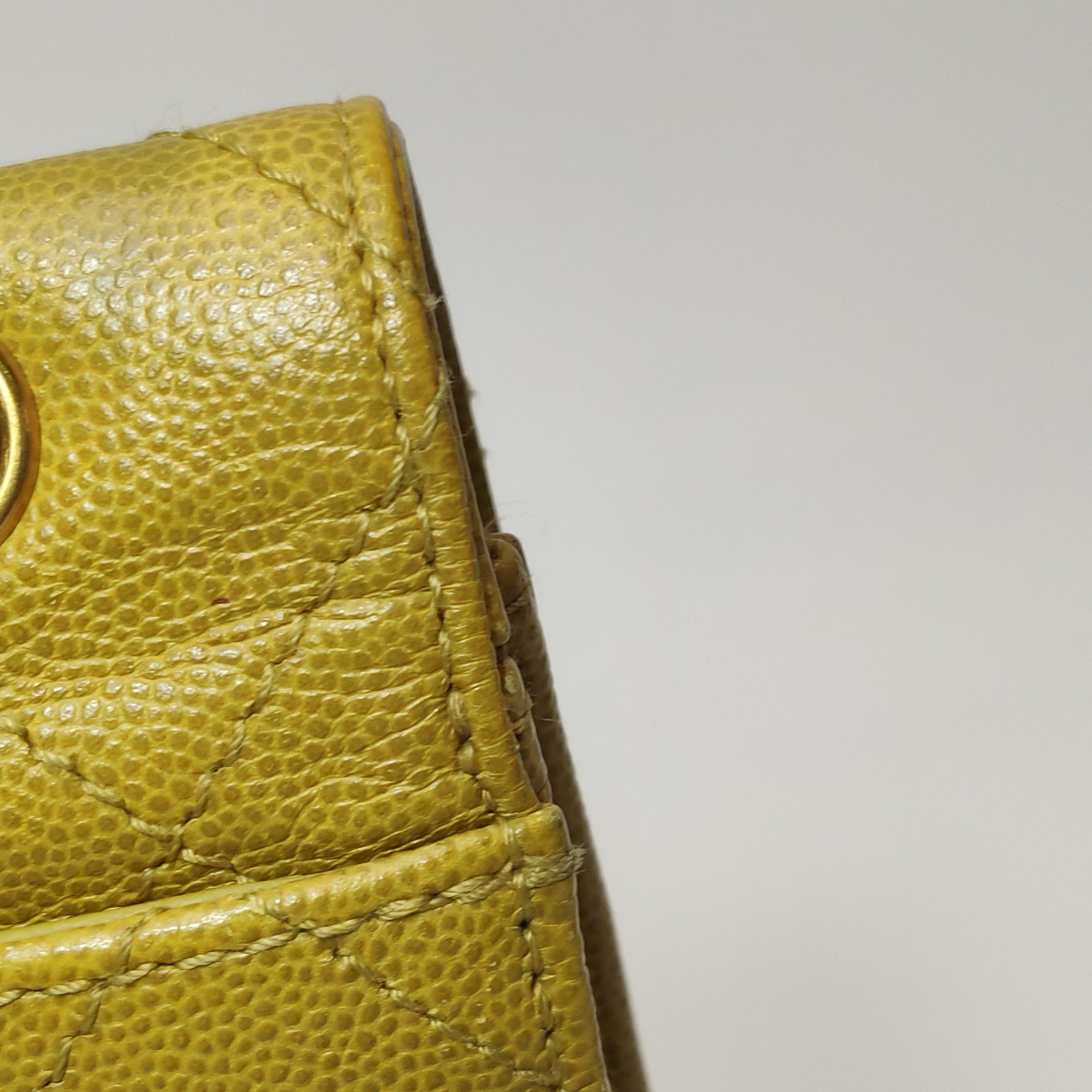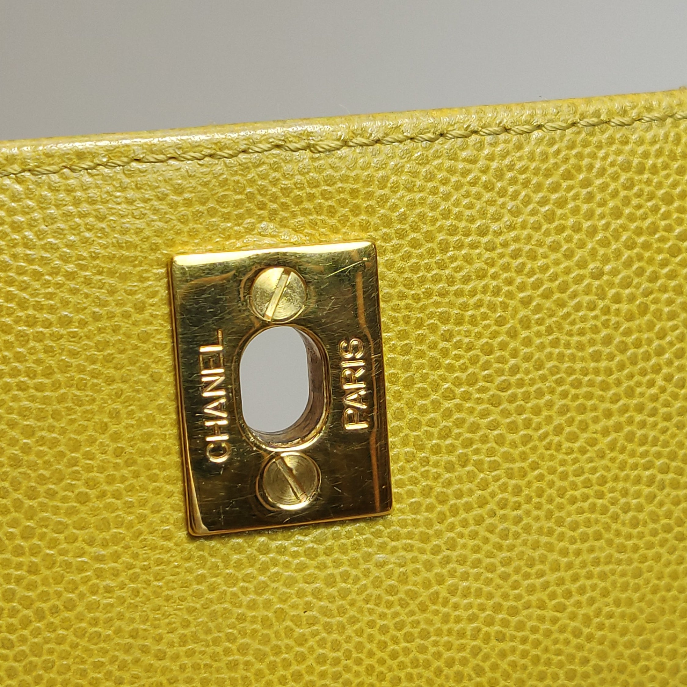 Chanel Vintage Kelly Flap Bag Yellow Caviar Leather 24k Gold Hardware 1997-1999