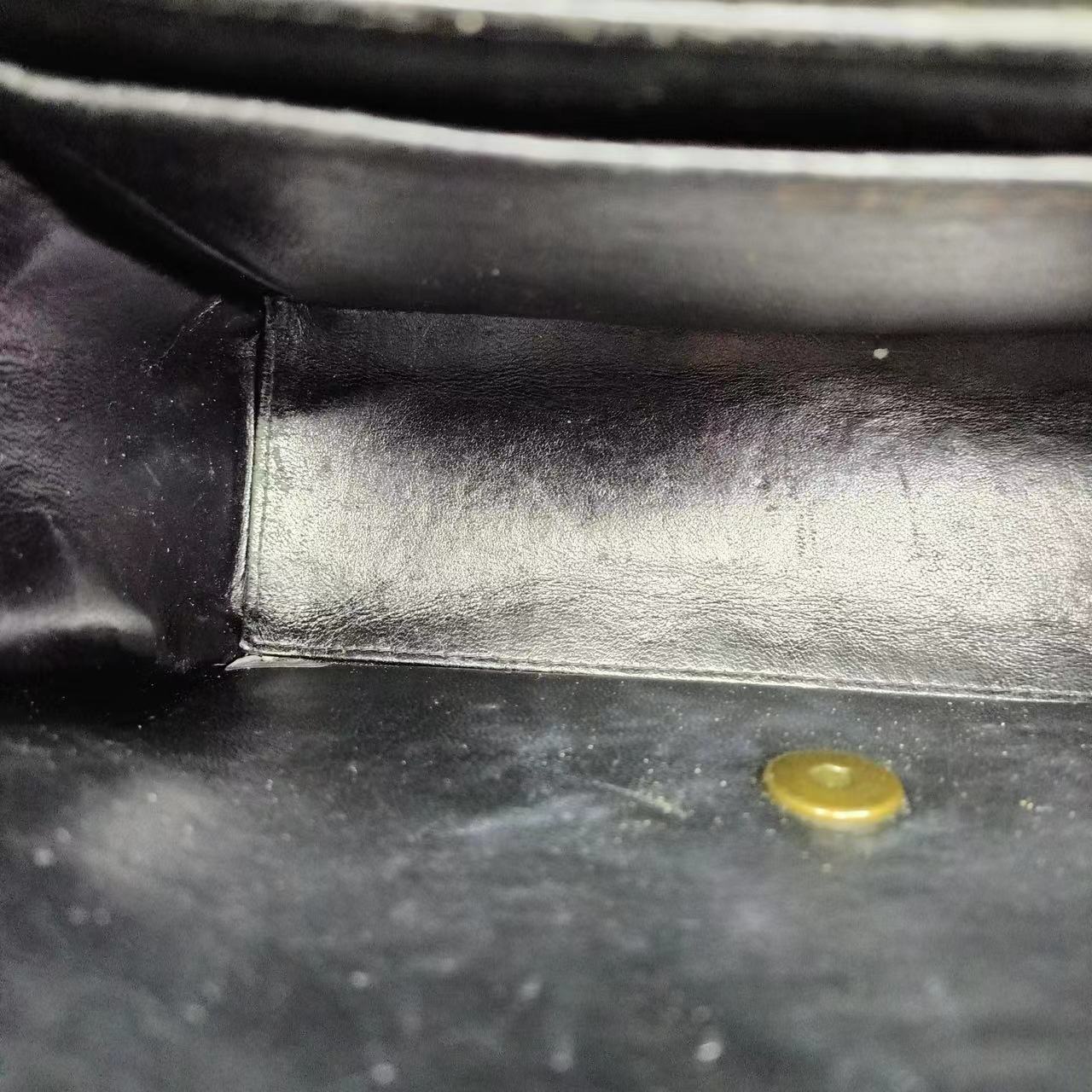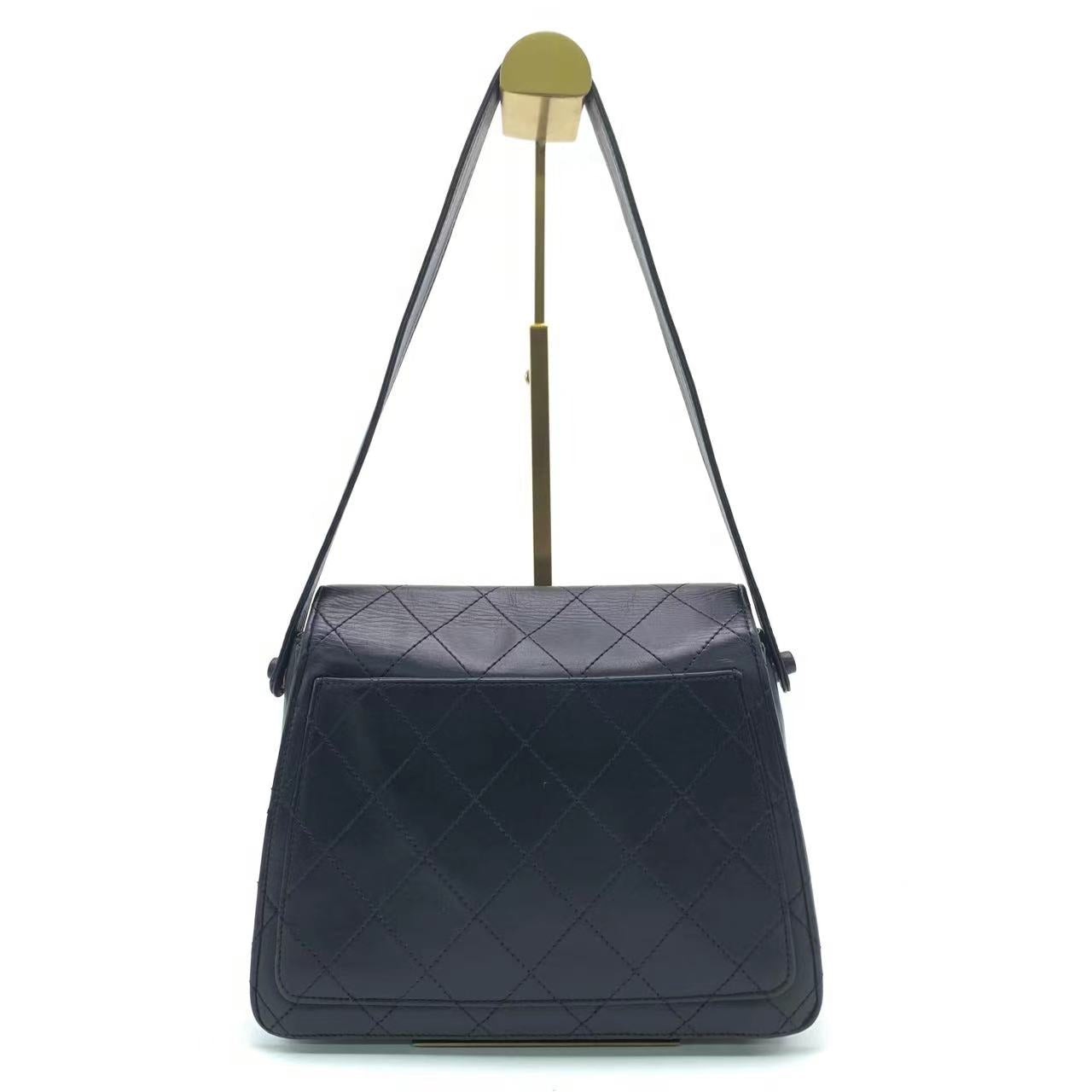 Chanel Vintage Kelly Style Black Leather Shoulder Bag Diamond Stitch Medium