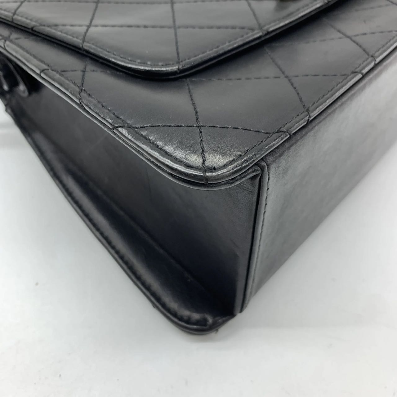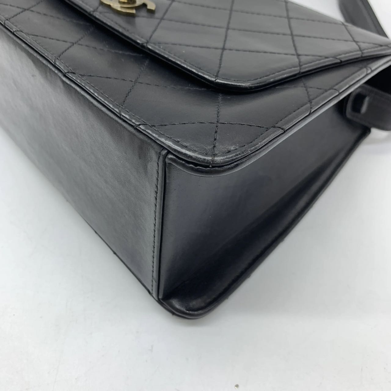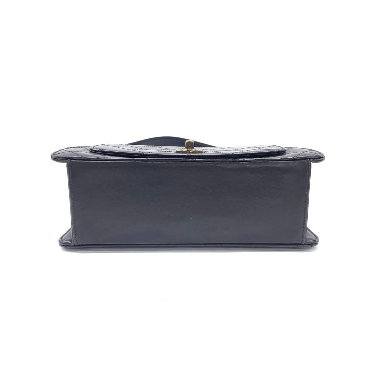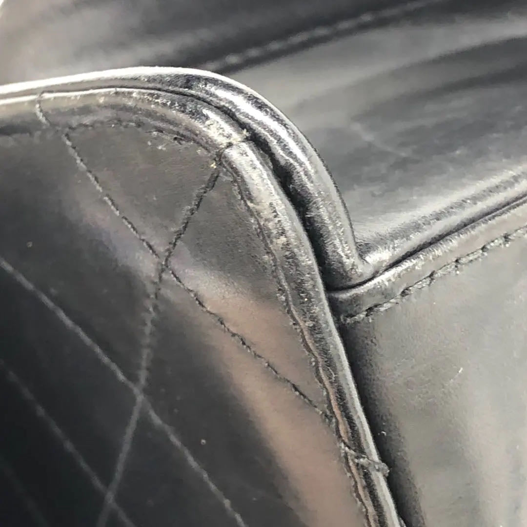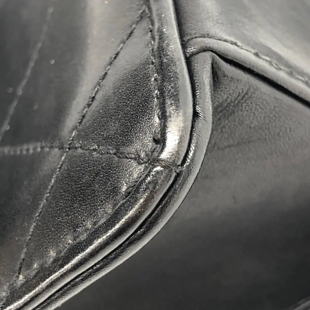Chanel Vintage Kelly Style Black Leather Shoulder Bag Diamond Stitch Medium