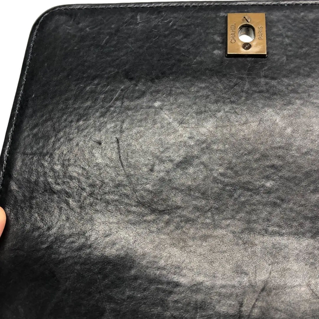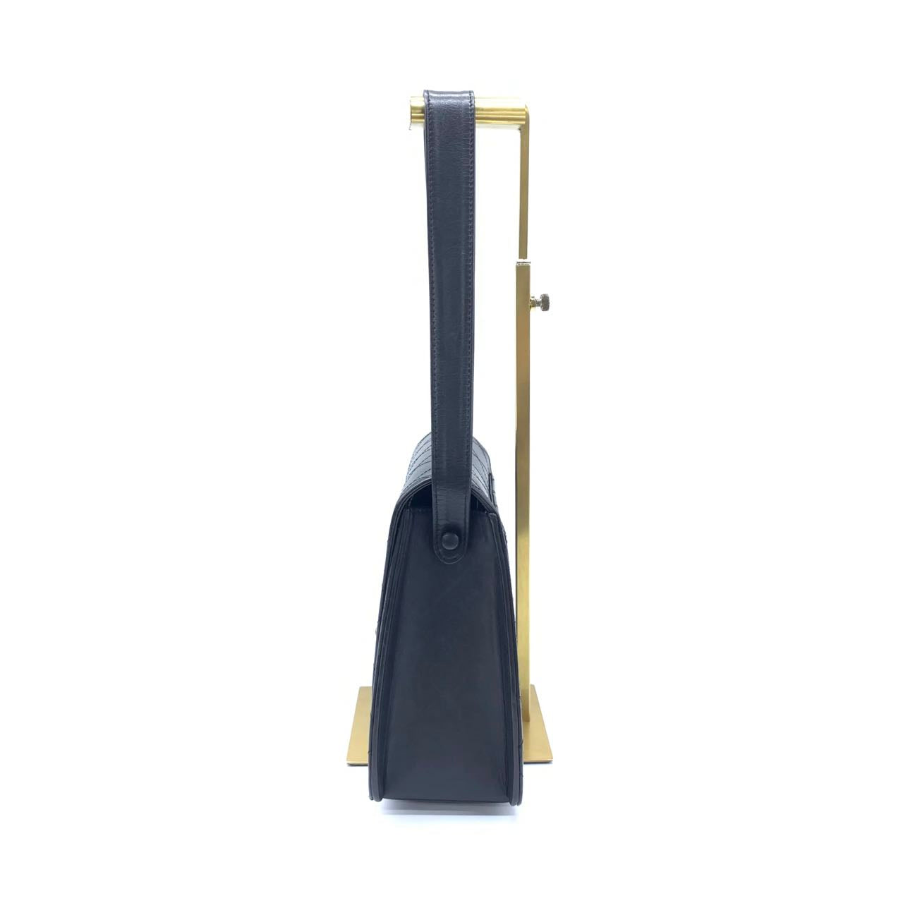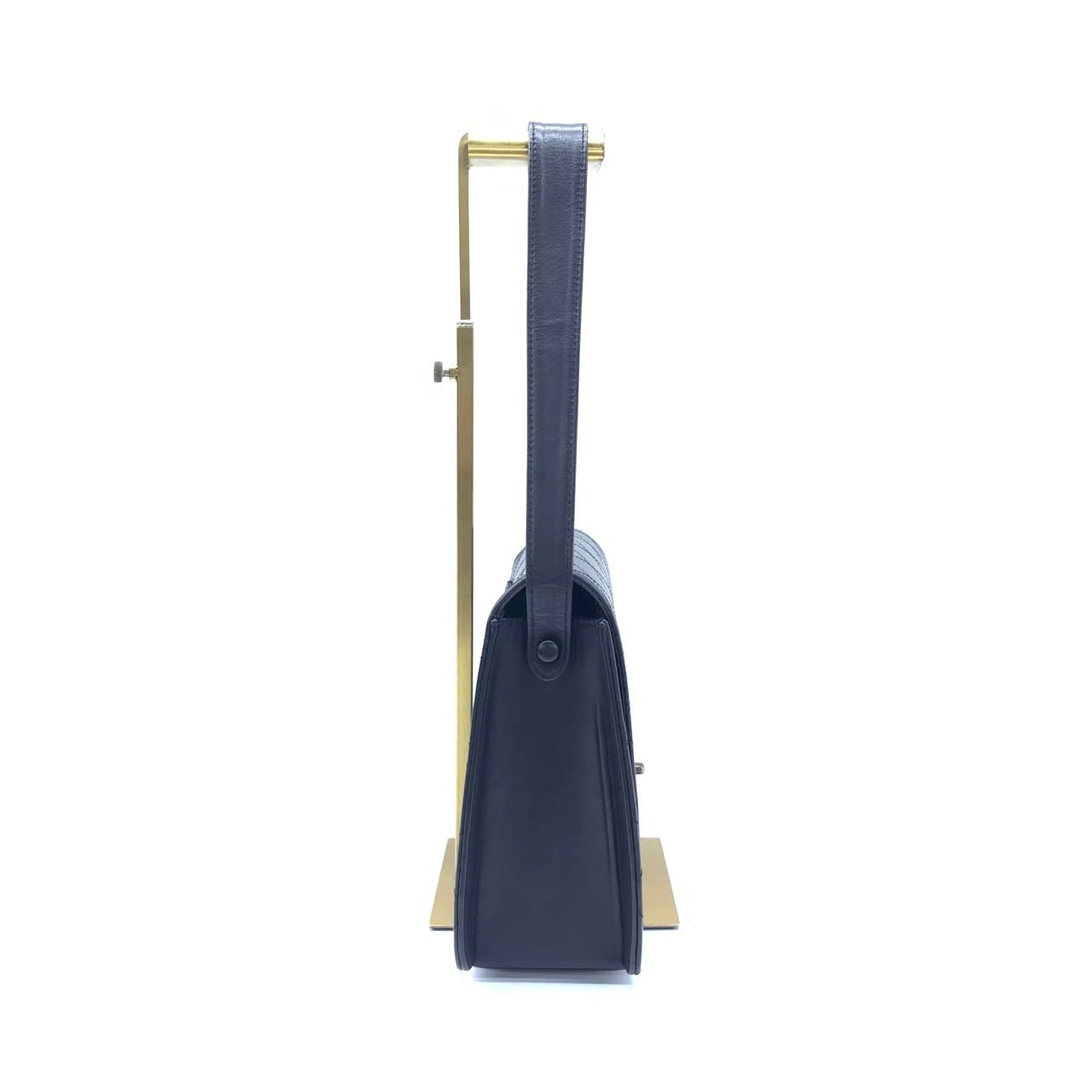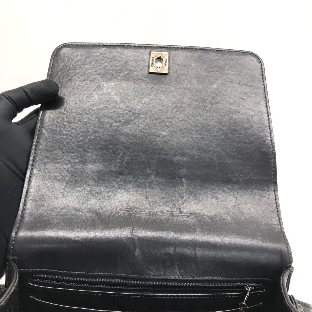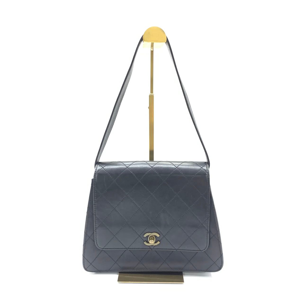 Chanel Vintage Kelly Style Black Leather Shoulder Bag Diamond Stitch Medium