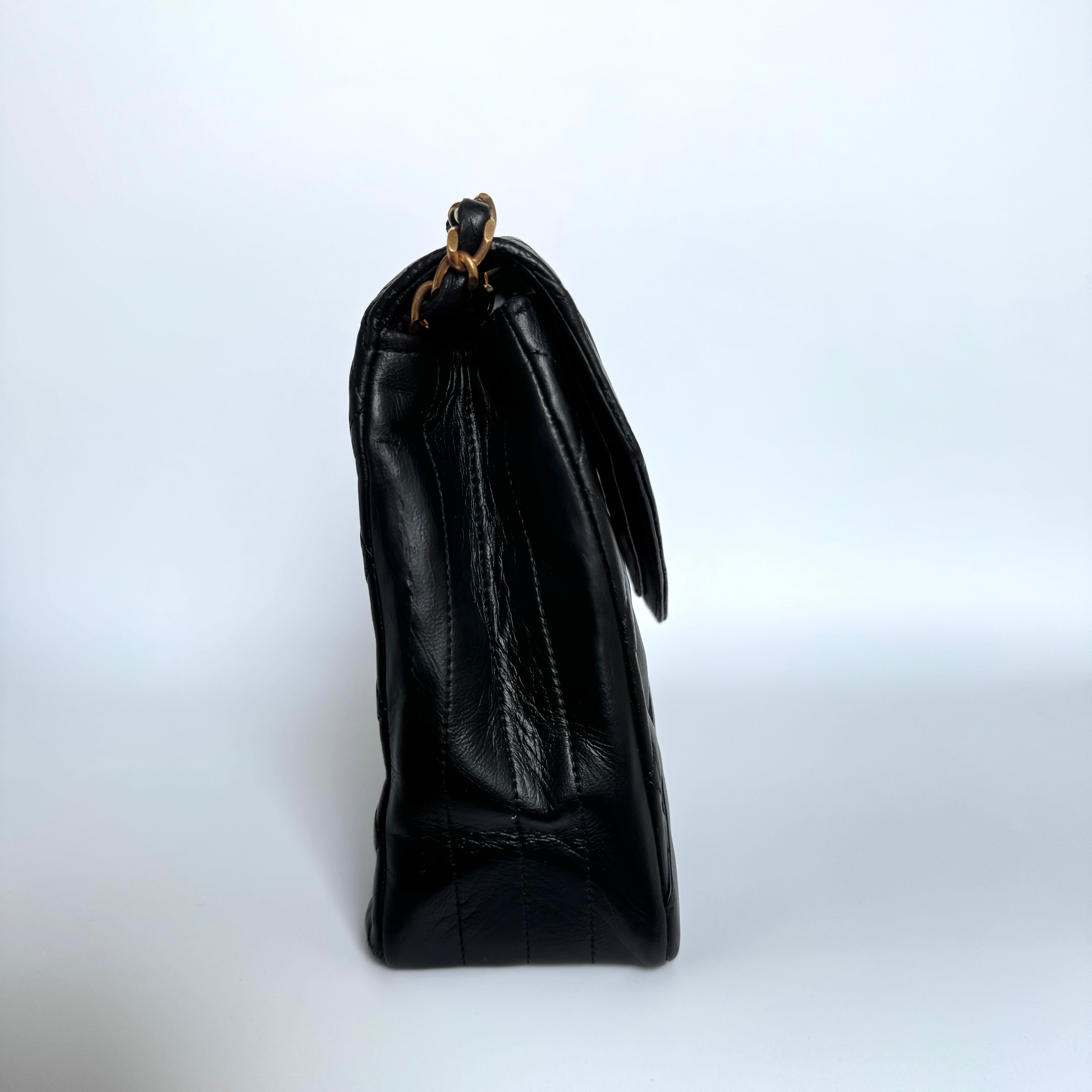 Chanel Vintage Medium Black Quilted Lambskin Paris Limited Single Flap Gold Hardware