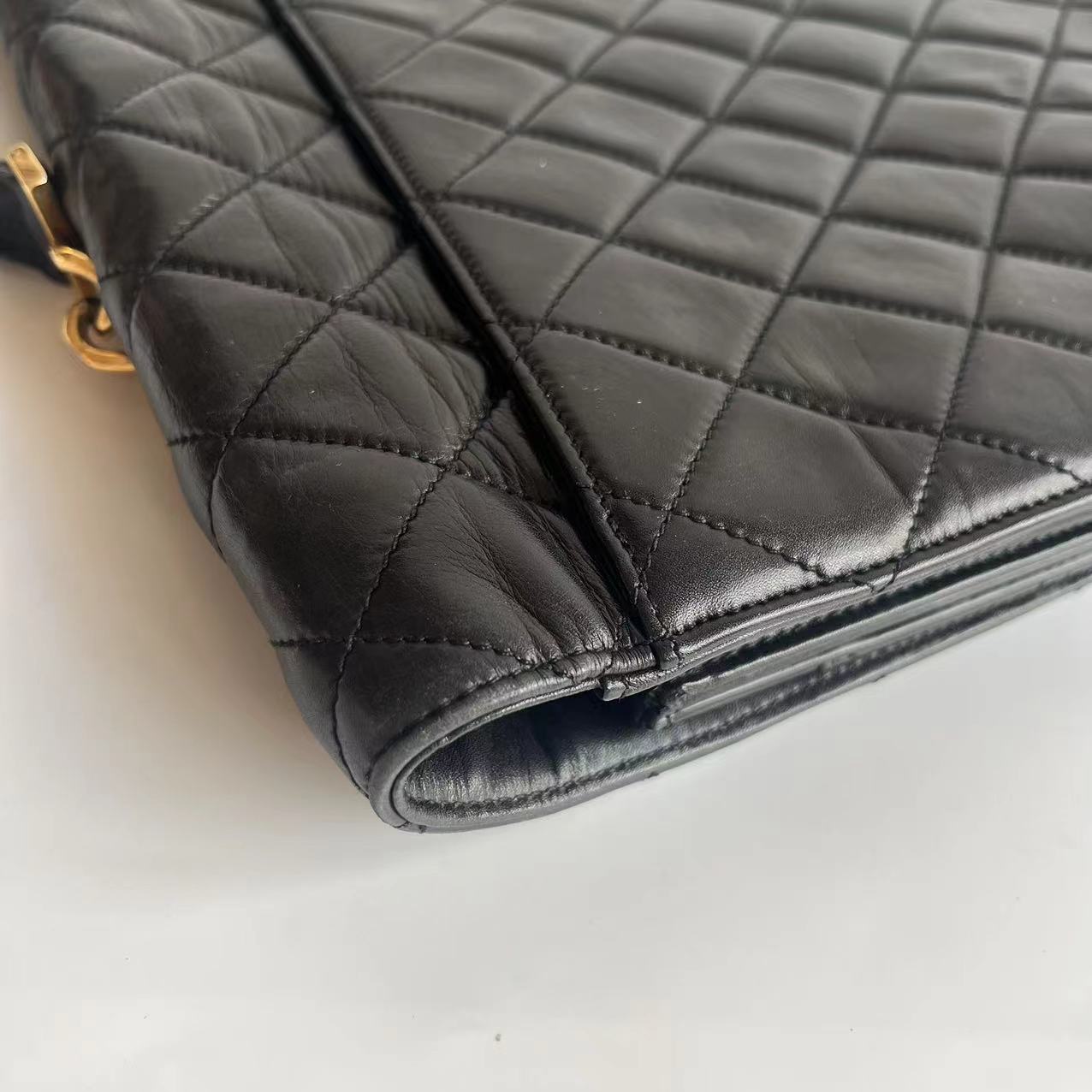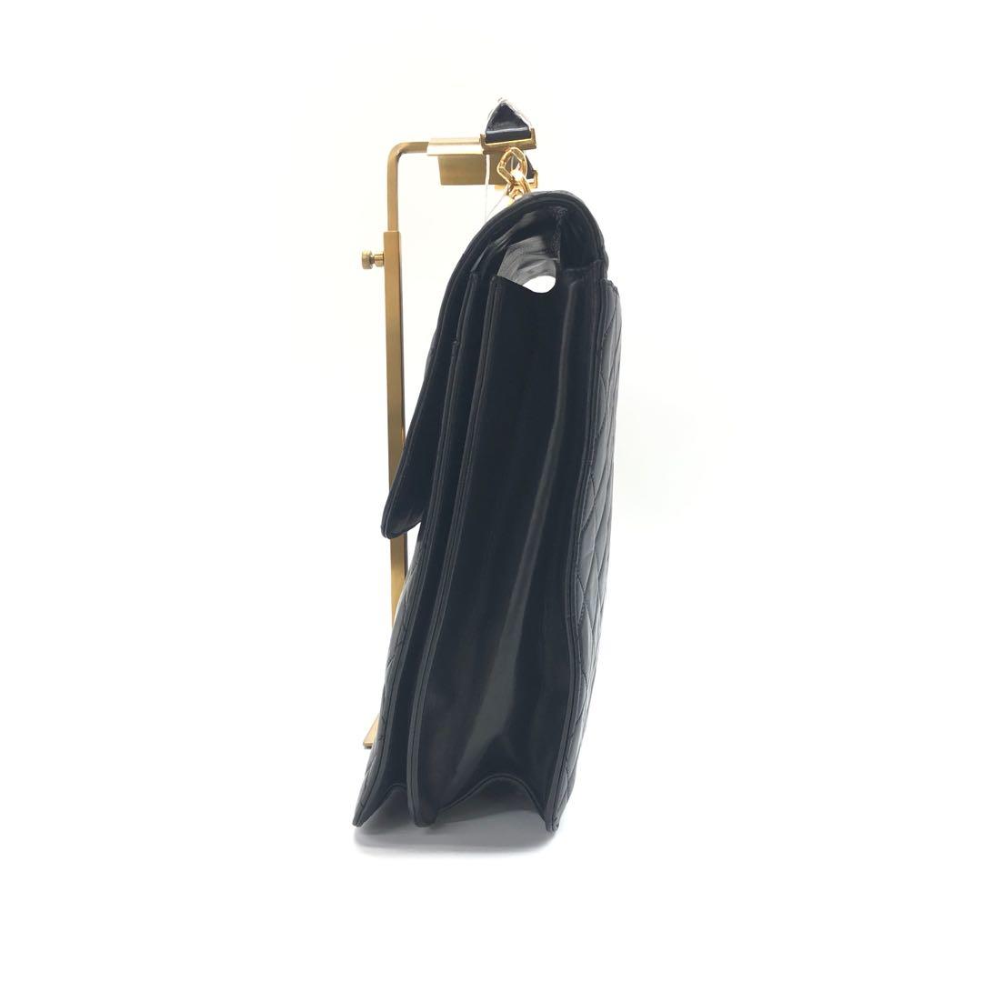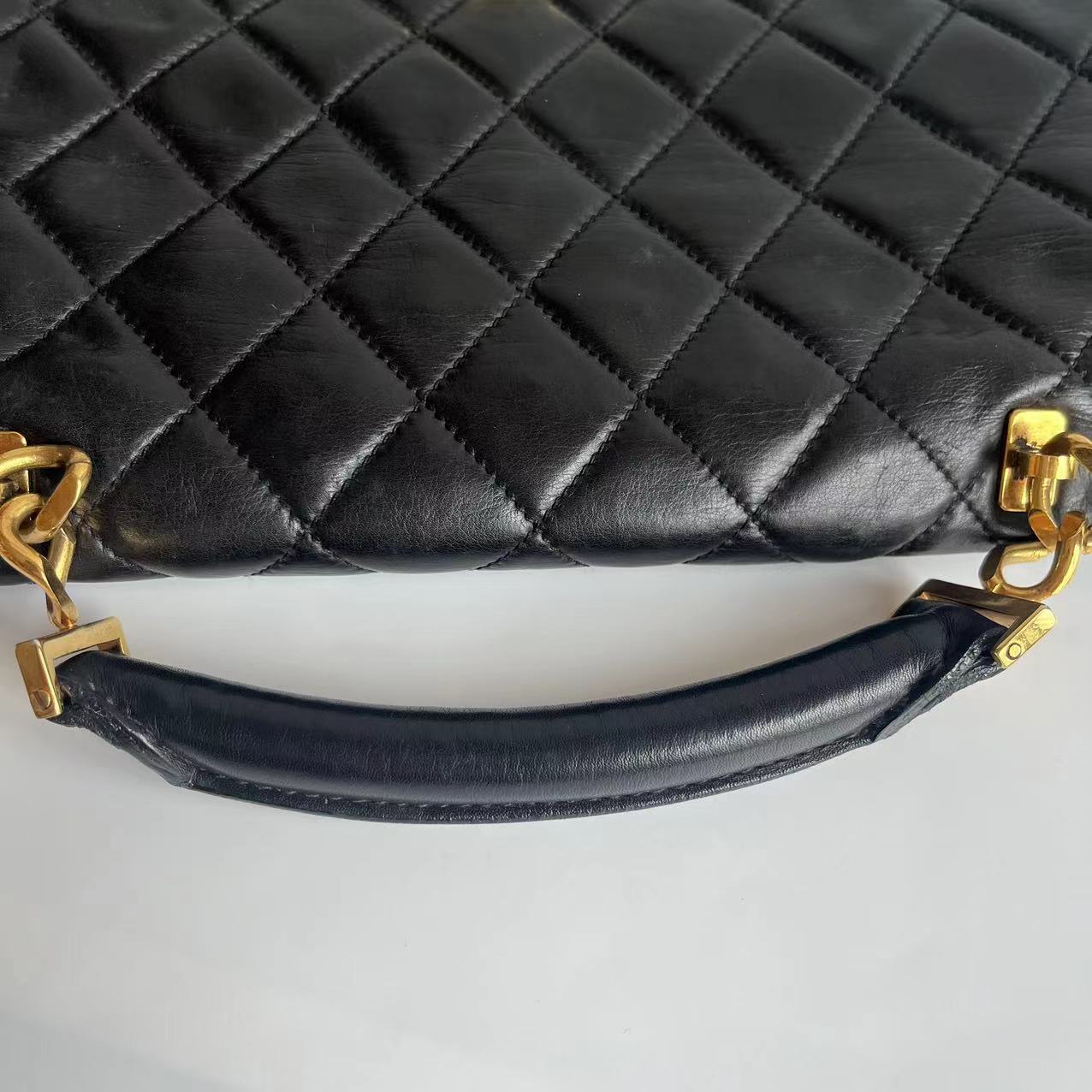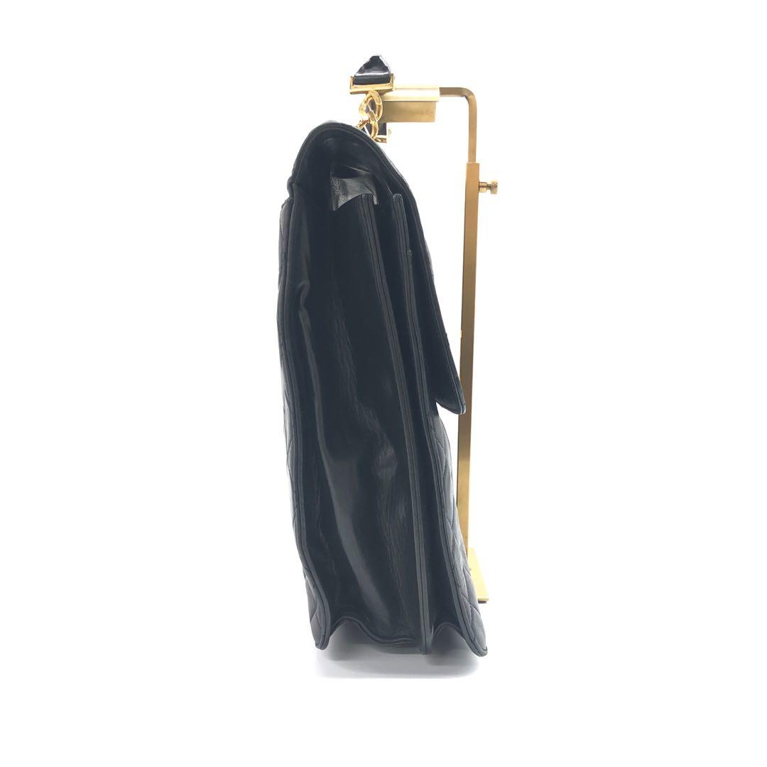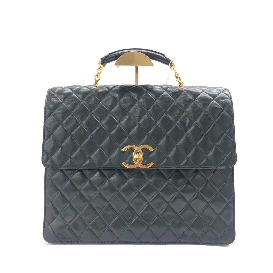 Chanel Vintage Quilted CC Briefcase Black Lambskin Leather Gold Hardware