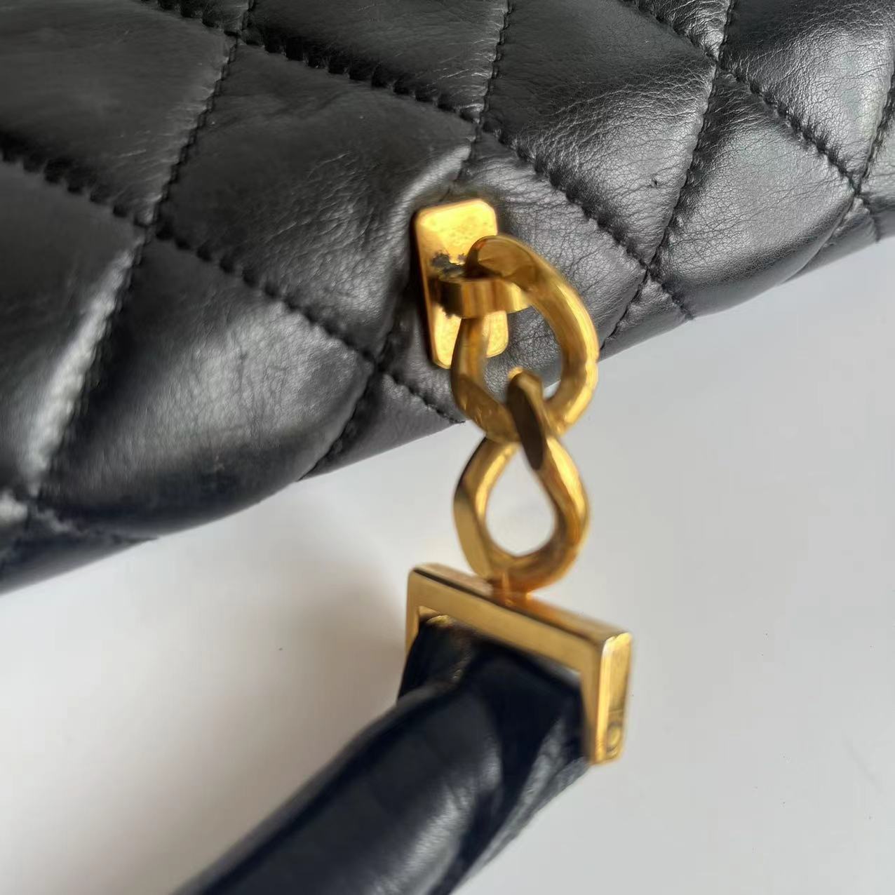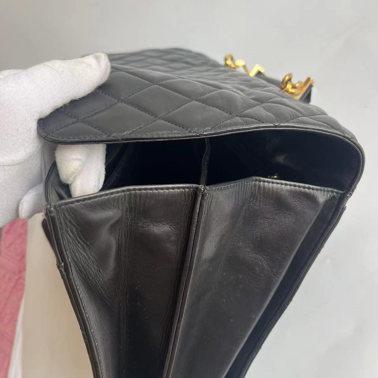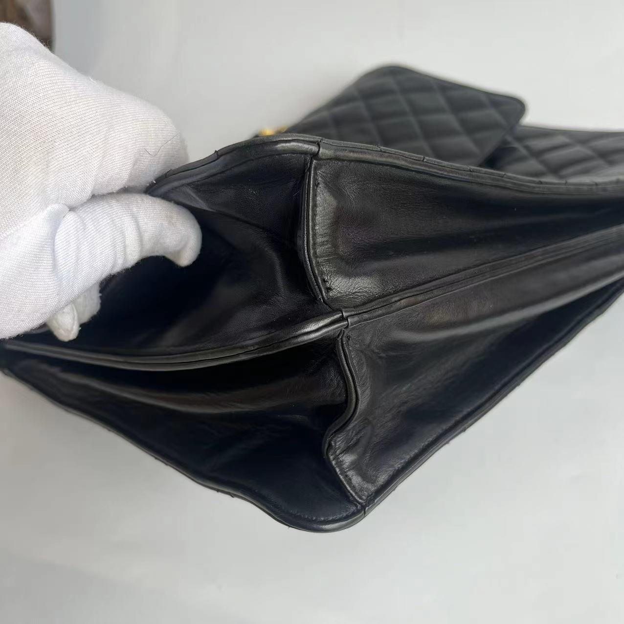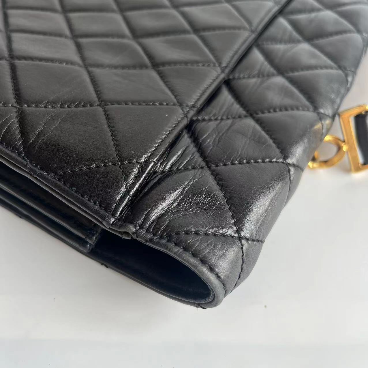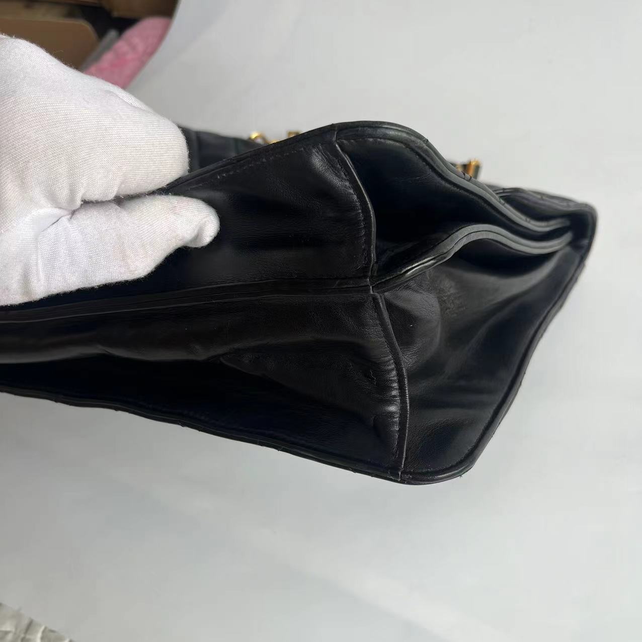 Chanel Vintage Quilted CC Briefcase Black Lambskin Leather Gold Hardware