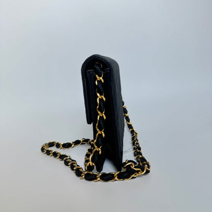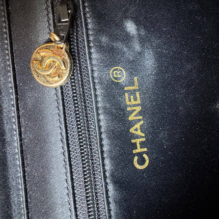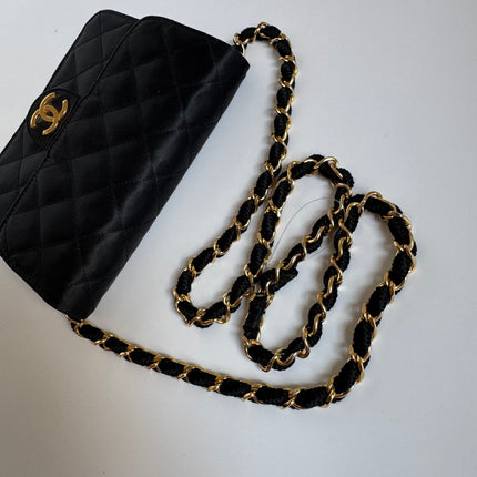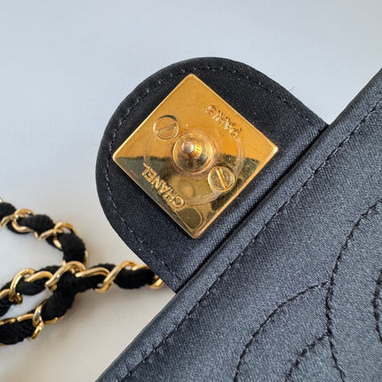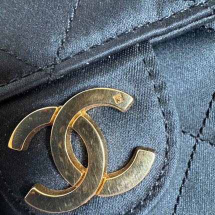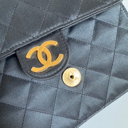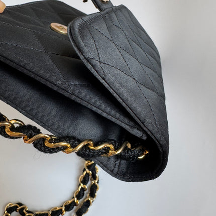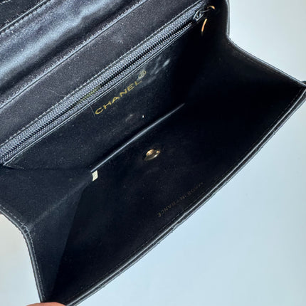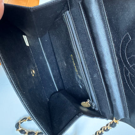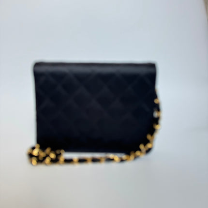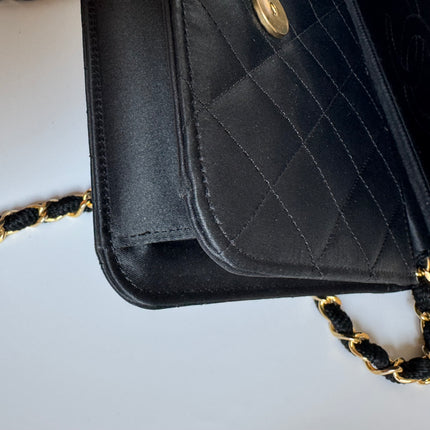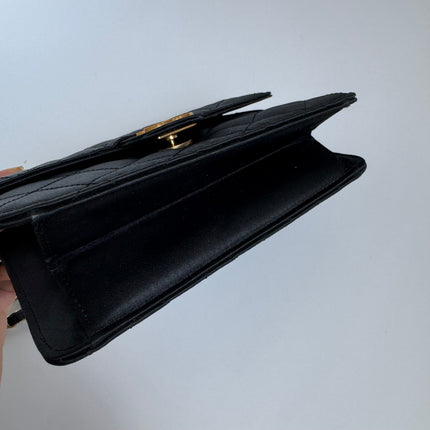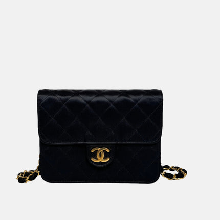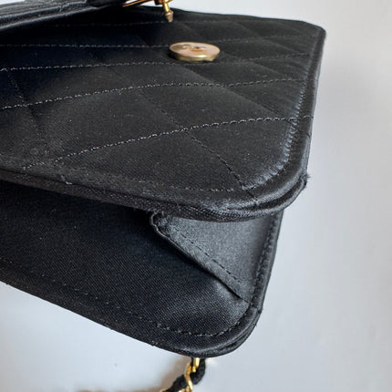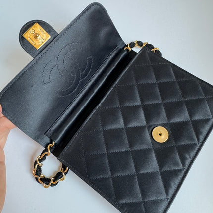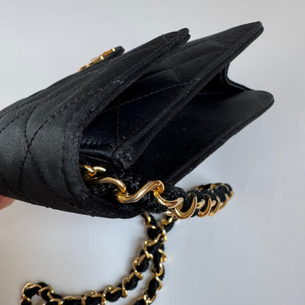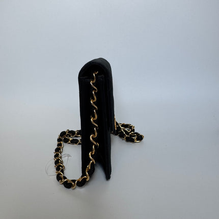 Chanel Vintage Square Wallet on Chain Black Silk Gold Hardware Crossbody Bag, 1986-1988