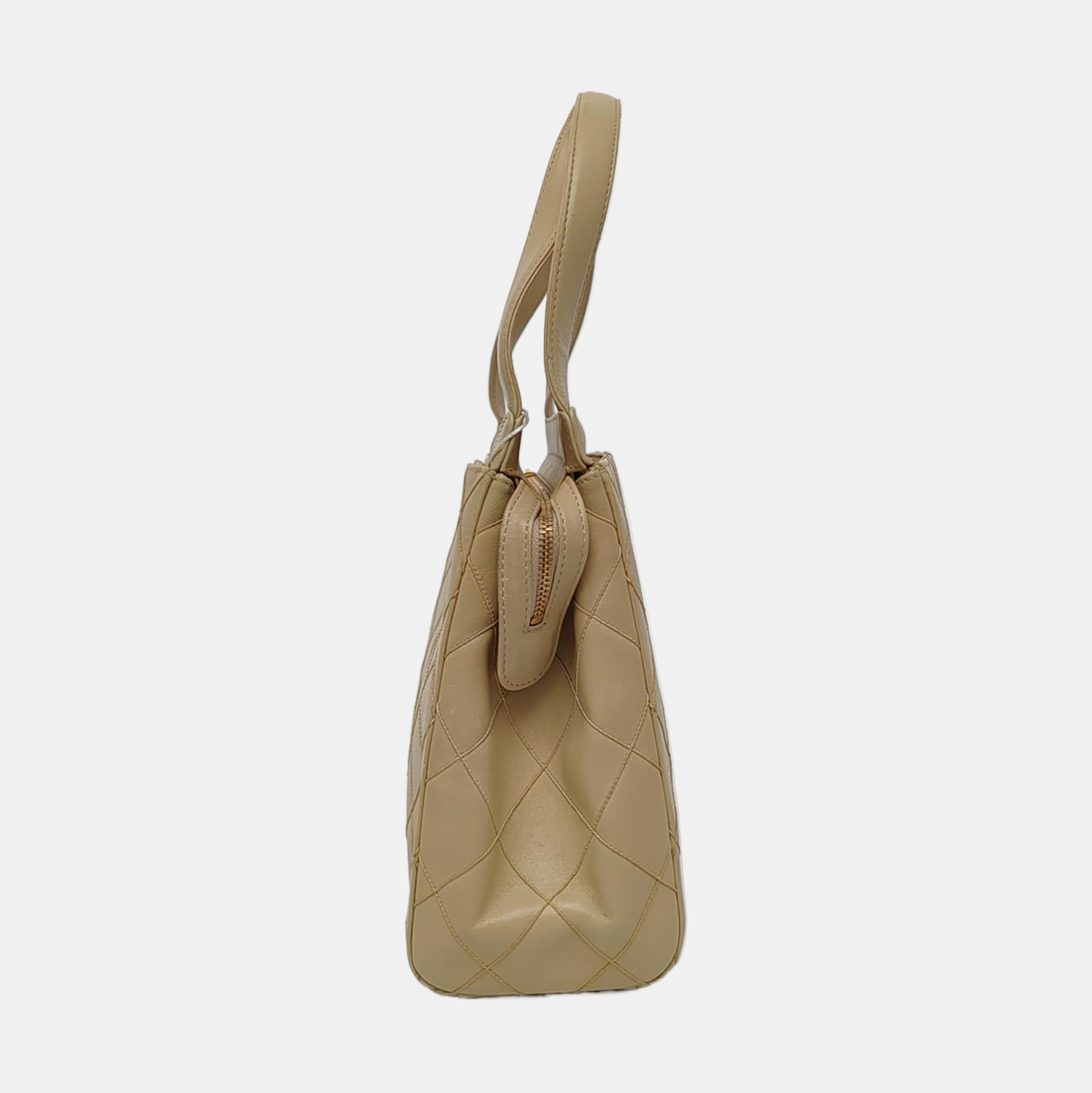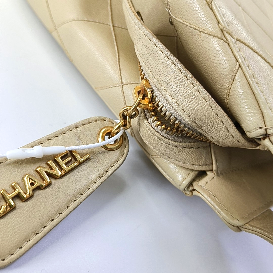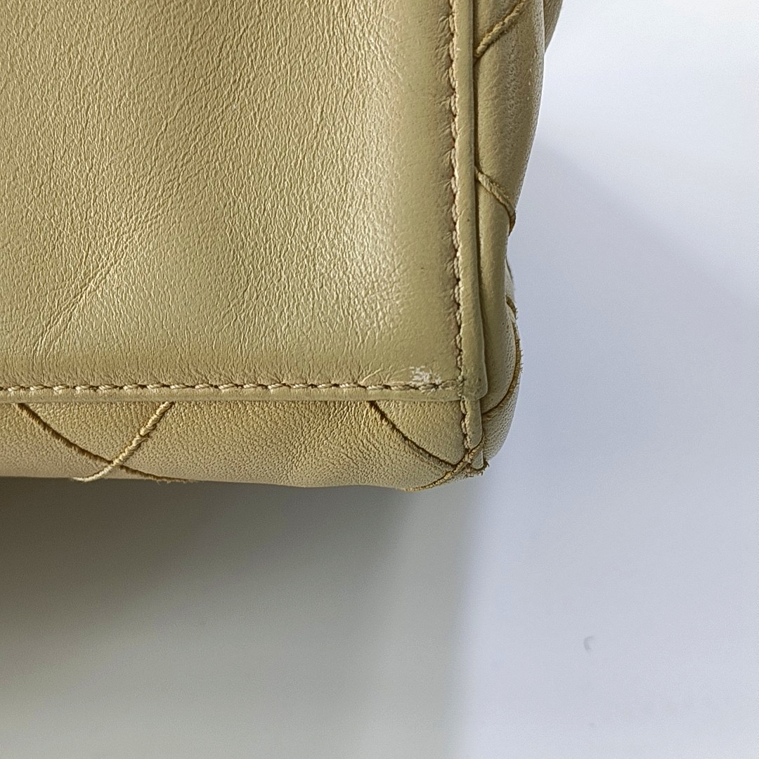 Chanel Vintage Top Handle Beige Lambskin Leather Handbag