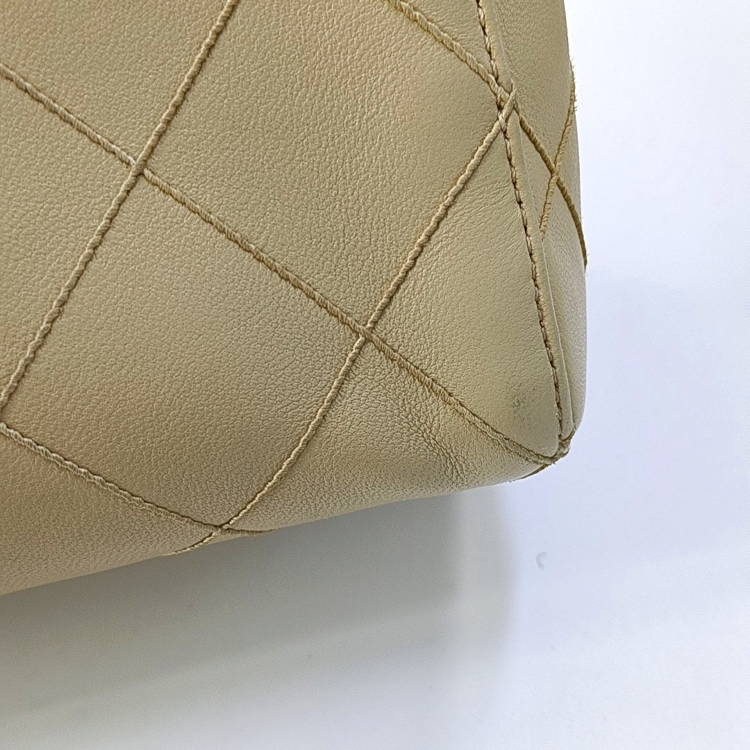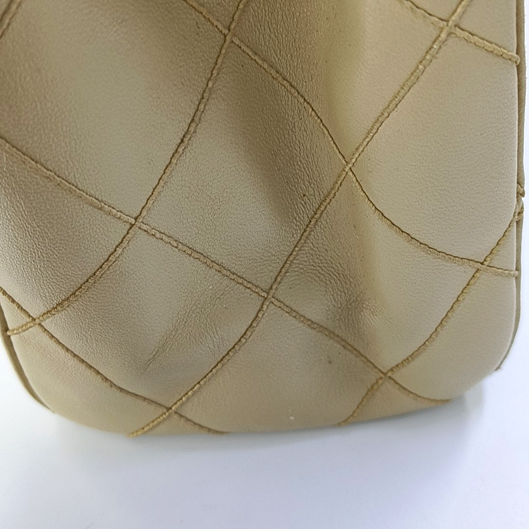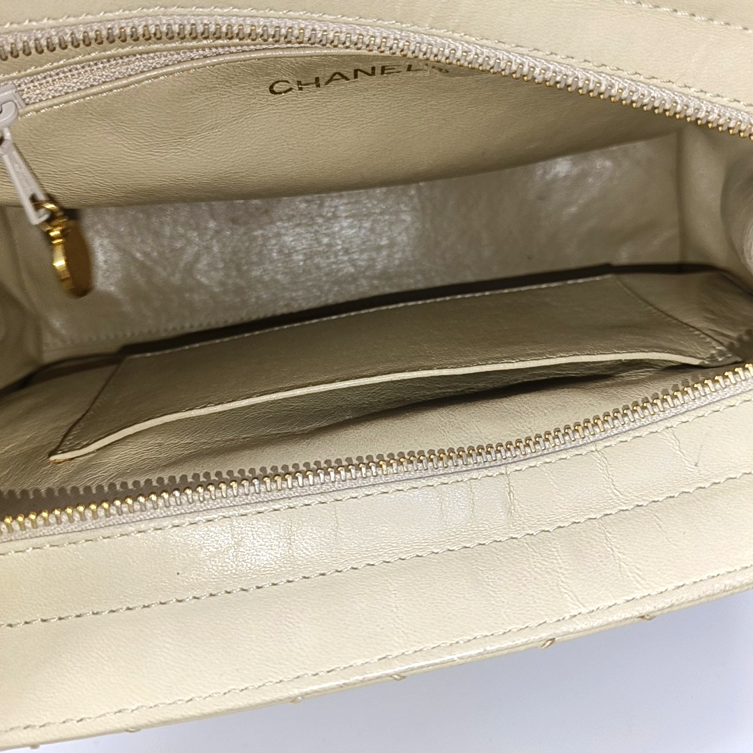 Chanel Vintage Top Handle Beige Lambskin Leather Handbag
