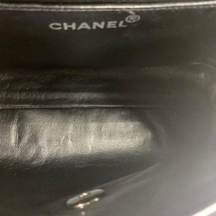 Chanel Vintage Top Handle Kelly Coco Handle Black Flap Bag Fabric Silver Hardware