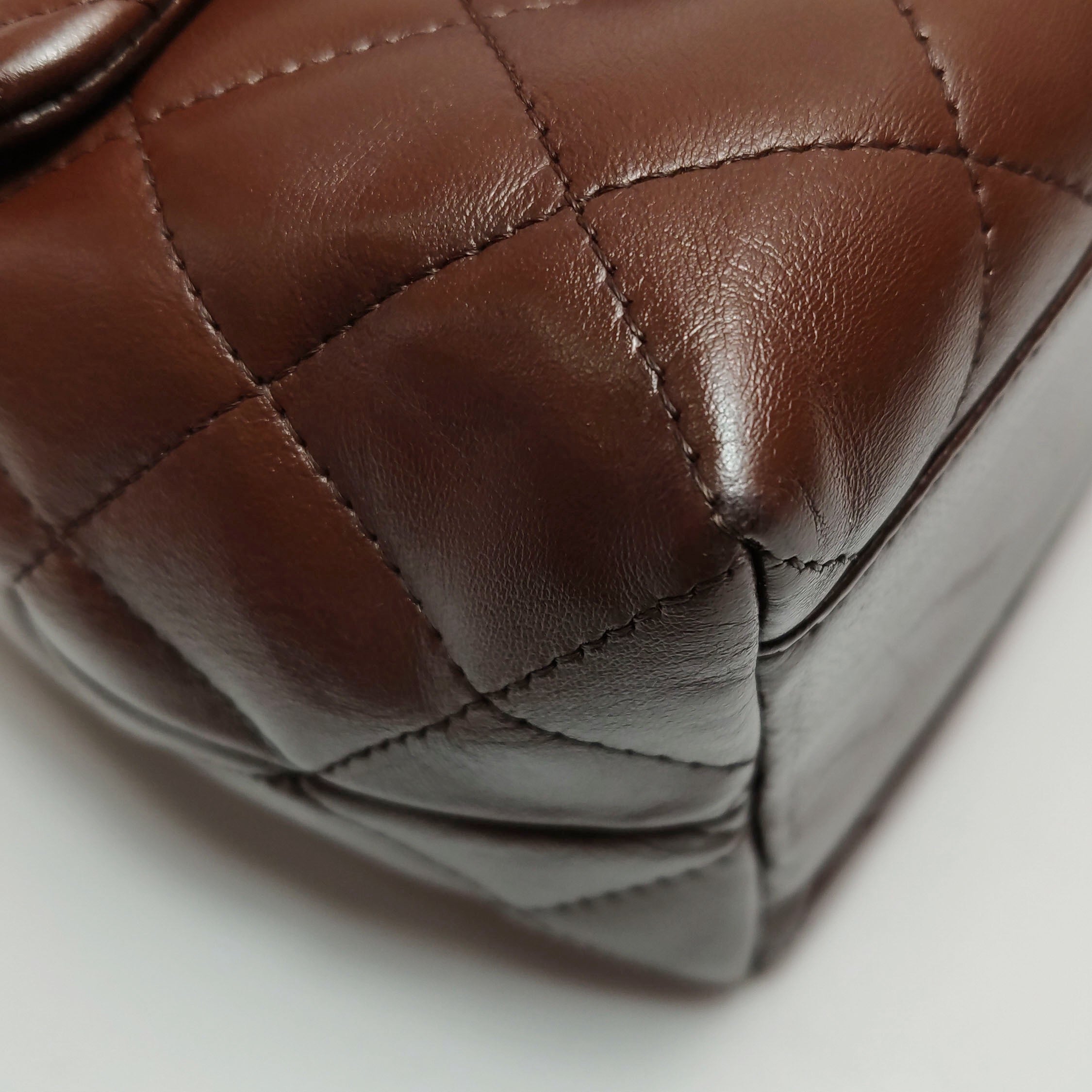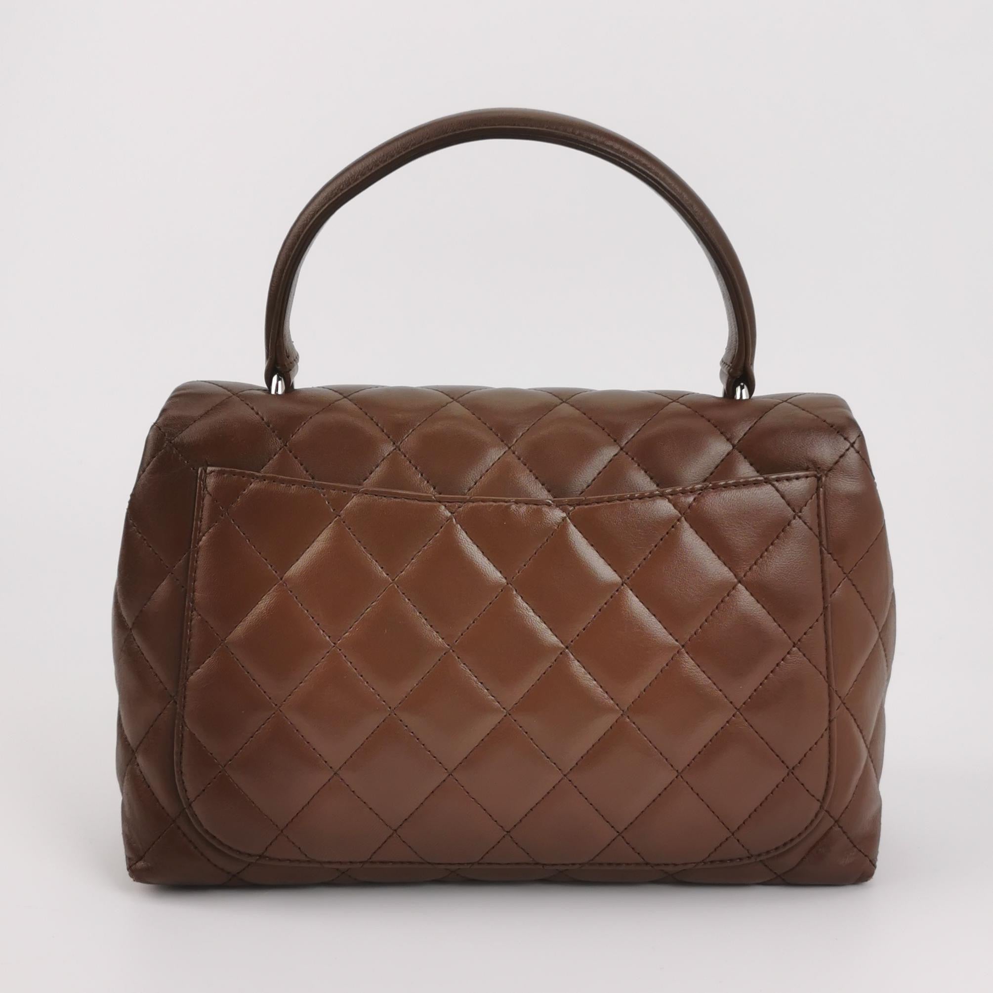 Chanel Vintage Top Handle Kelly Flap Bag Brown lambskin leather