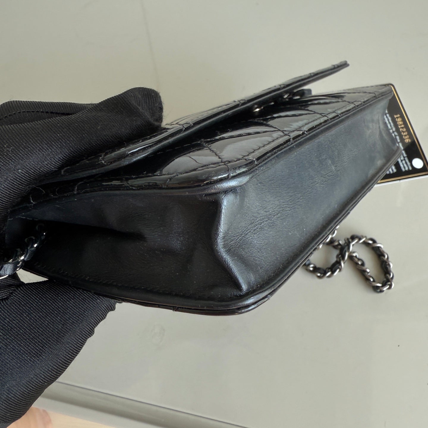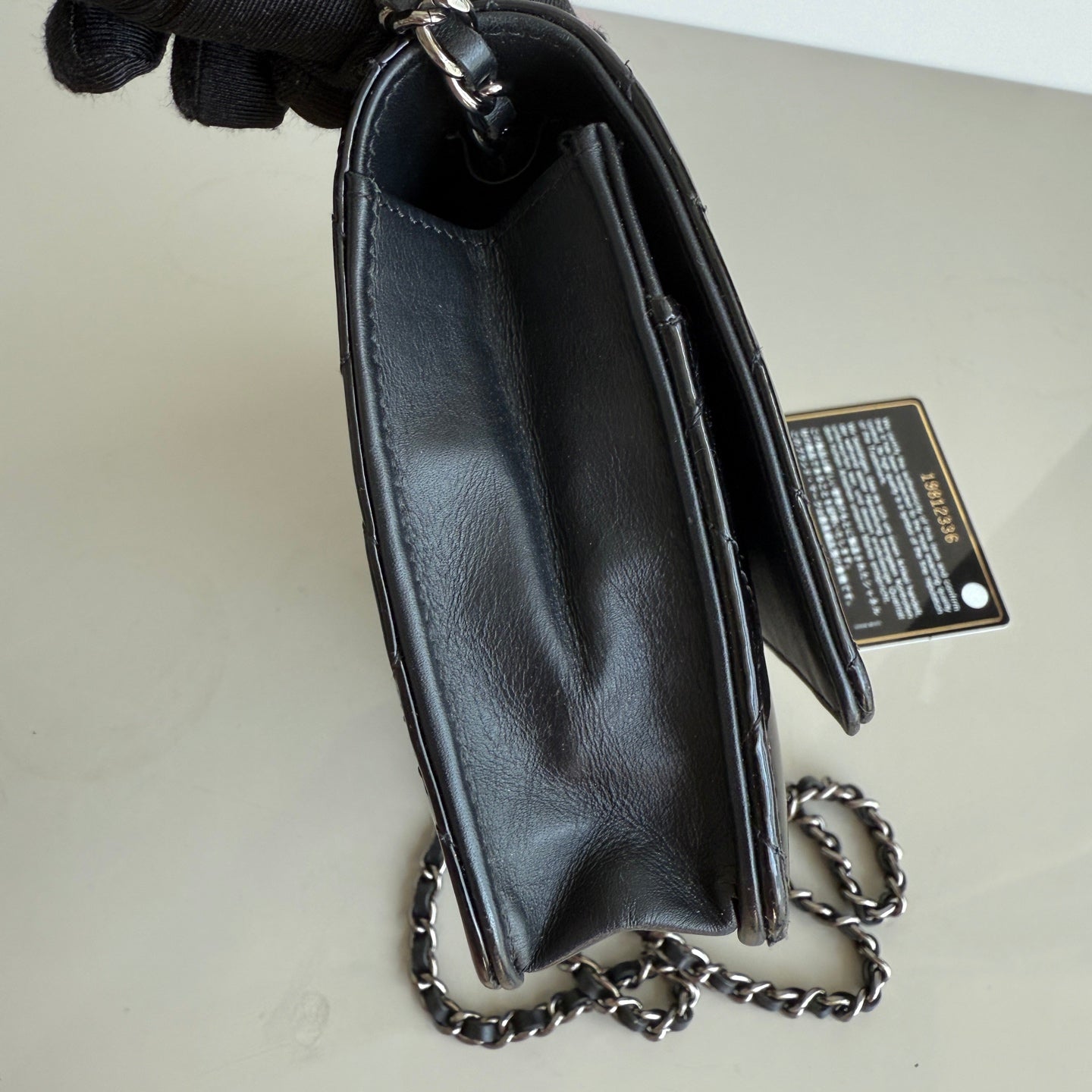 Chanel Wallet on Chain Classic Flap Black Patent Leather Silver Hardware
