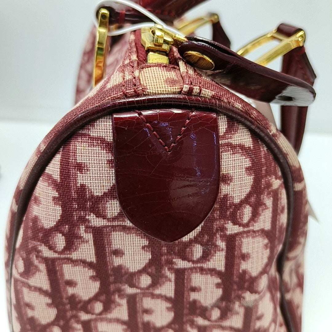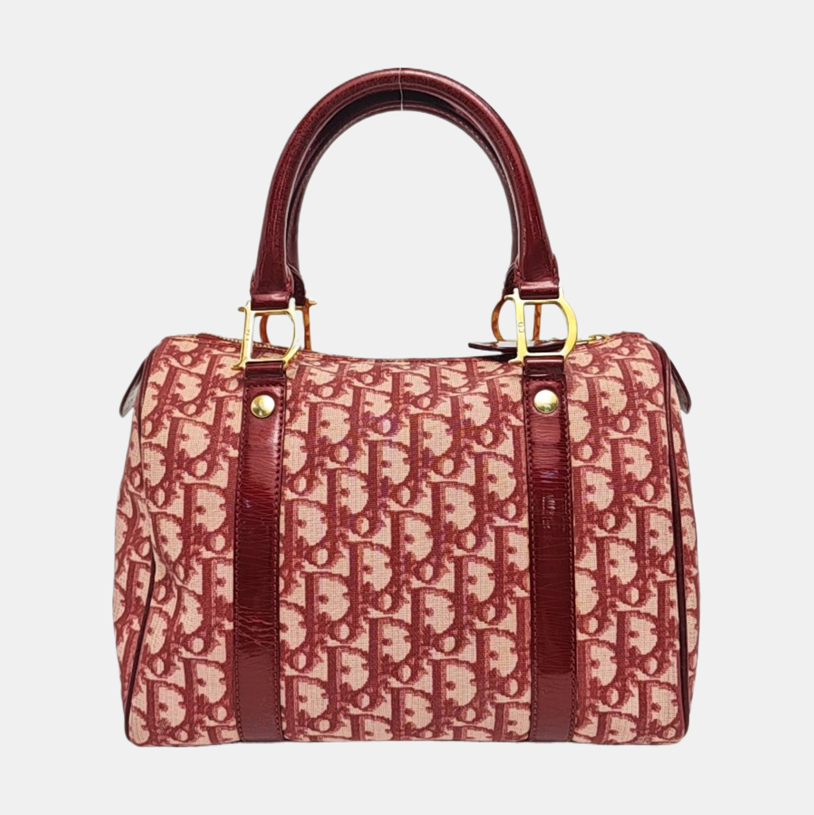 Christian Dior Trotter Boston Cloth Oblique Medium Red Handbag