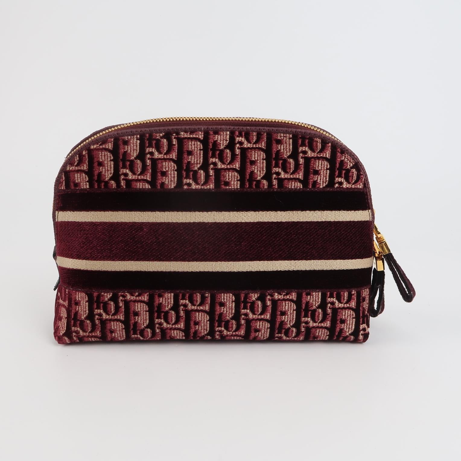 Christian Dior Velvet Oblique Cosmetic Pouch Burgundy