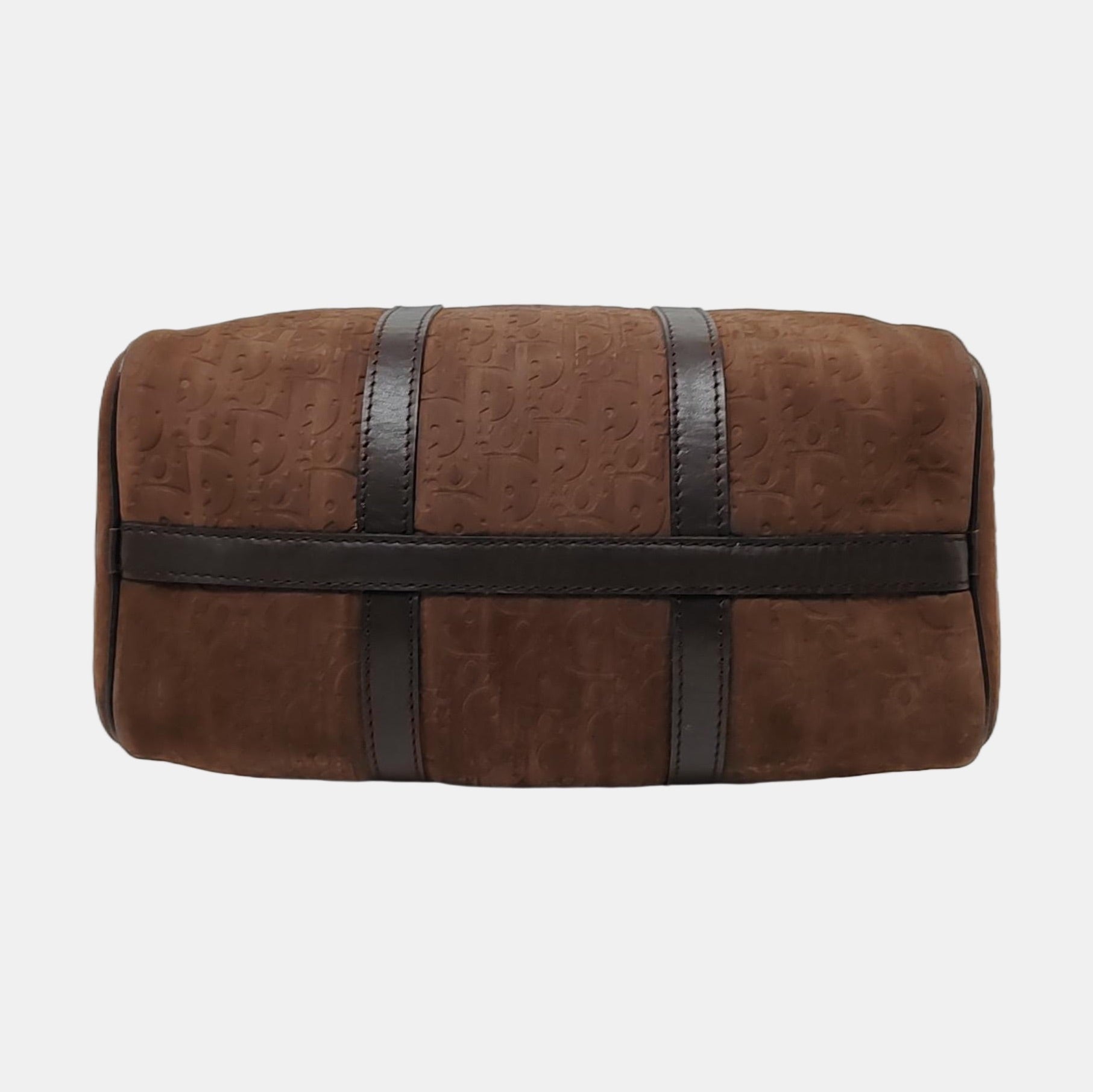 Dior Bowling Bag Brown Suede Monogram Black Handles 30cm