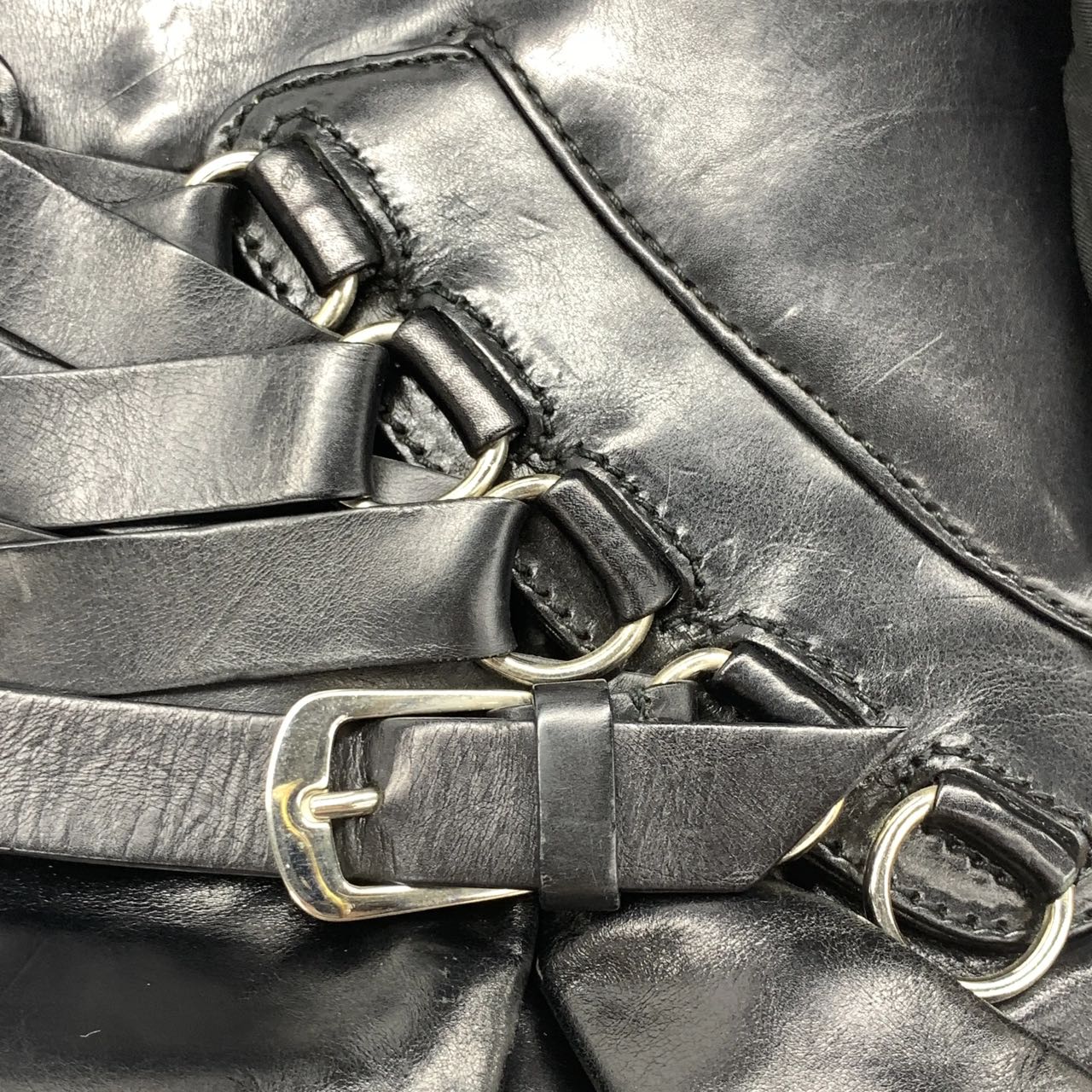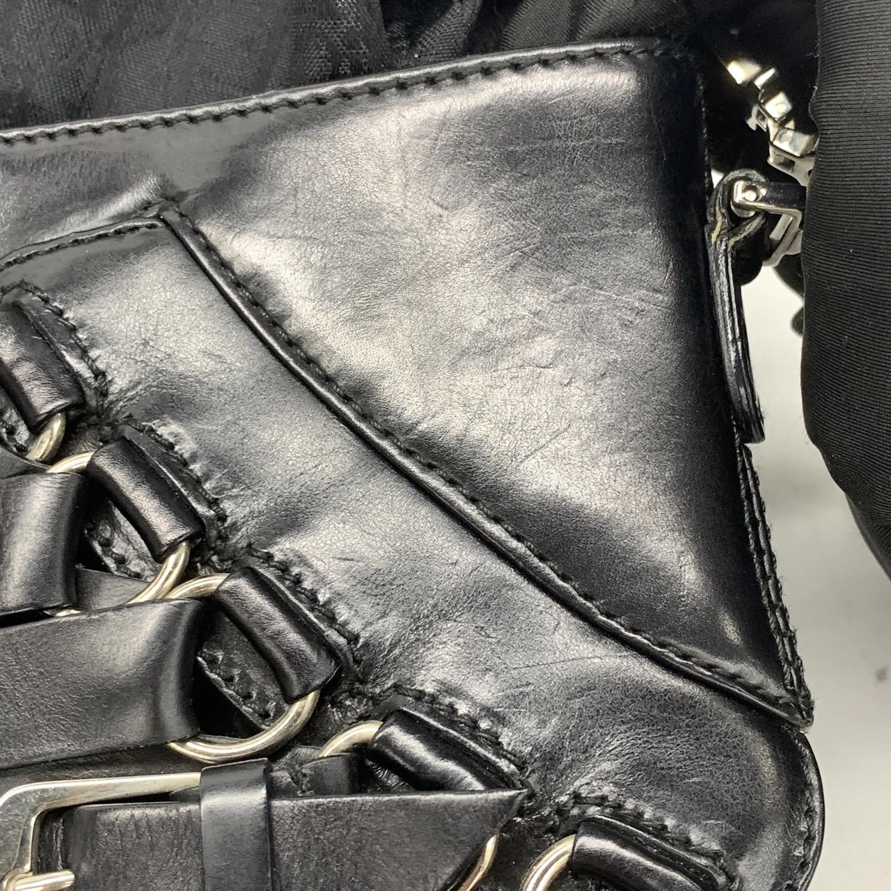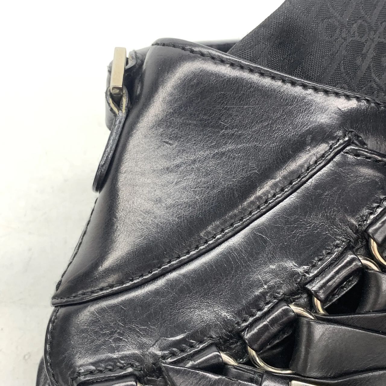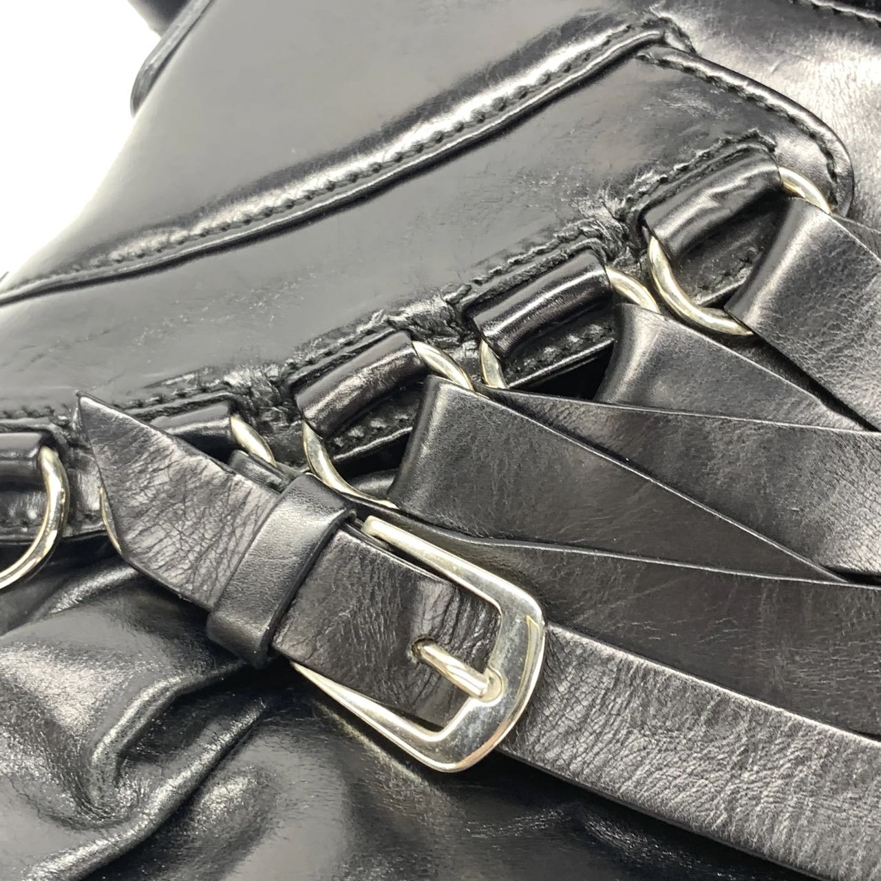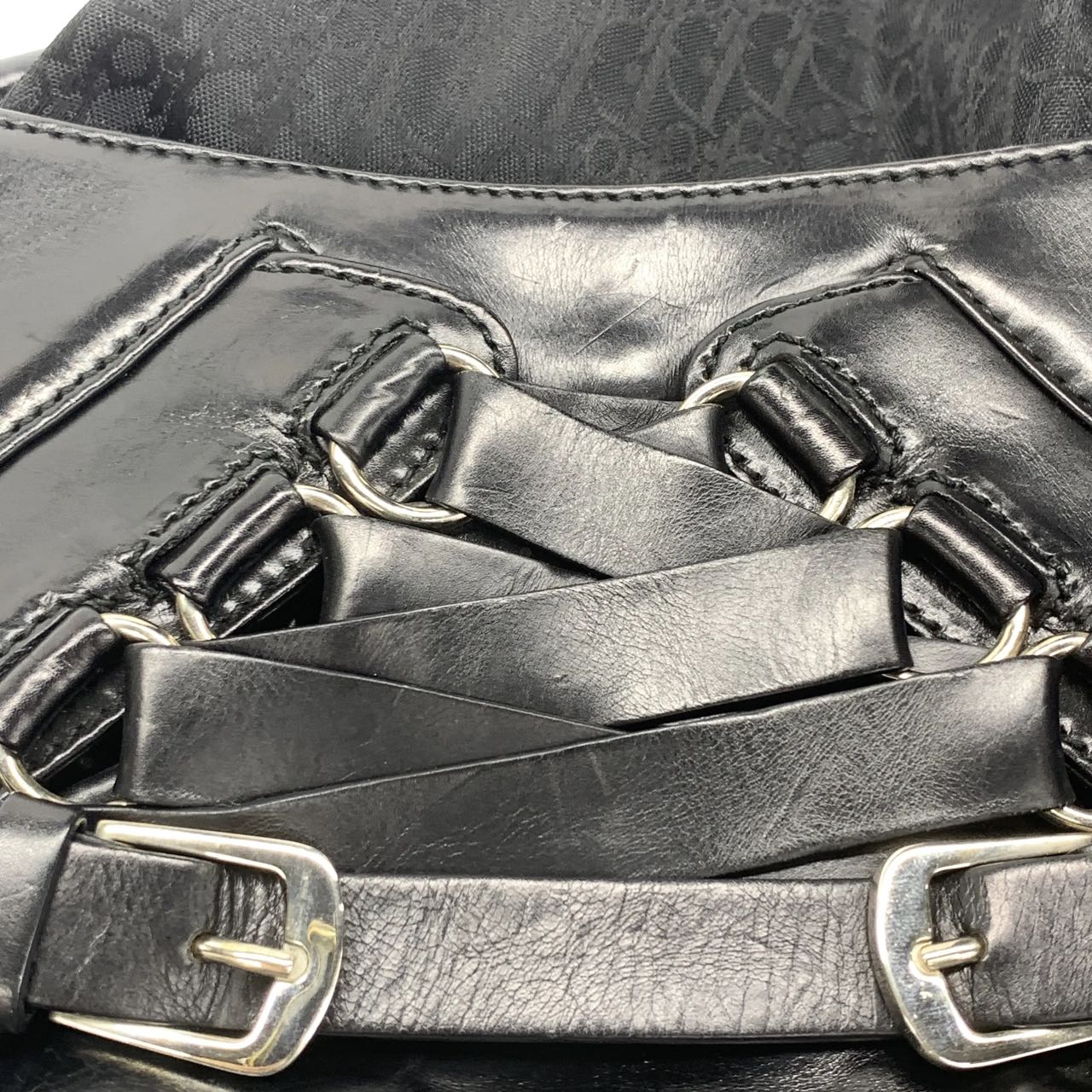 Dior Corset Black Leather Lace-up Ballet Bag Handbag Silver Hardware