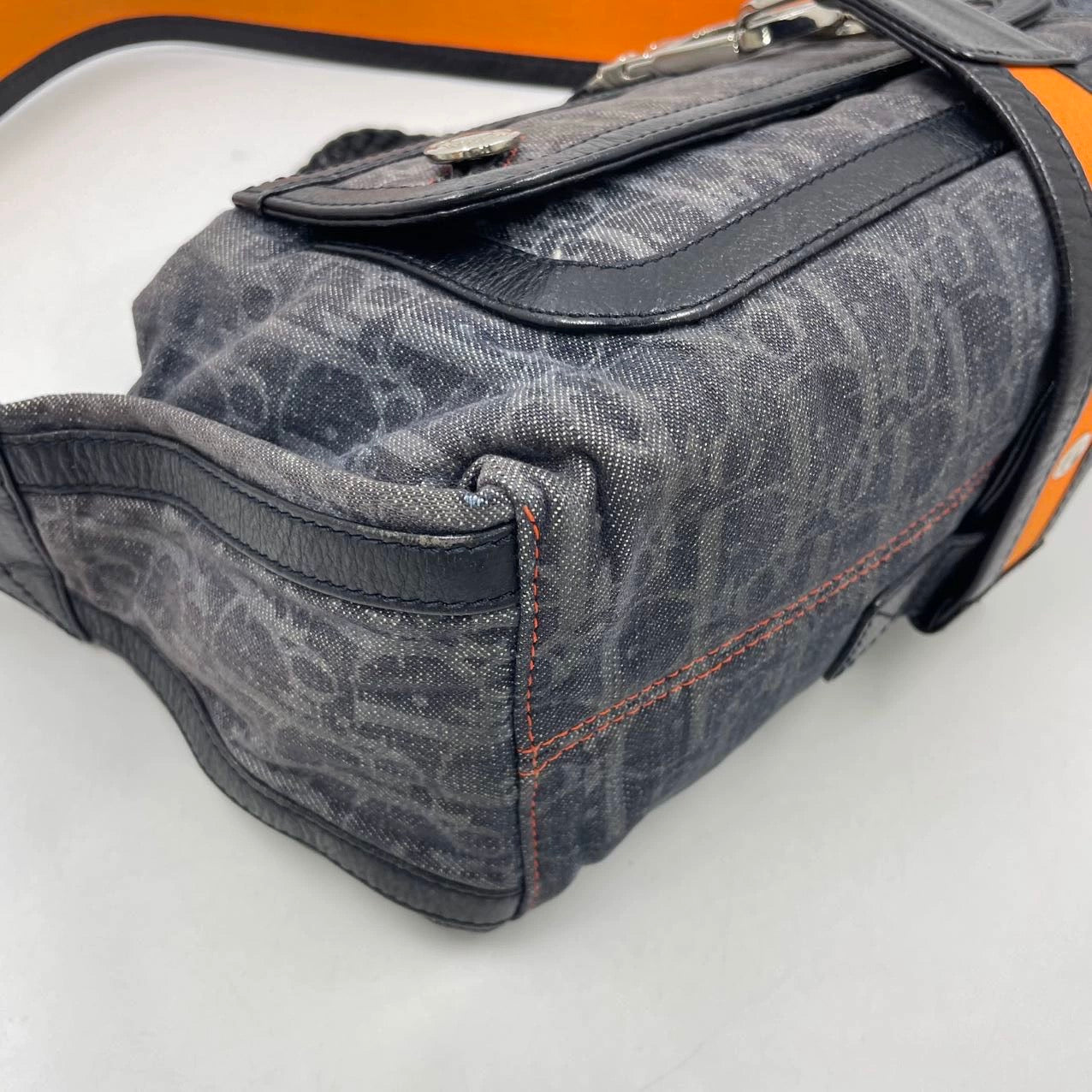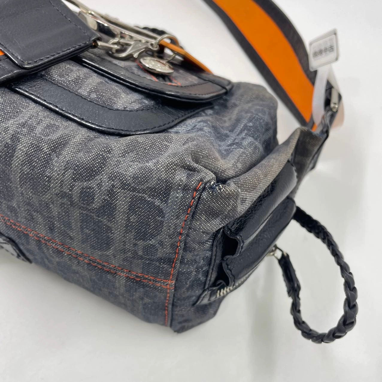 Dior Flight Medium Black Oblique Monogram Orange Strap Shoulder Bag