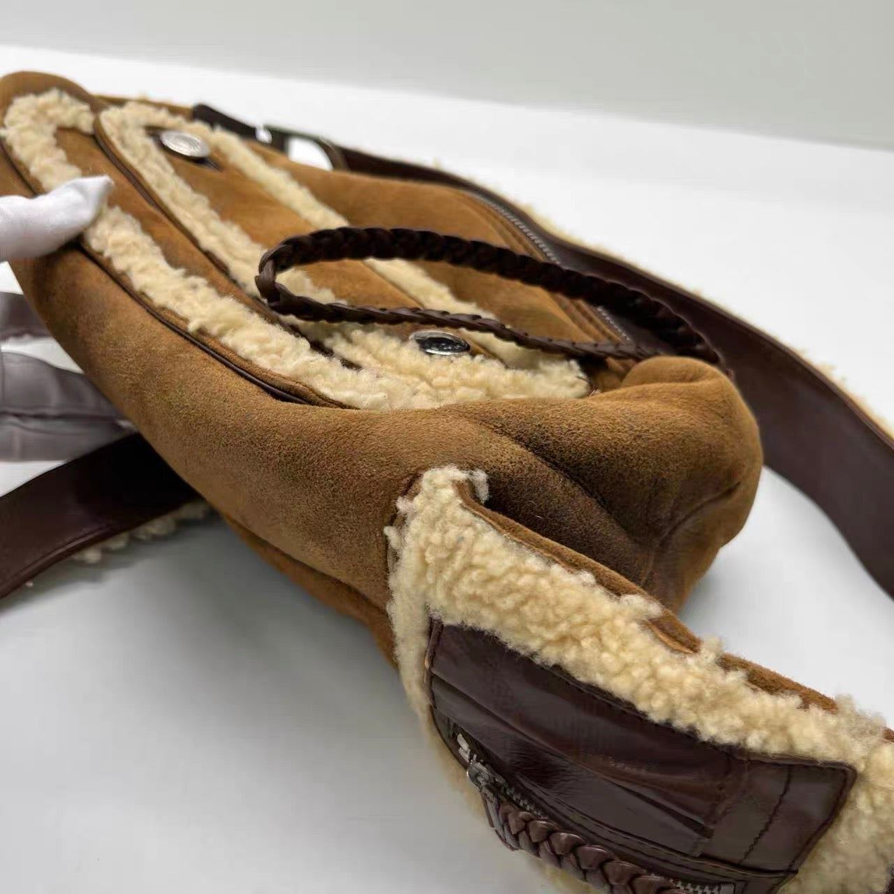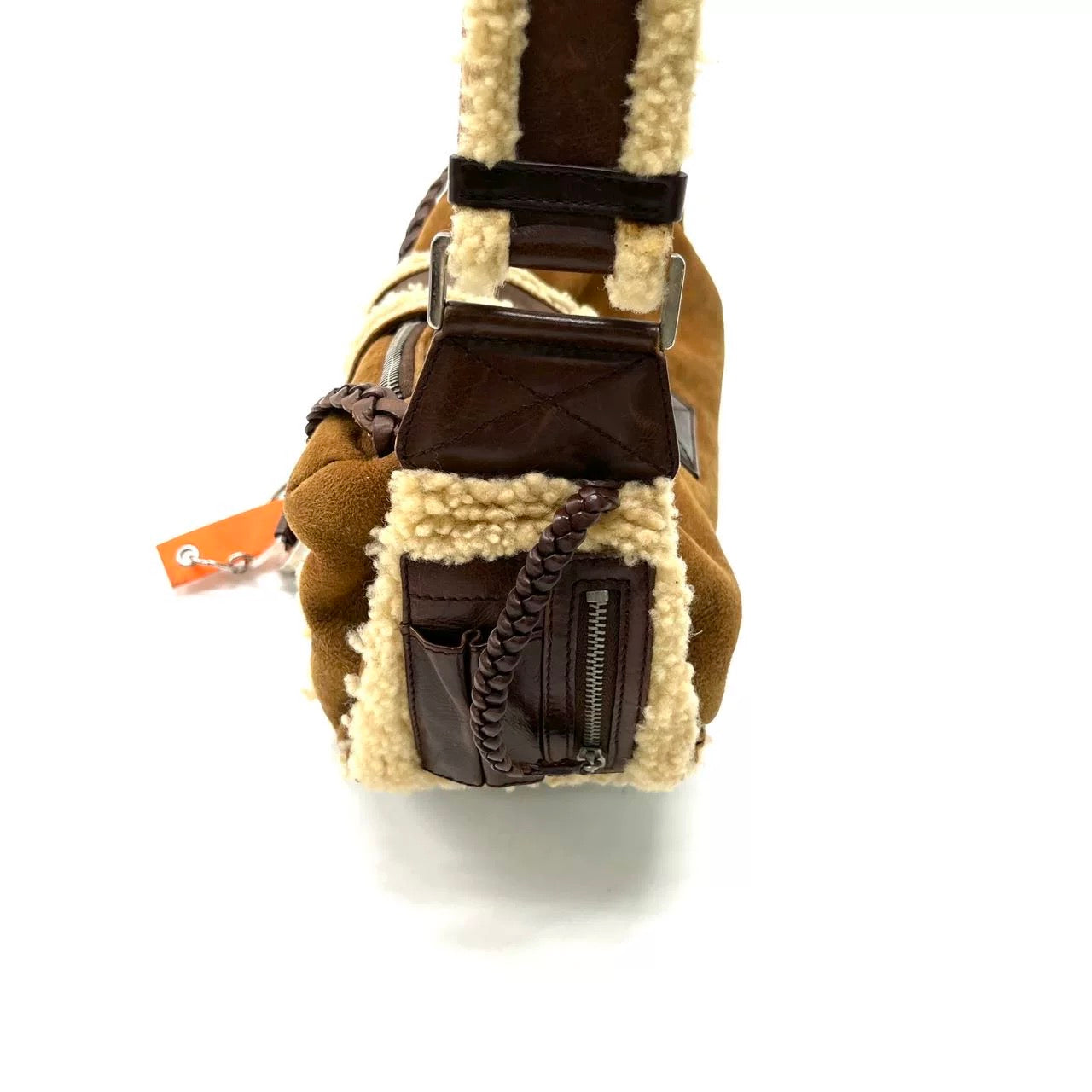 Dior Flight Medium Brown Shearling Leather with Orange Tag Shoulder Bag