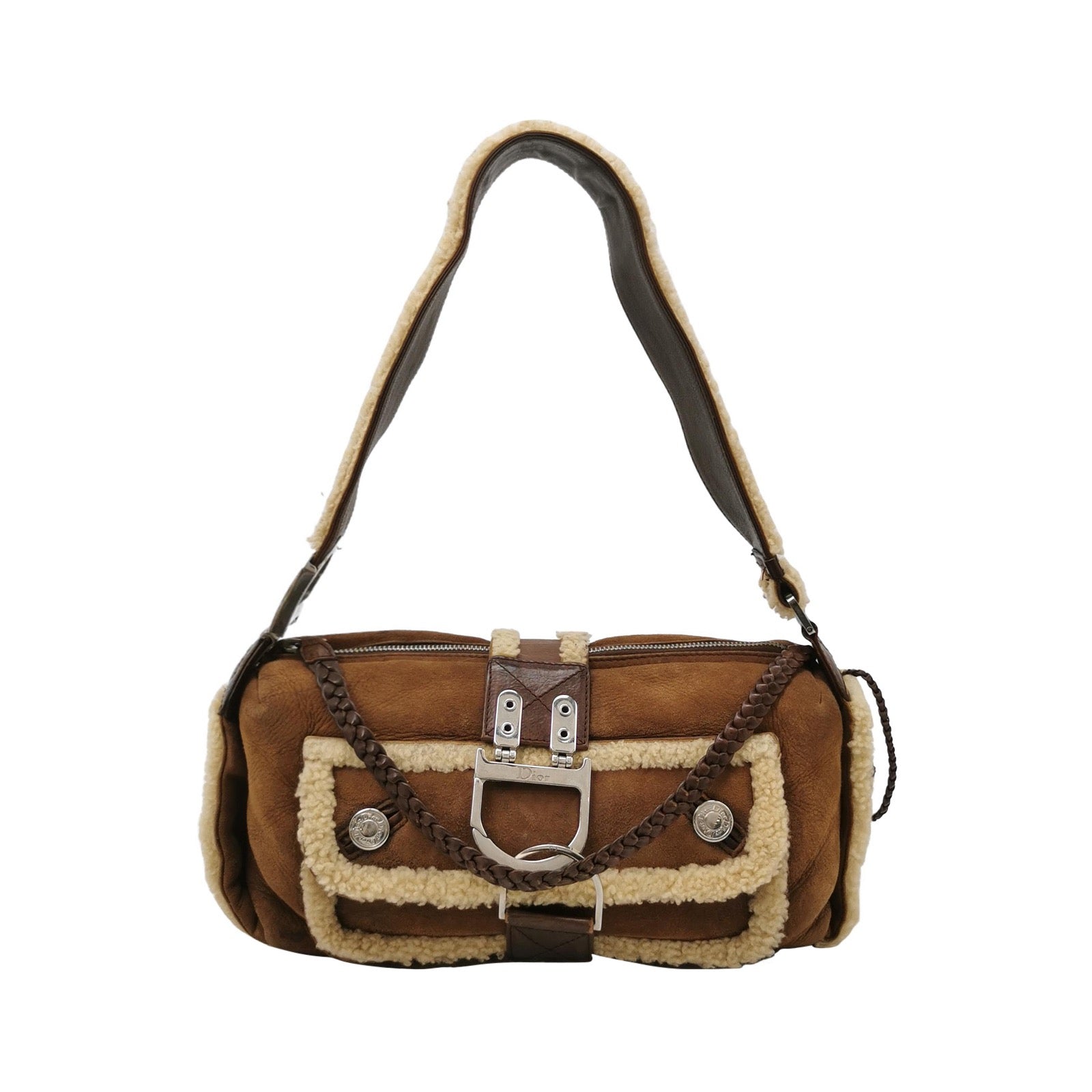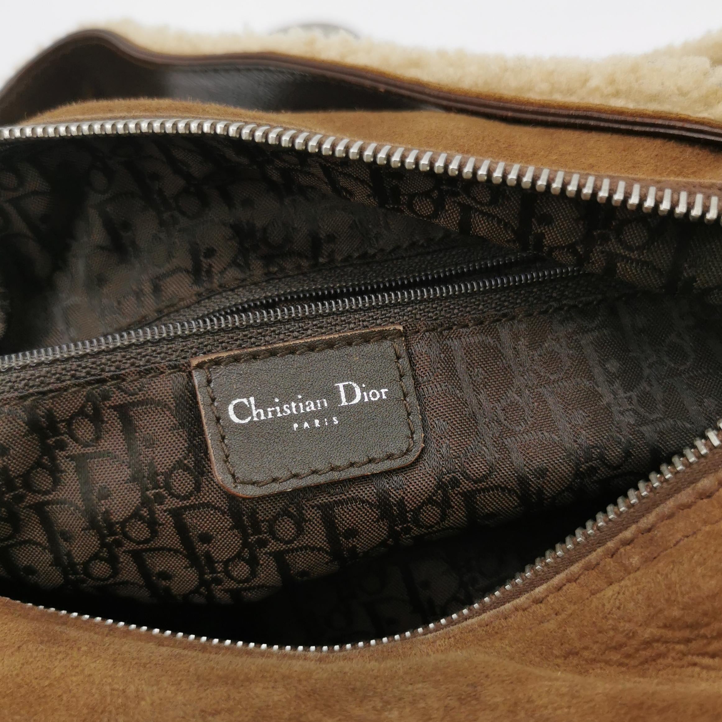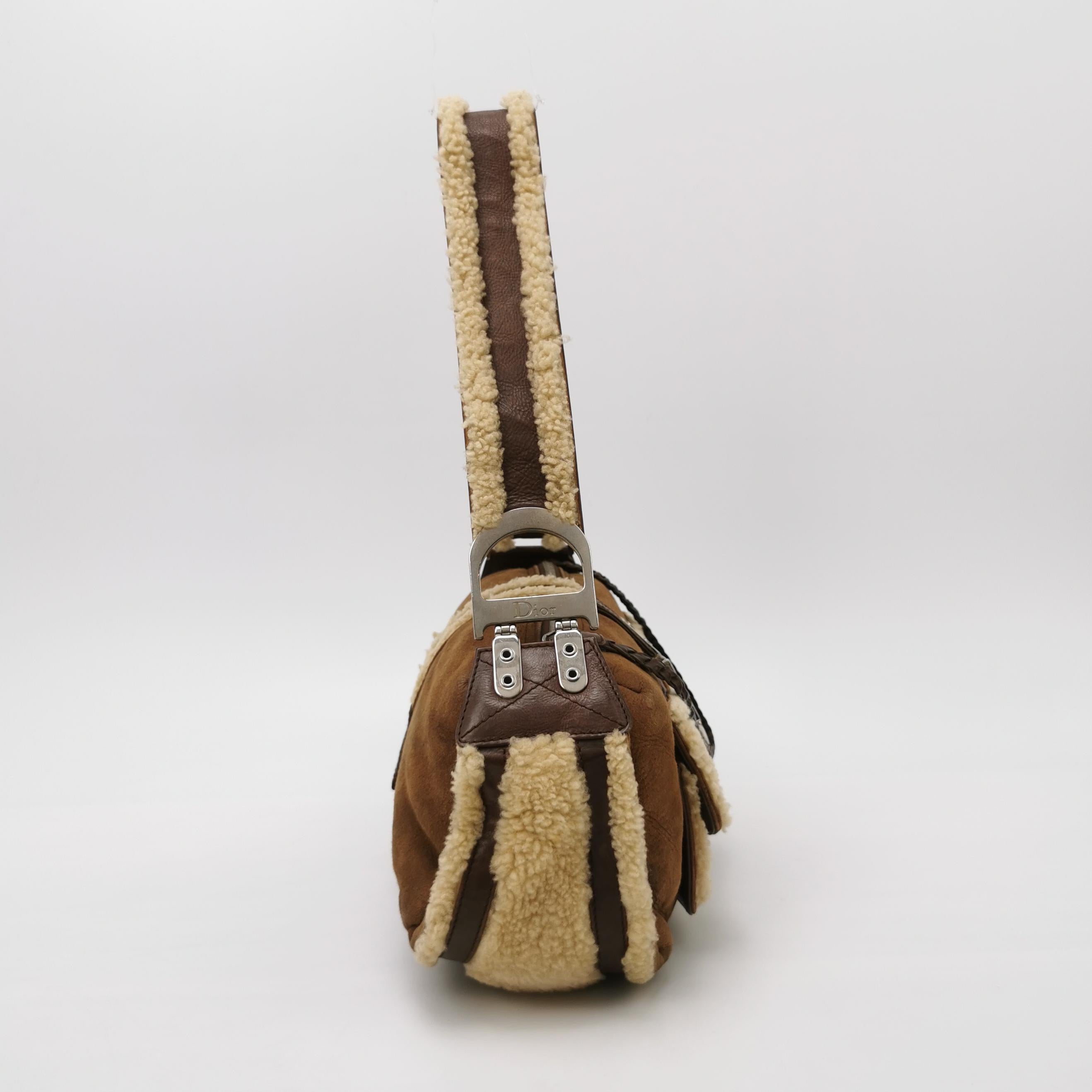 Dior Flight Medium Brown Shearling Leather Shoulder Bag