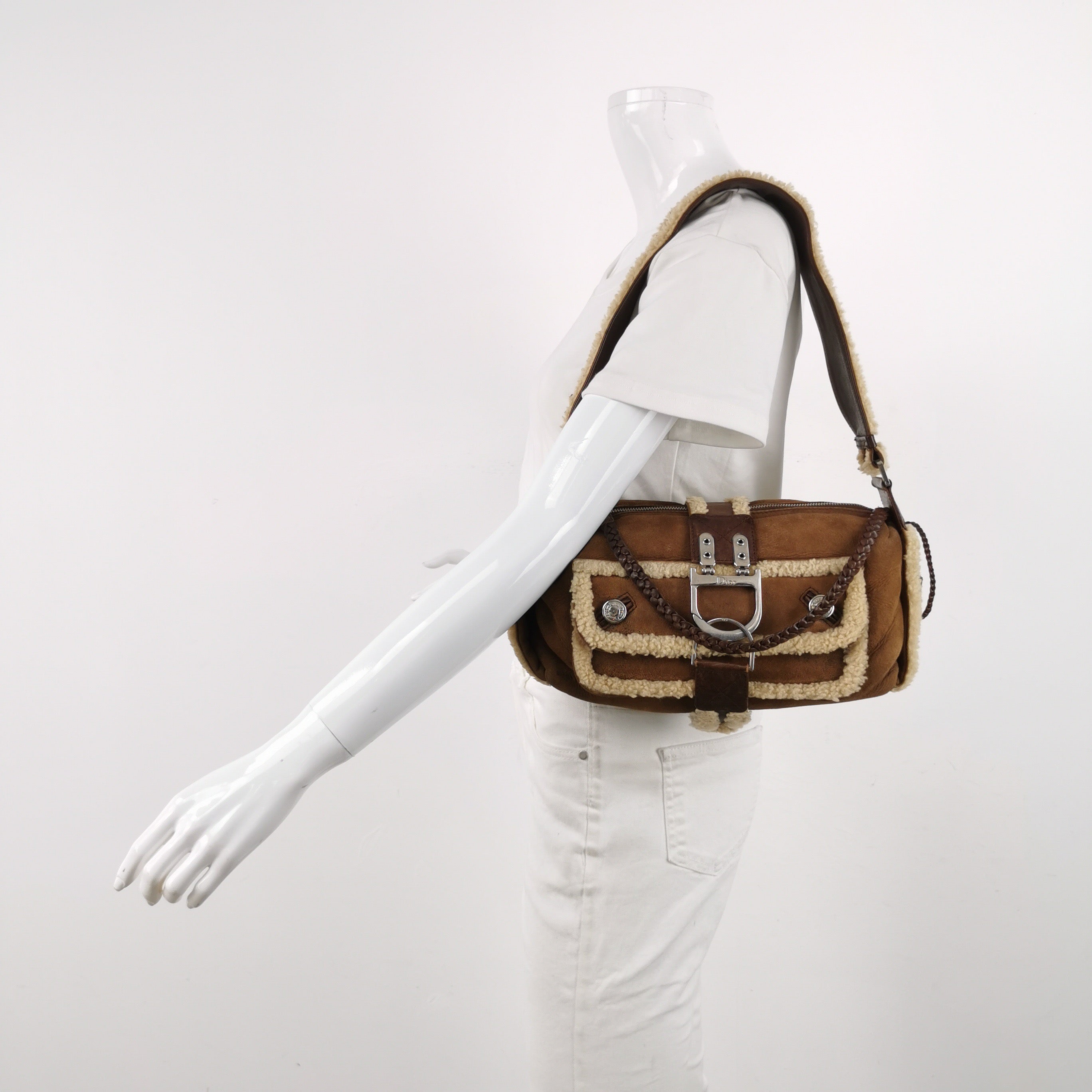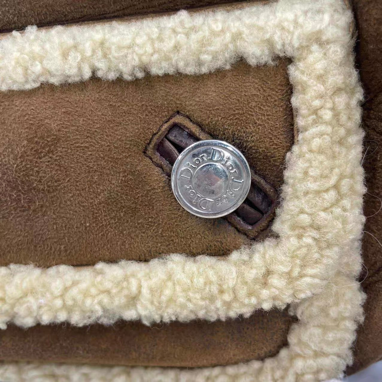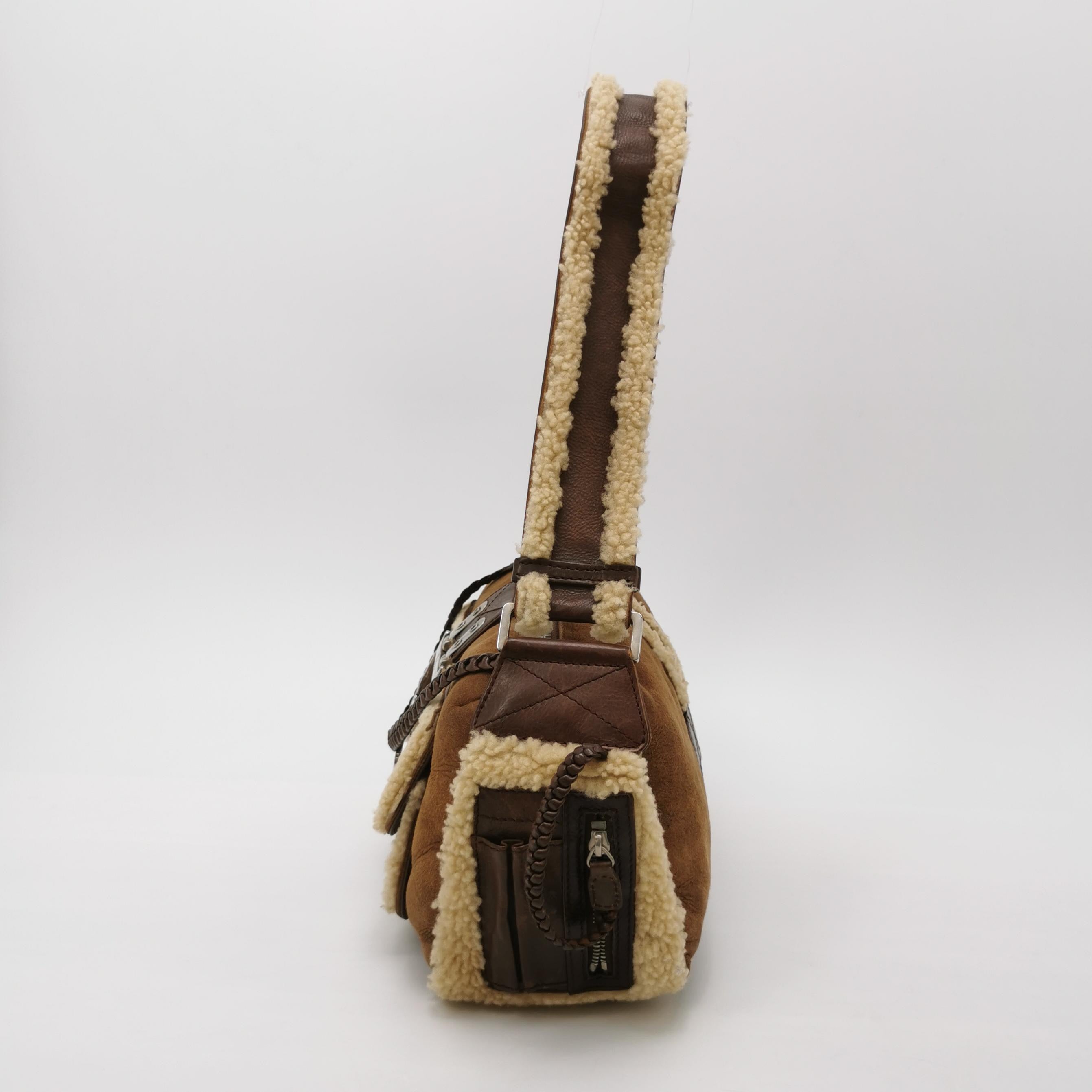 Dior Flight Medium Brown Shearling Leather Shoulder Bag