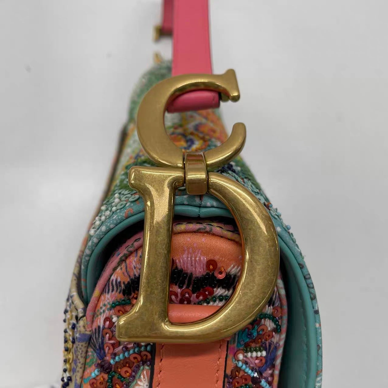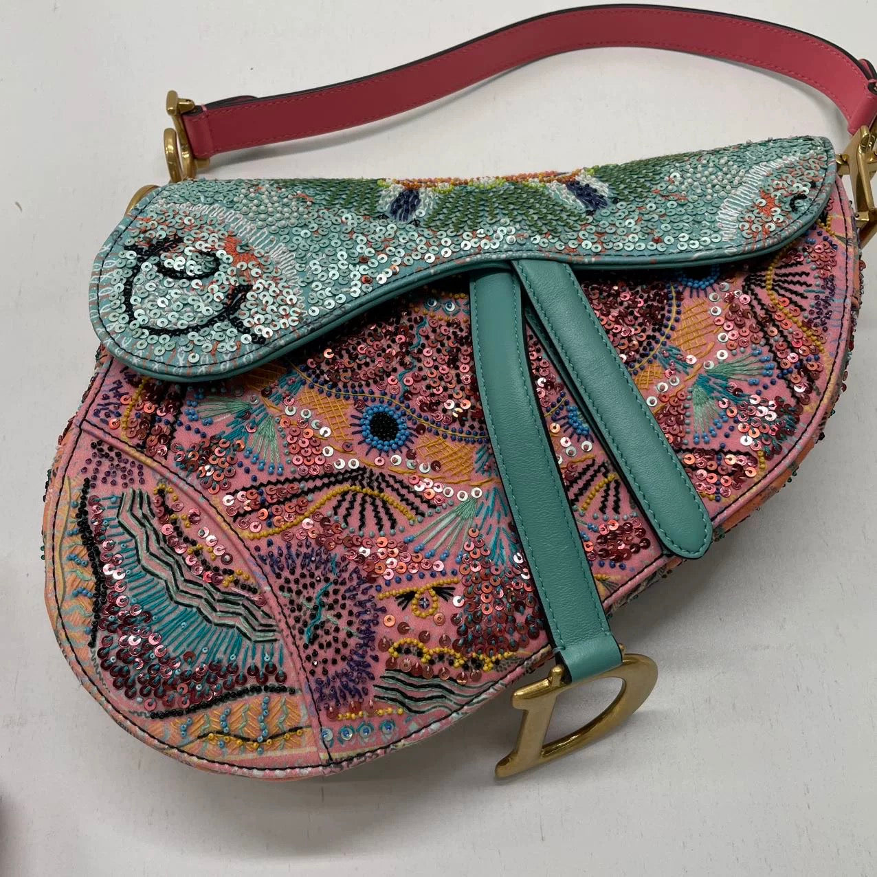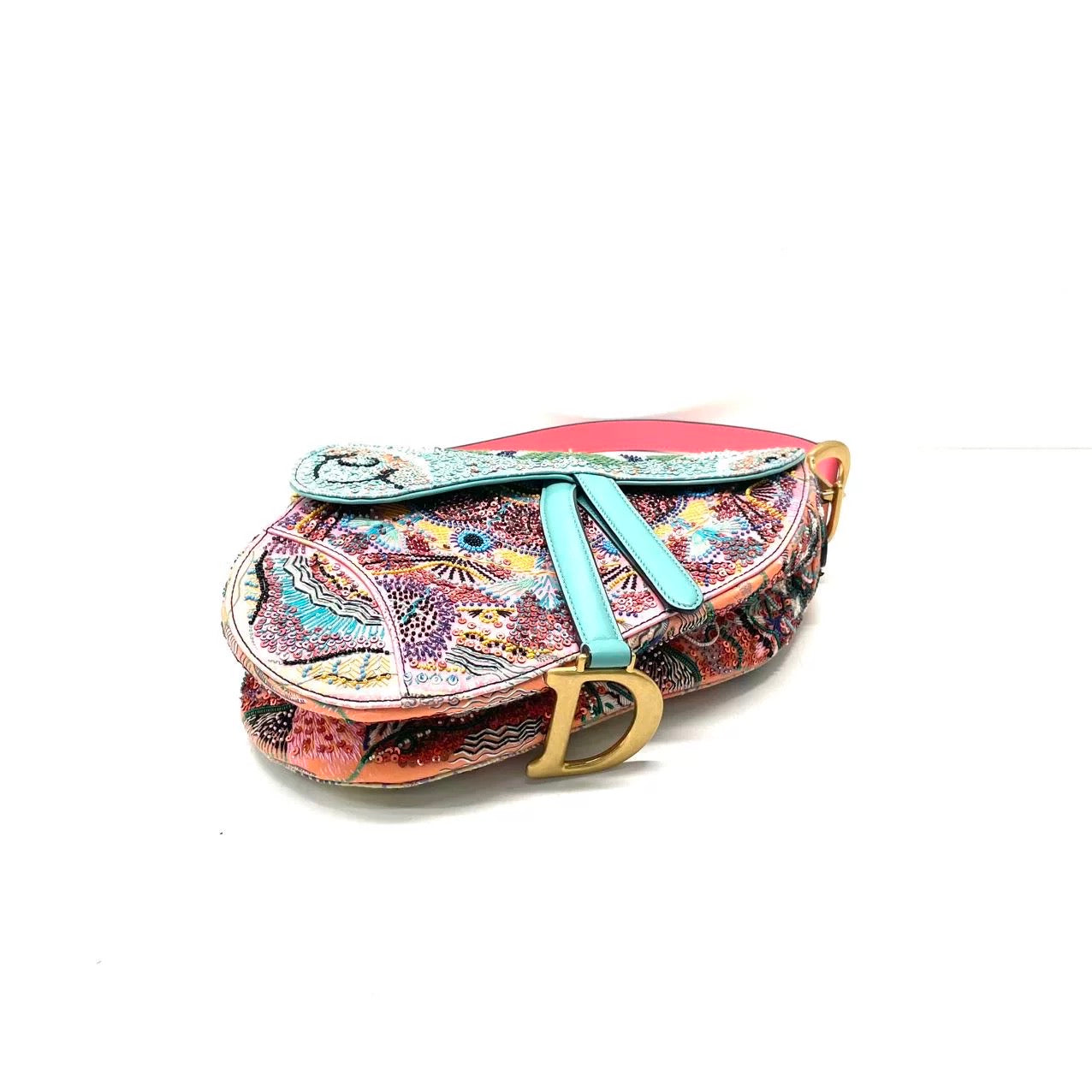 Dior In Lights Saddle Medium Multicolor Beads and Calfskin Leather Shoulder Bag